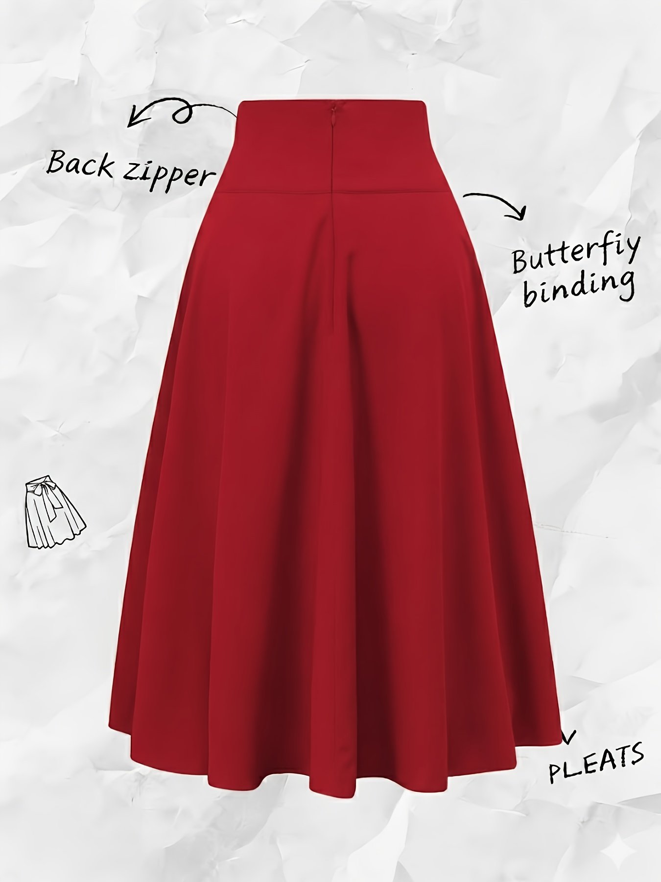 Jupe Femme à Nœud de Noël Cintrée à la Taille, Couleur Unie, Polyvalente et Décontractée