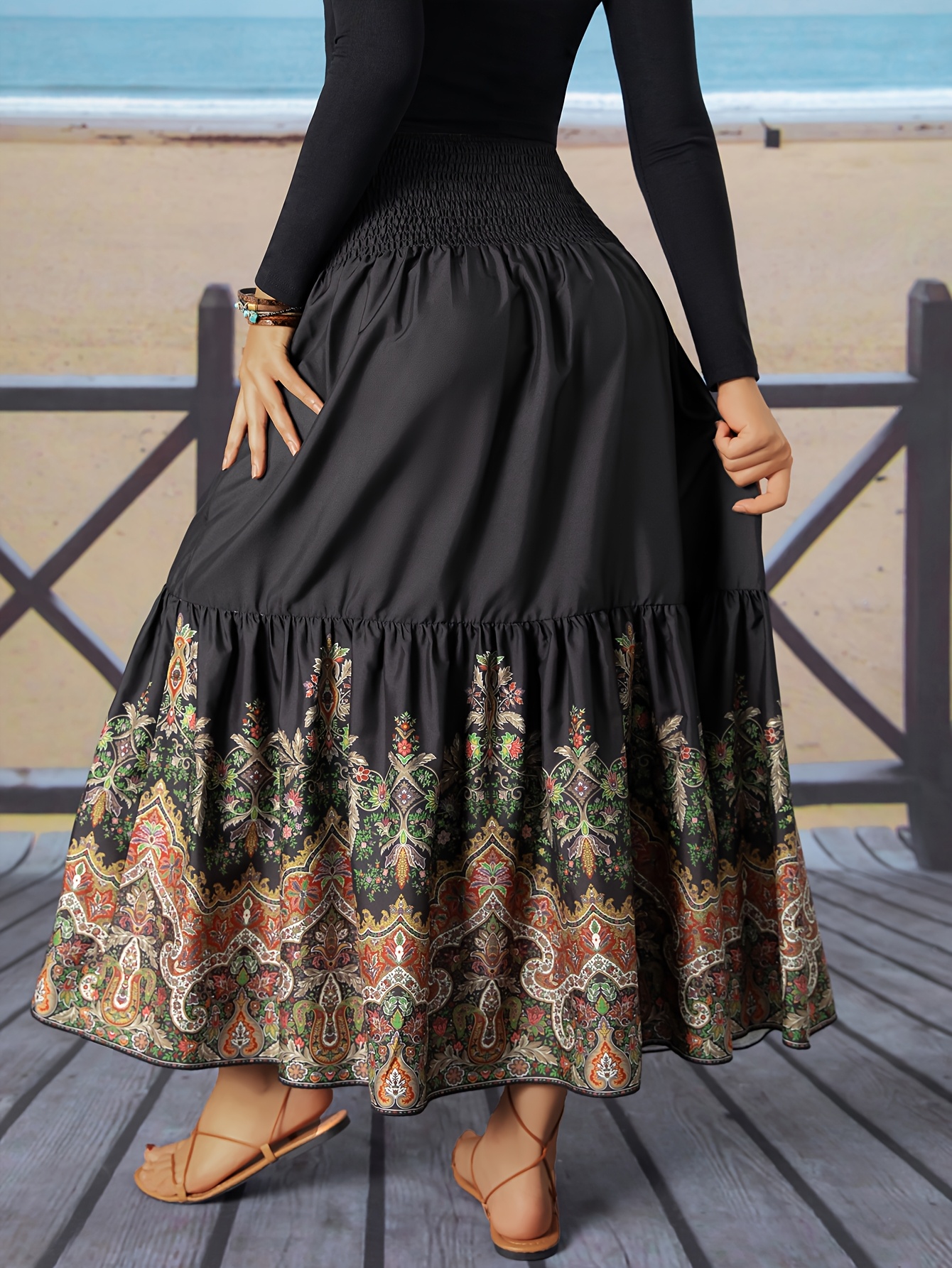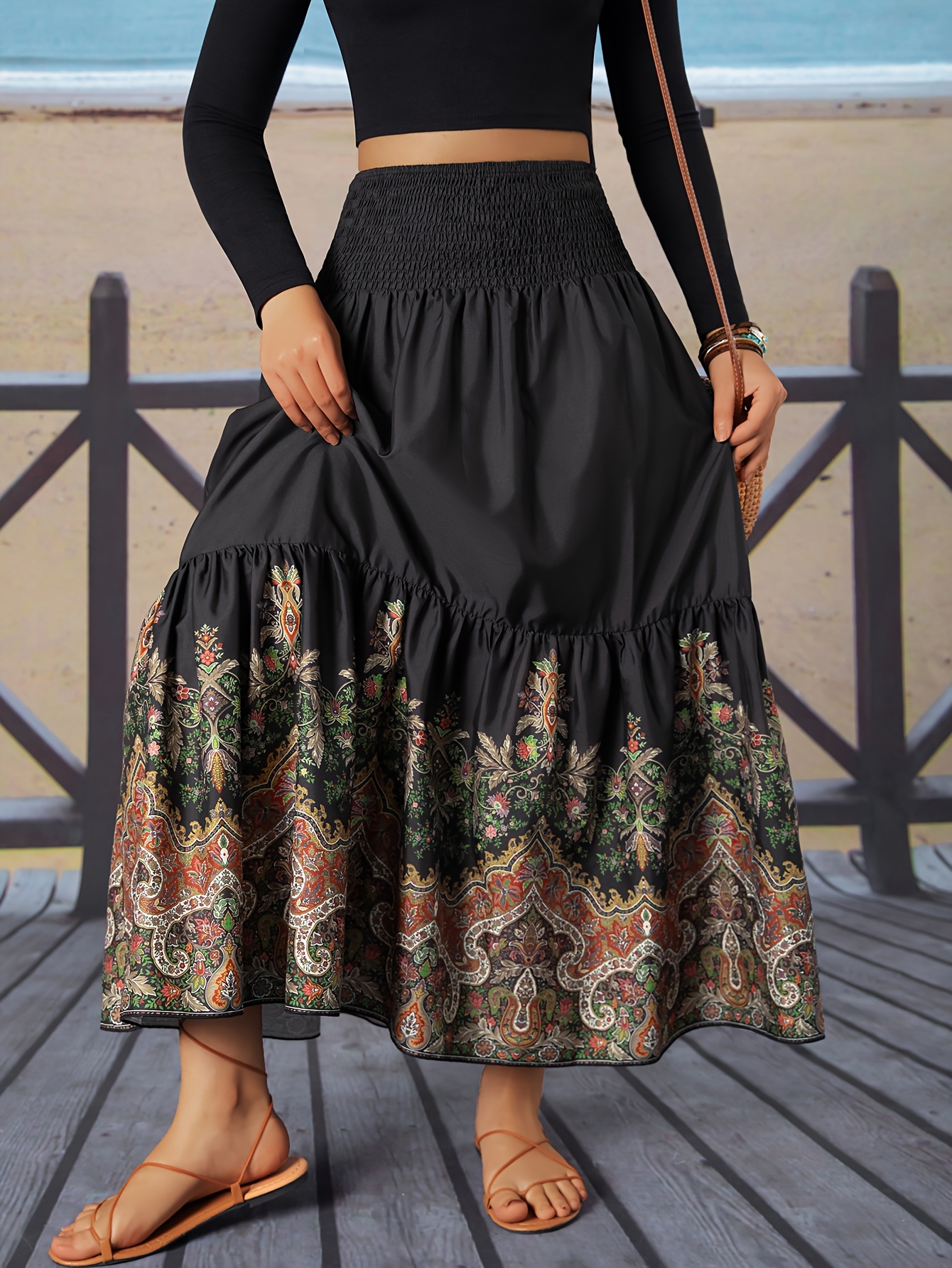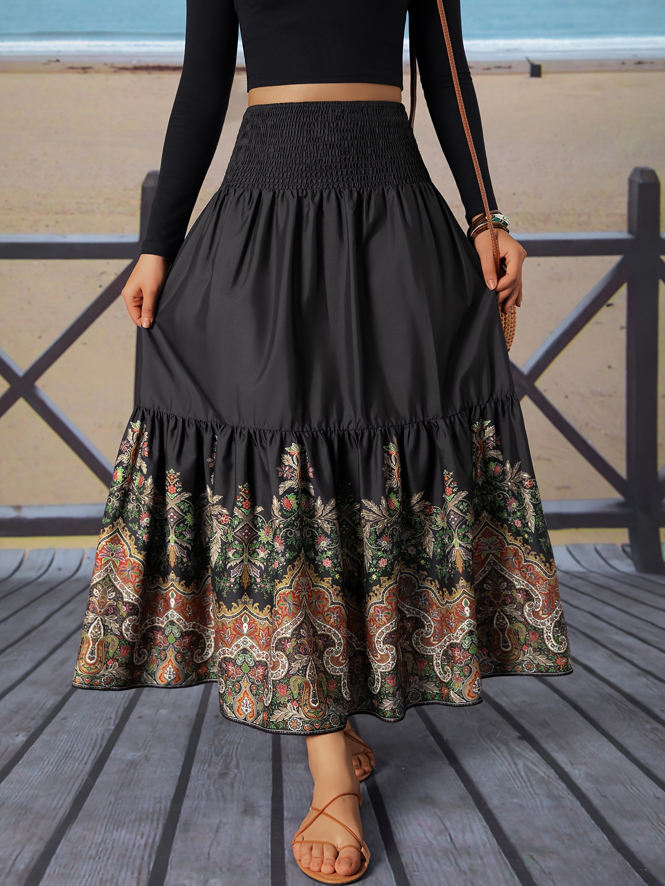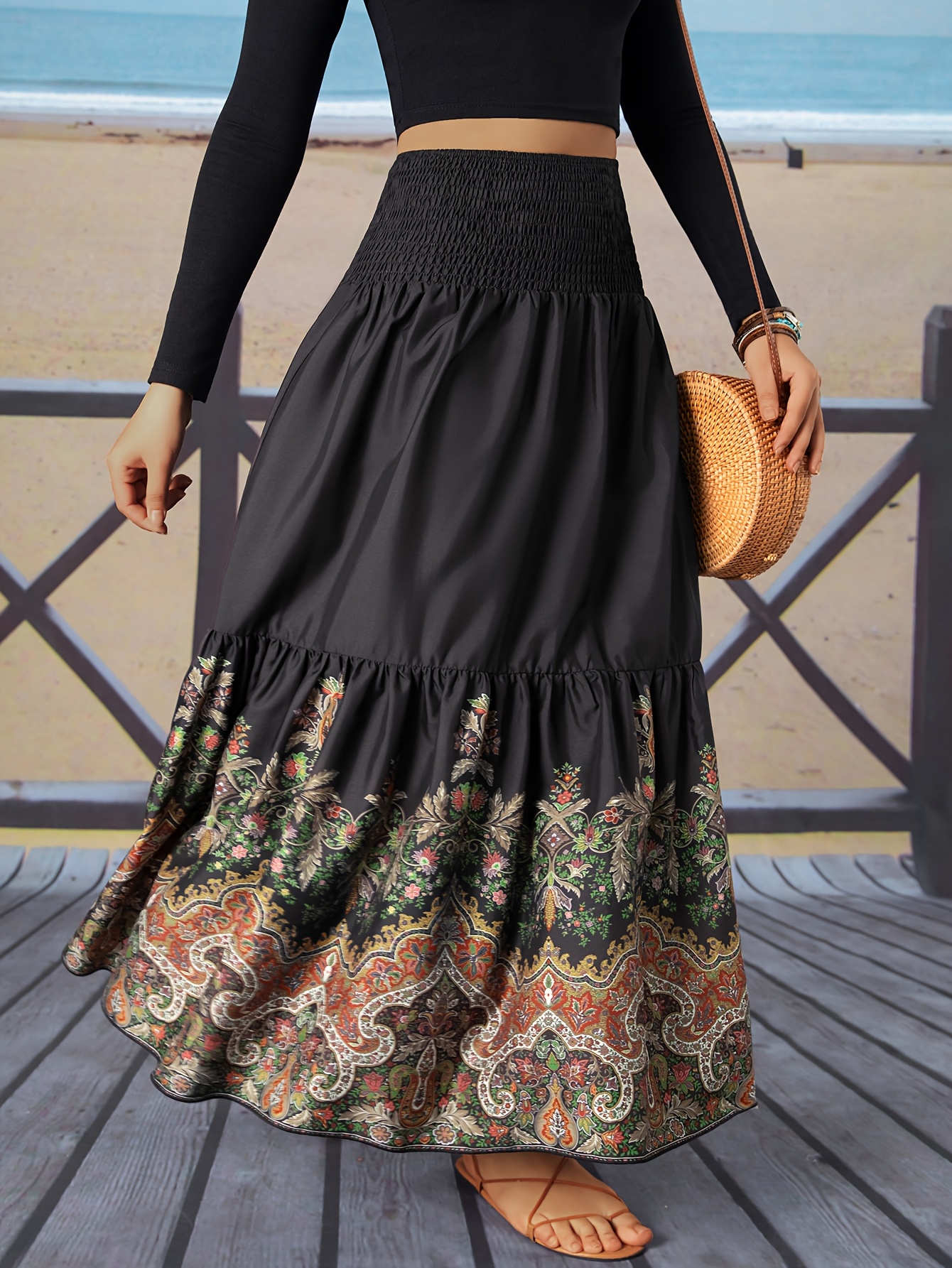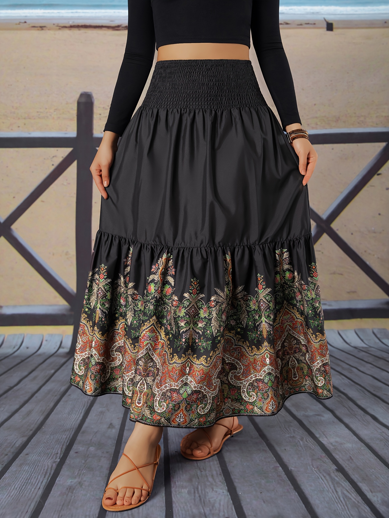 Jupe longue à imprimé floral et à fronces