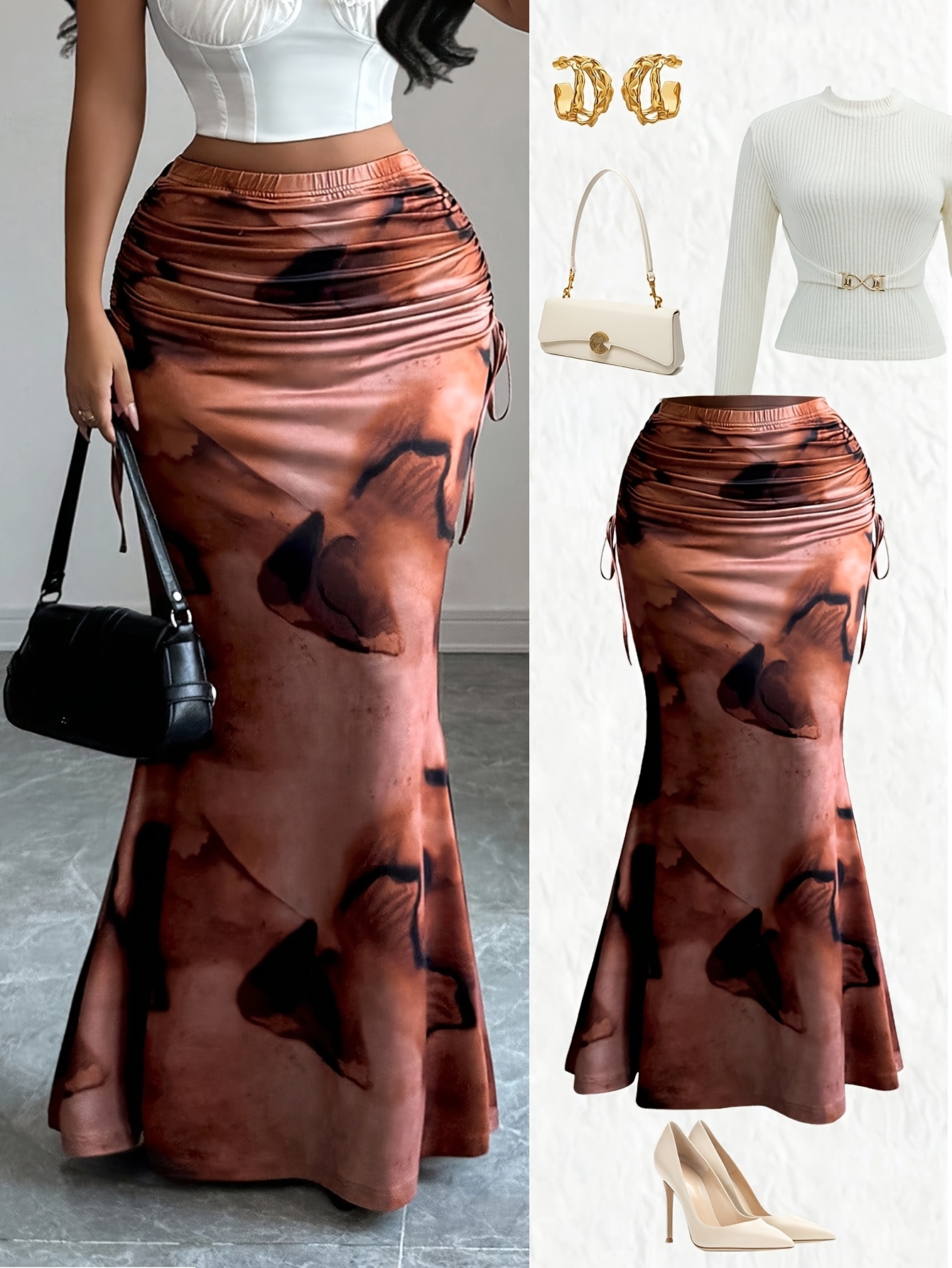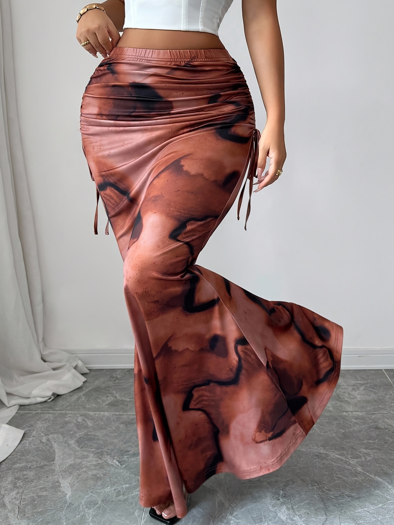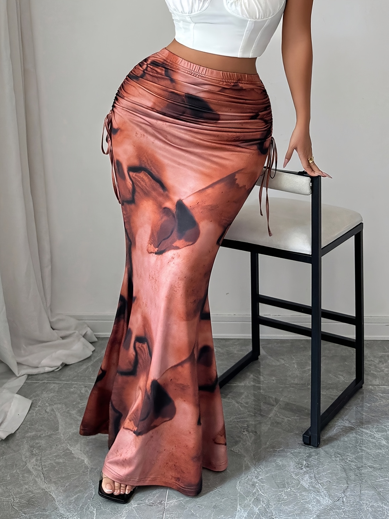 Jupe longue élégante pour femmes avec imprimé intégral et détails à lacets