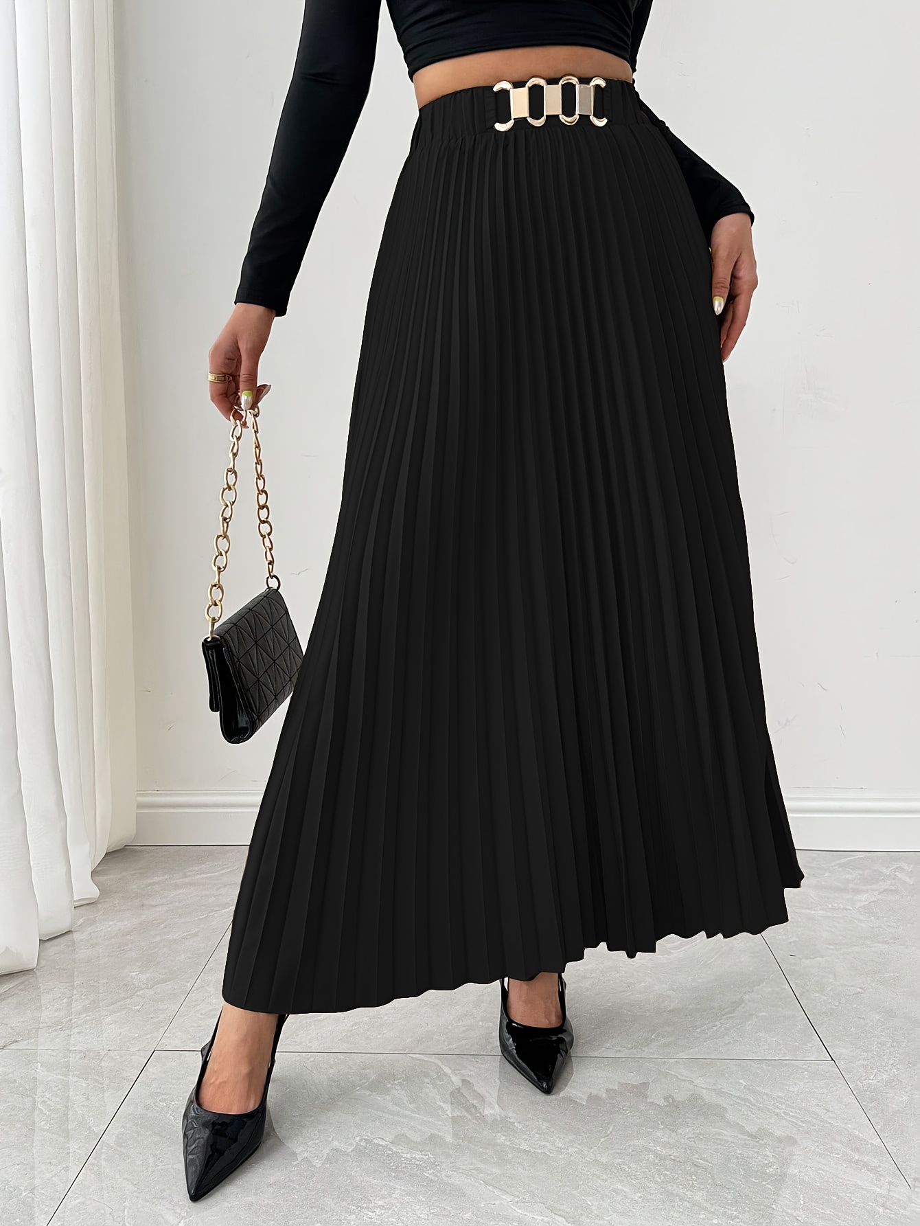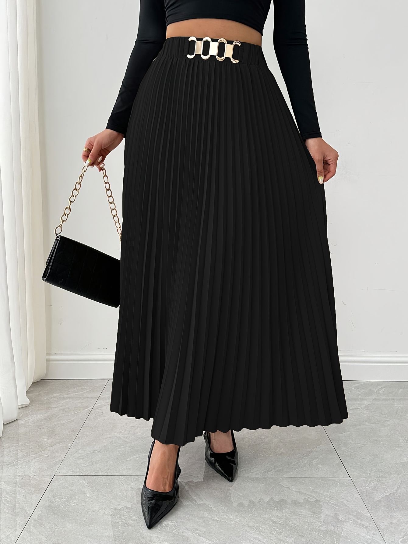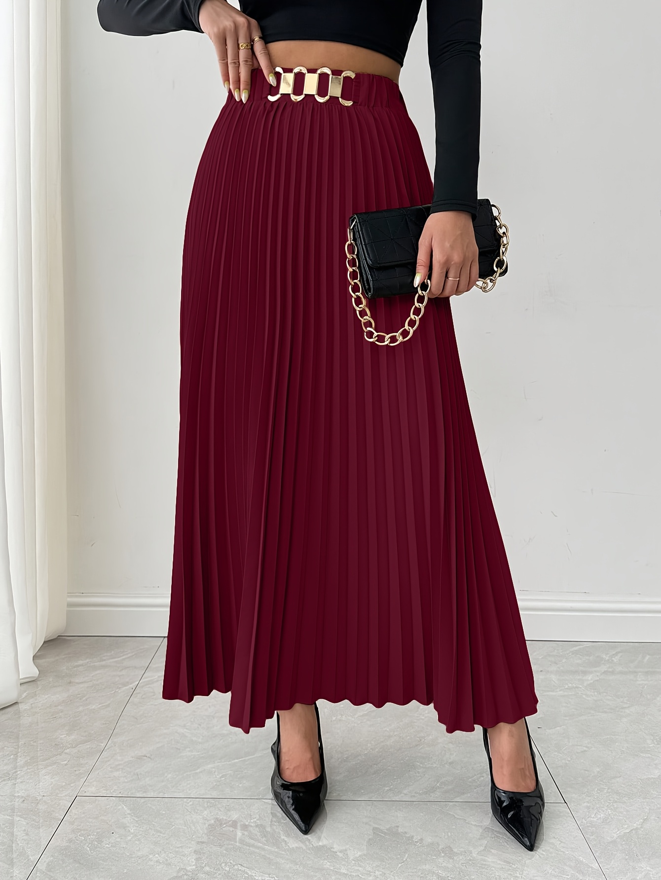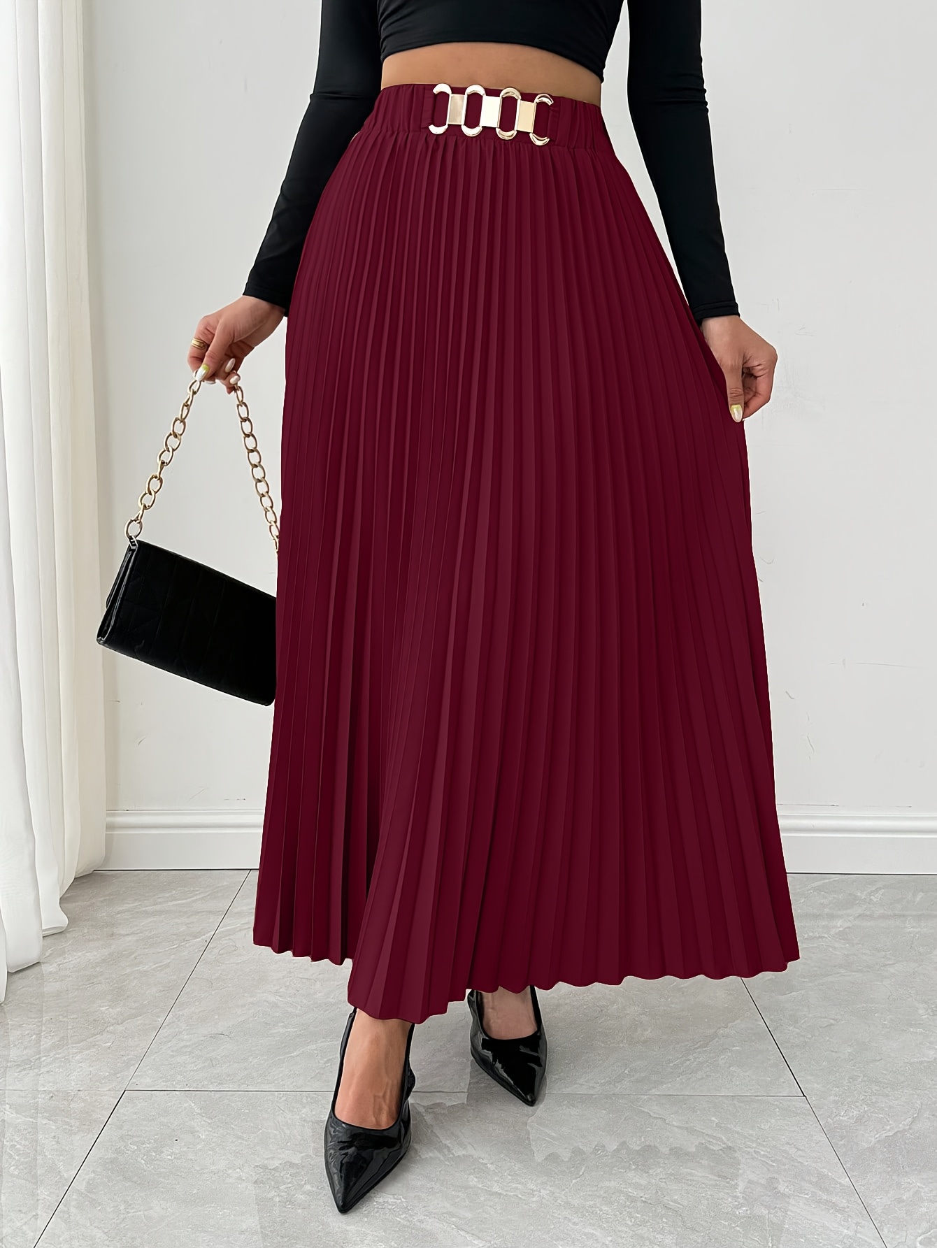 Jupe Maxi Élégante pour Femme à Coupe Ample avec Ourlet Plissé