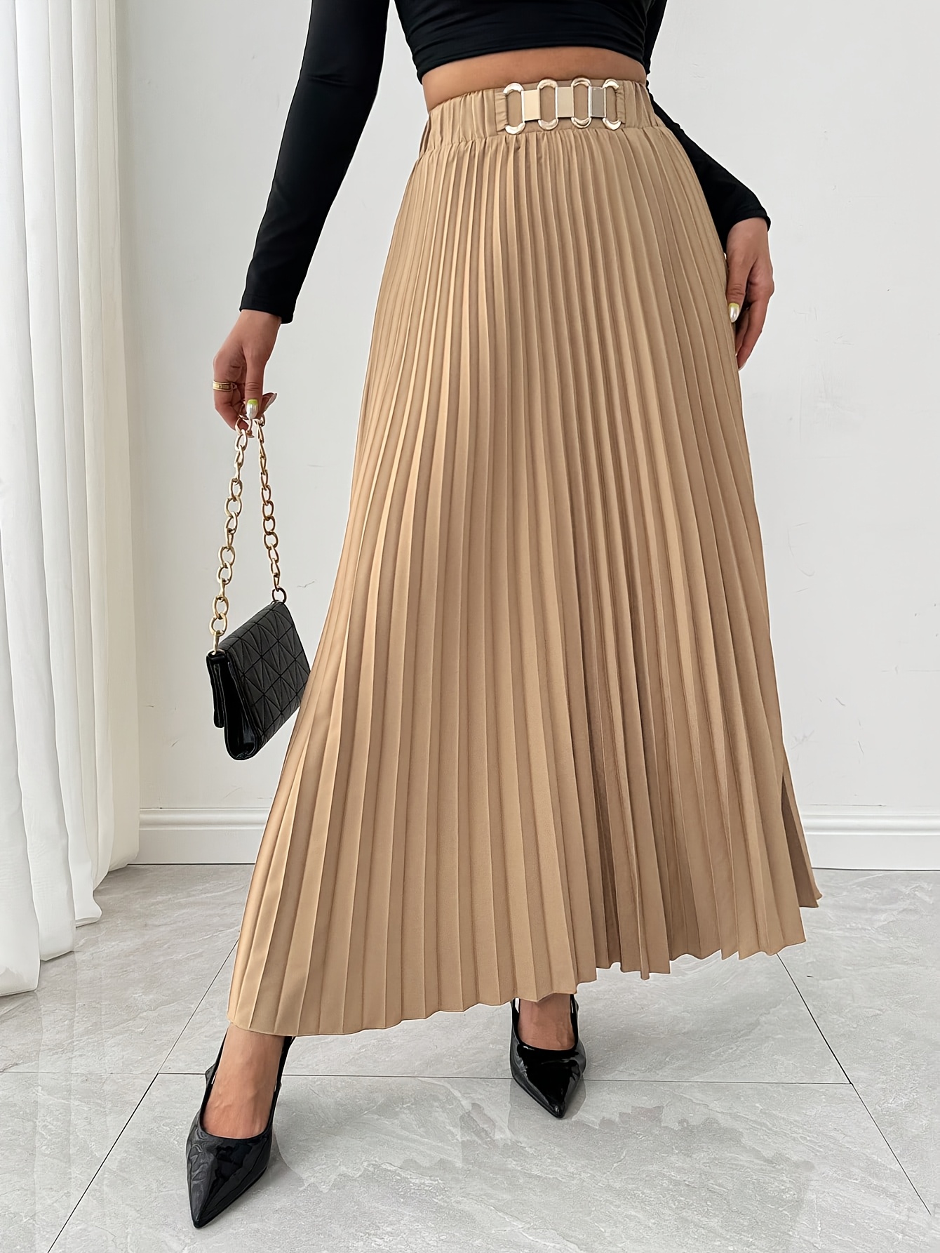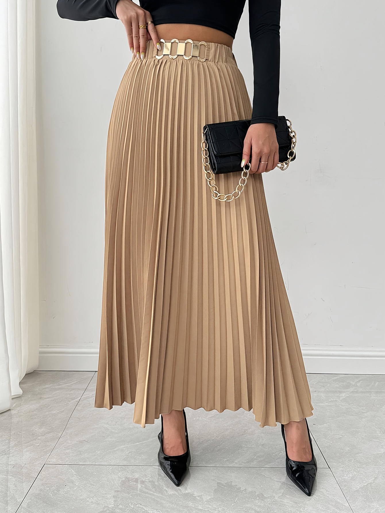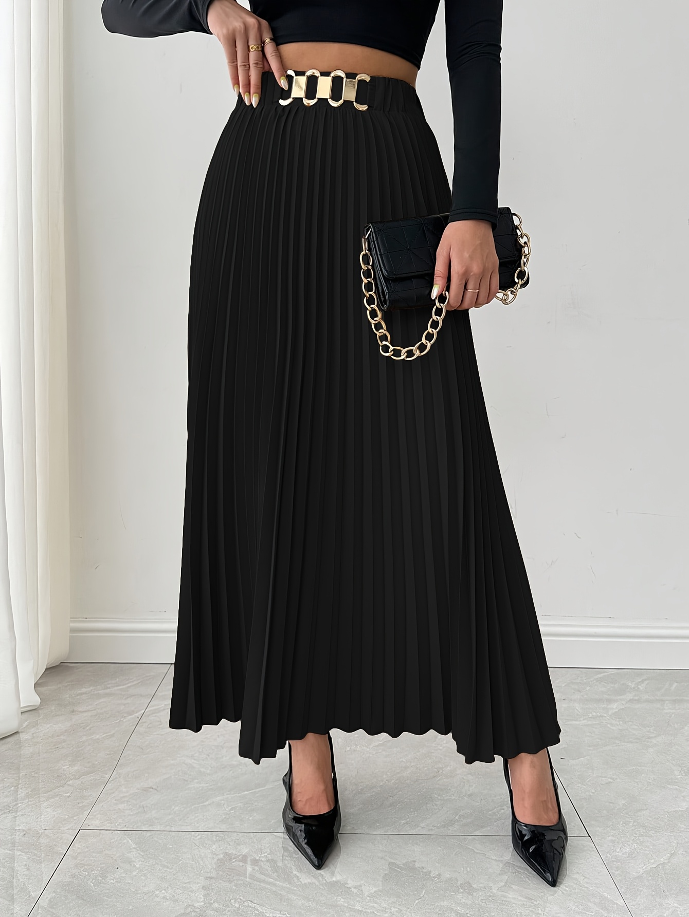 Jupe Maxi Élégante pour Femme à Coupe Ample avec Ourlet Plissé