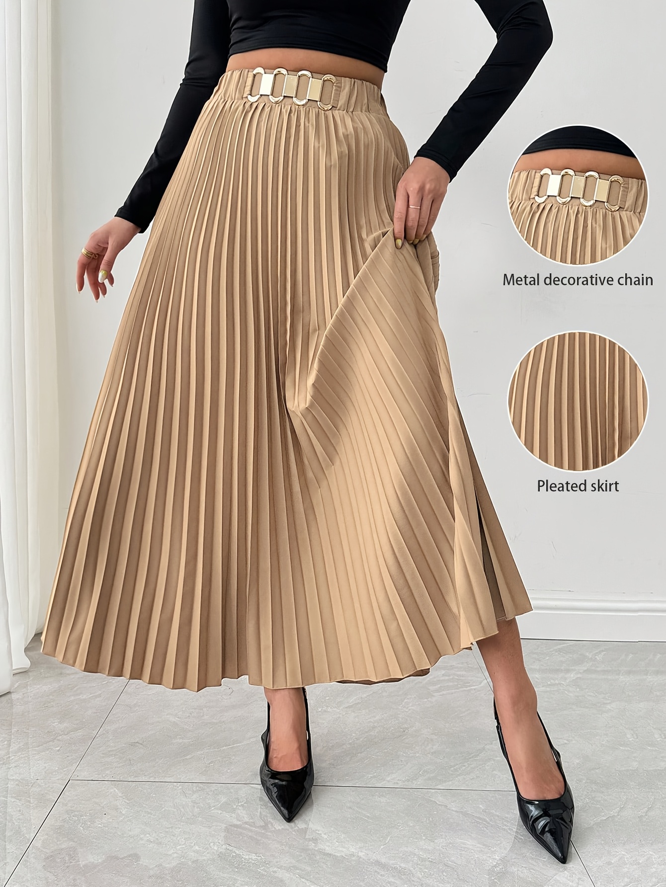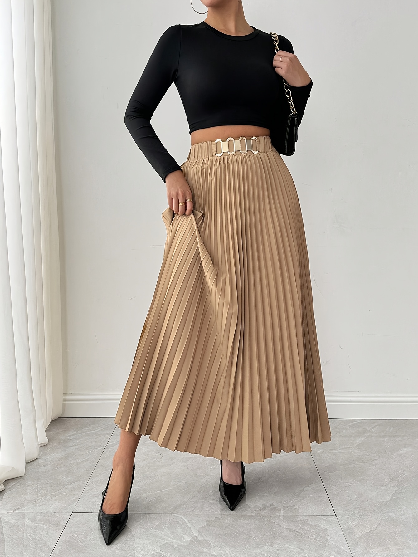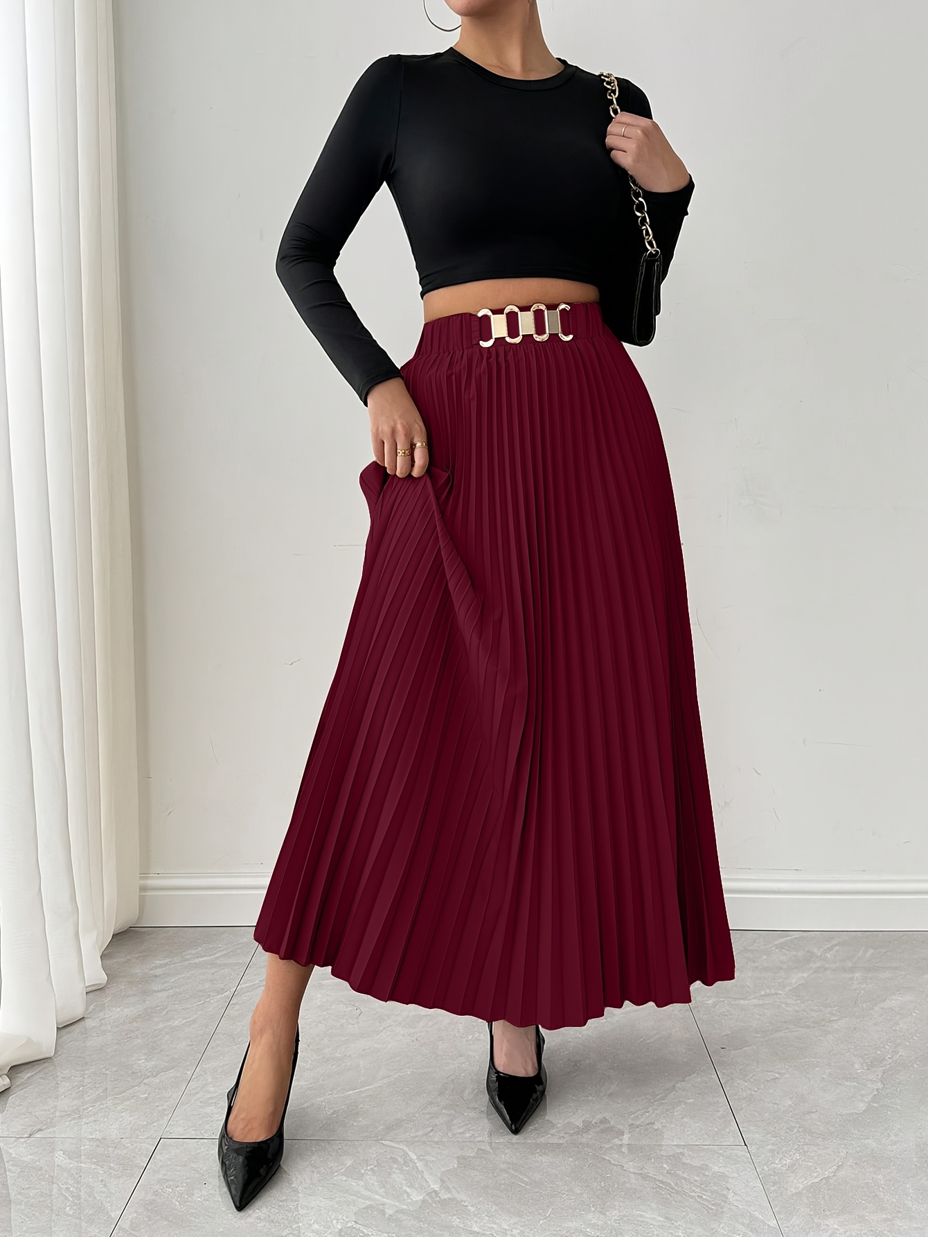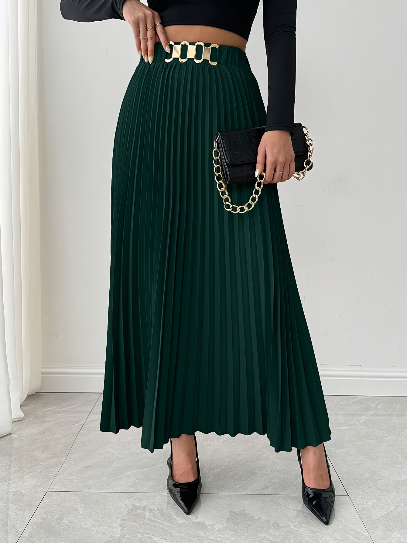 Jupe Maxi Élégante pour Femme à Coupe Ample avec Ourlet Plissé