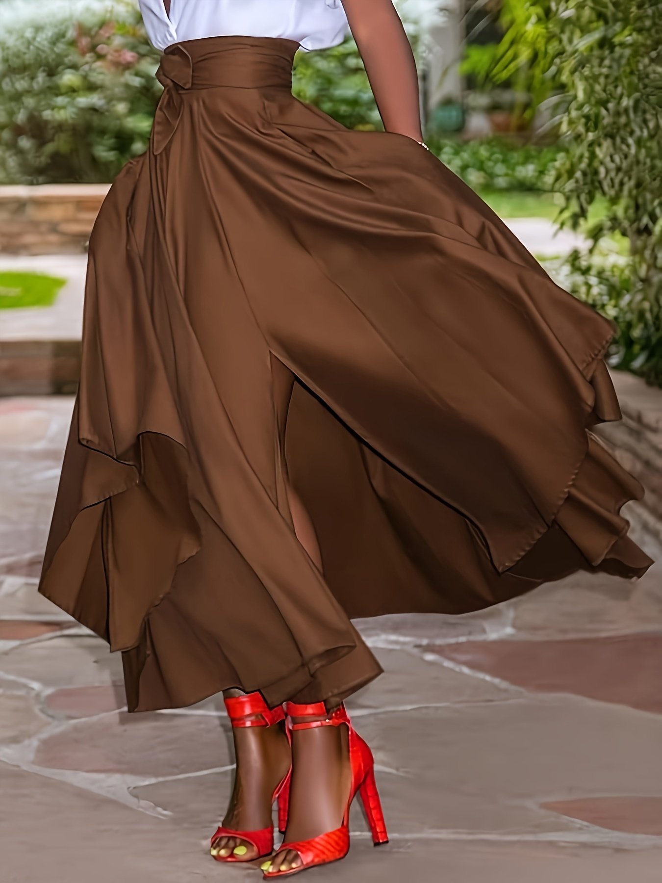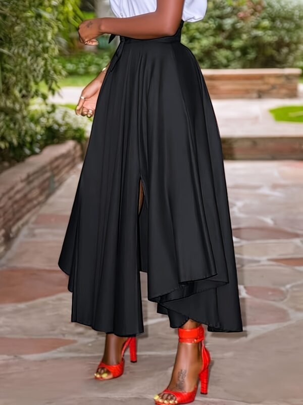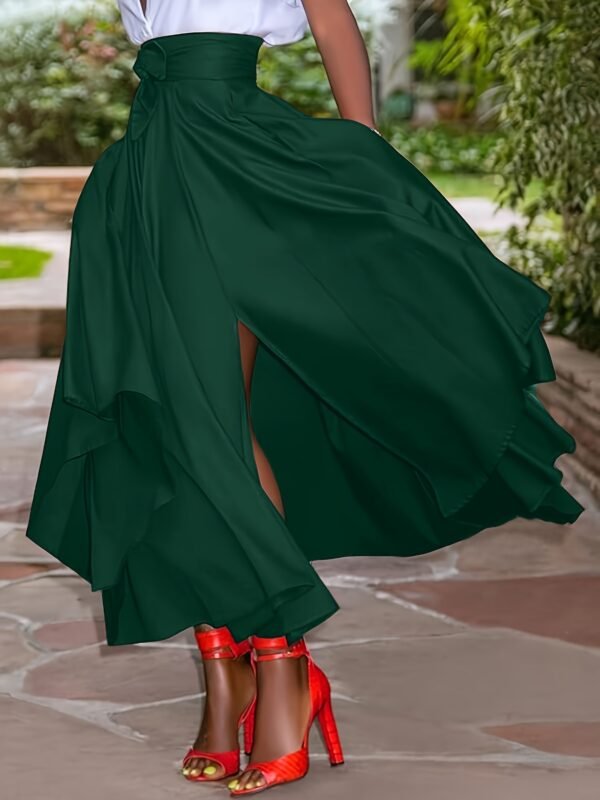Jupe Maxi Grande Taille, Taille Unie avec Fente à la Ceinture