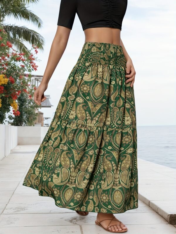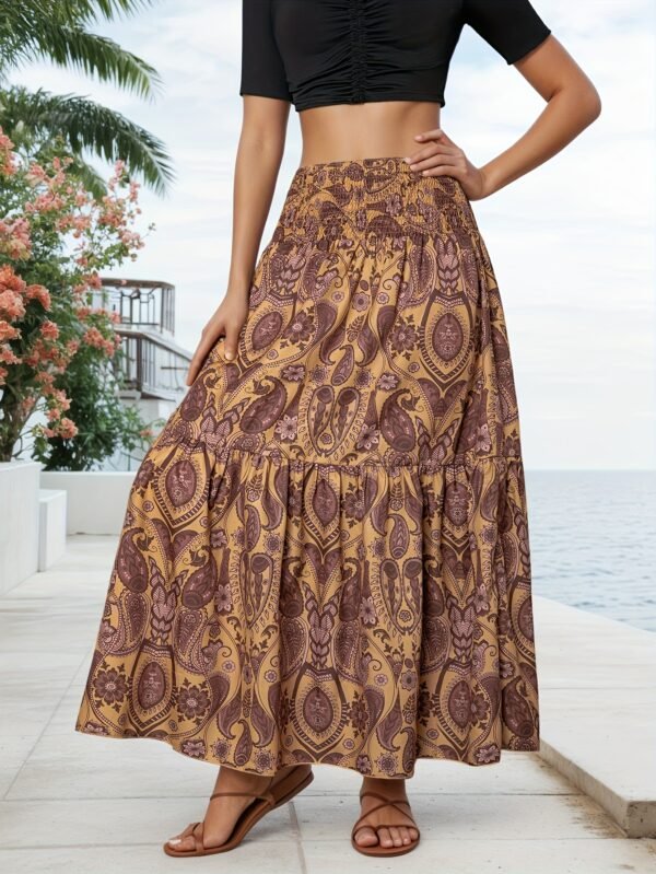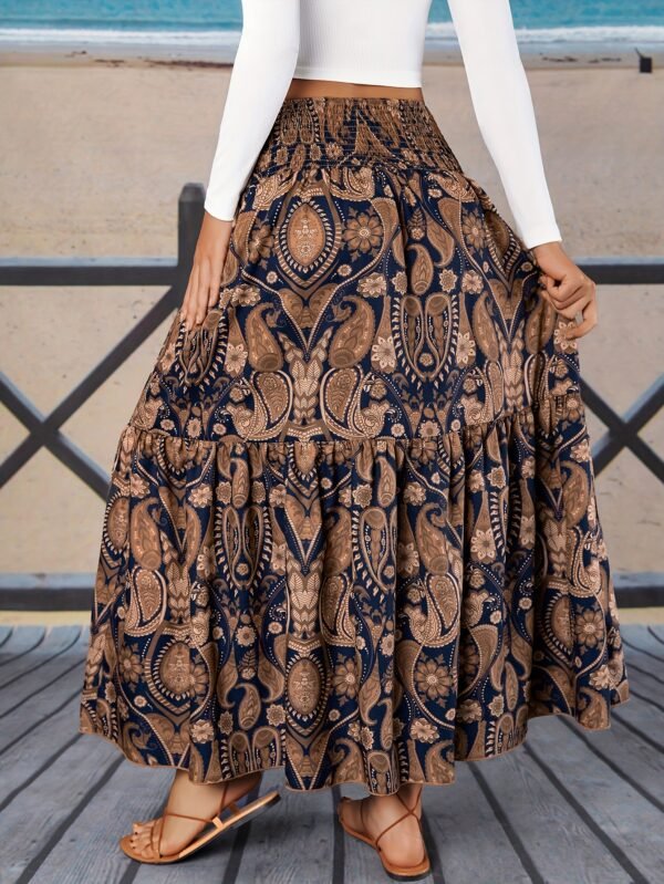 Jupe midi à imprimé floral avec fronces