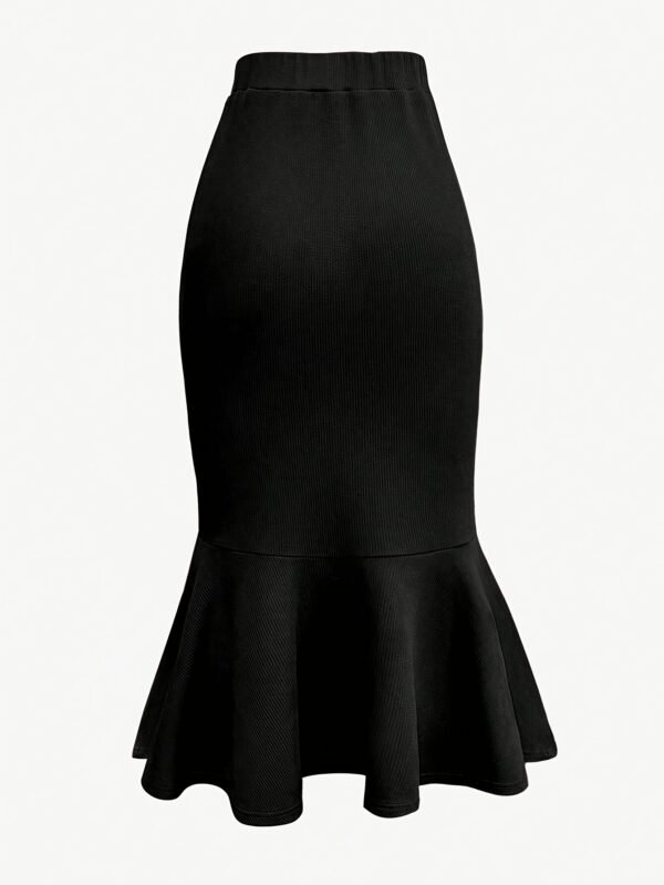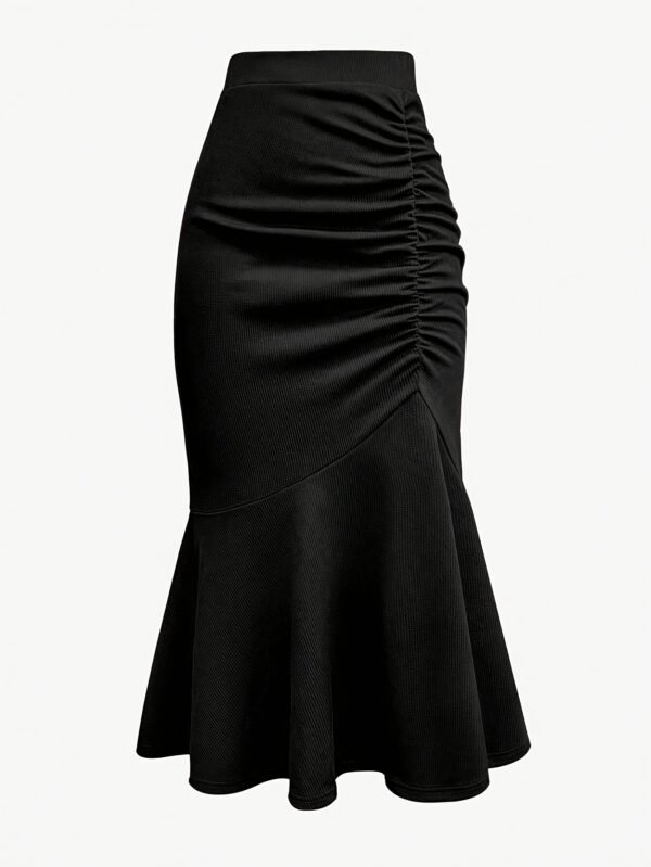 1 avis pour Jupe midi plissée élégante pour femme – Noir, taille extensible, queue de sirène