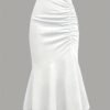 Jupe midi plissée élégante pour femme – Noir, taille extensible, queue de sirène