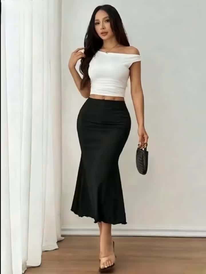 Jupe Sirène Élégante et Polyvalente pour Femmes en Couleur Unie pour le Travail