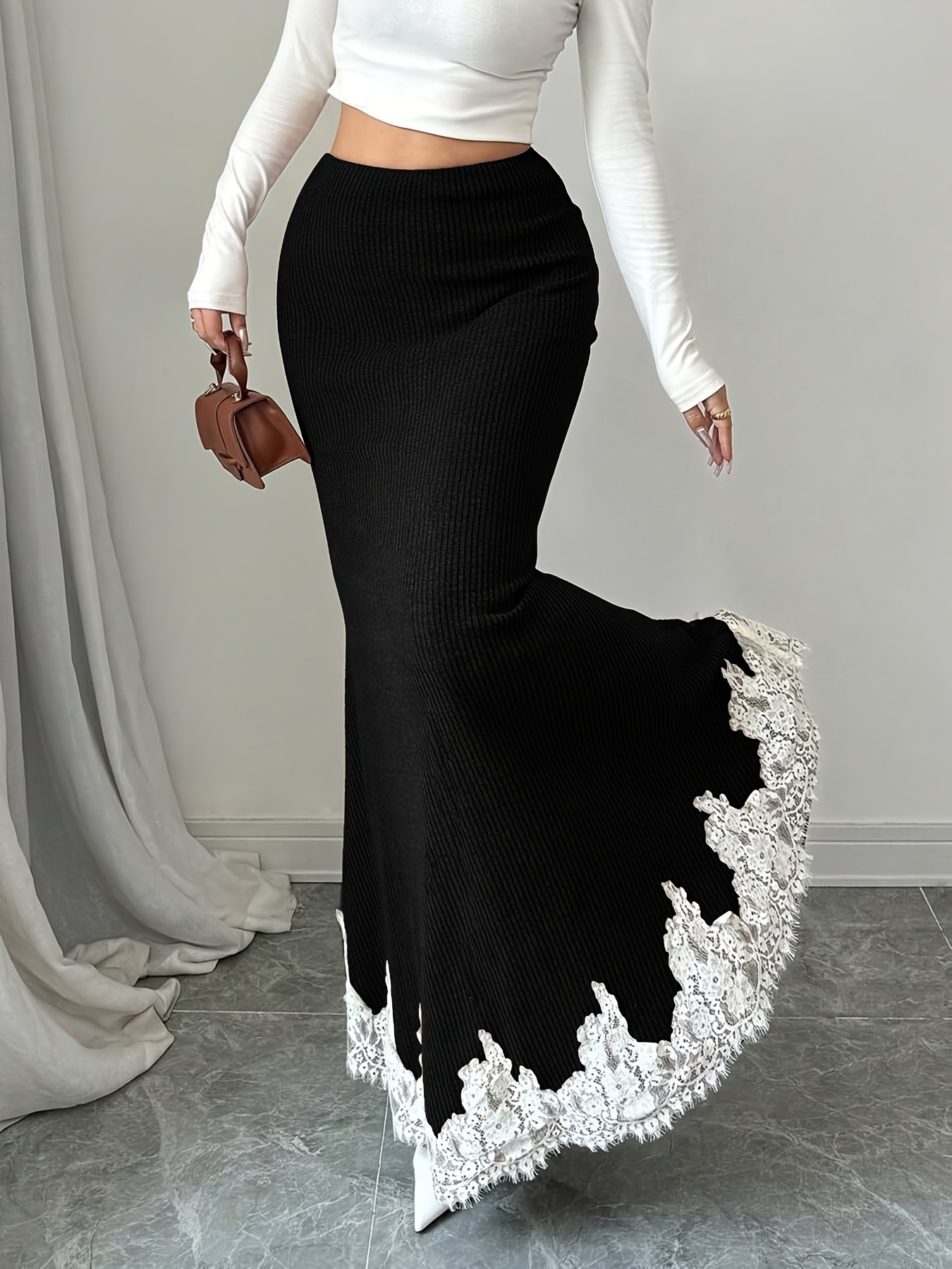Jupe trapèze élégante pour femmes avec bordure en dentelle