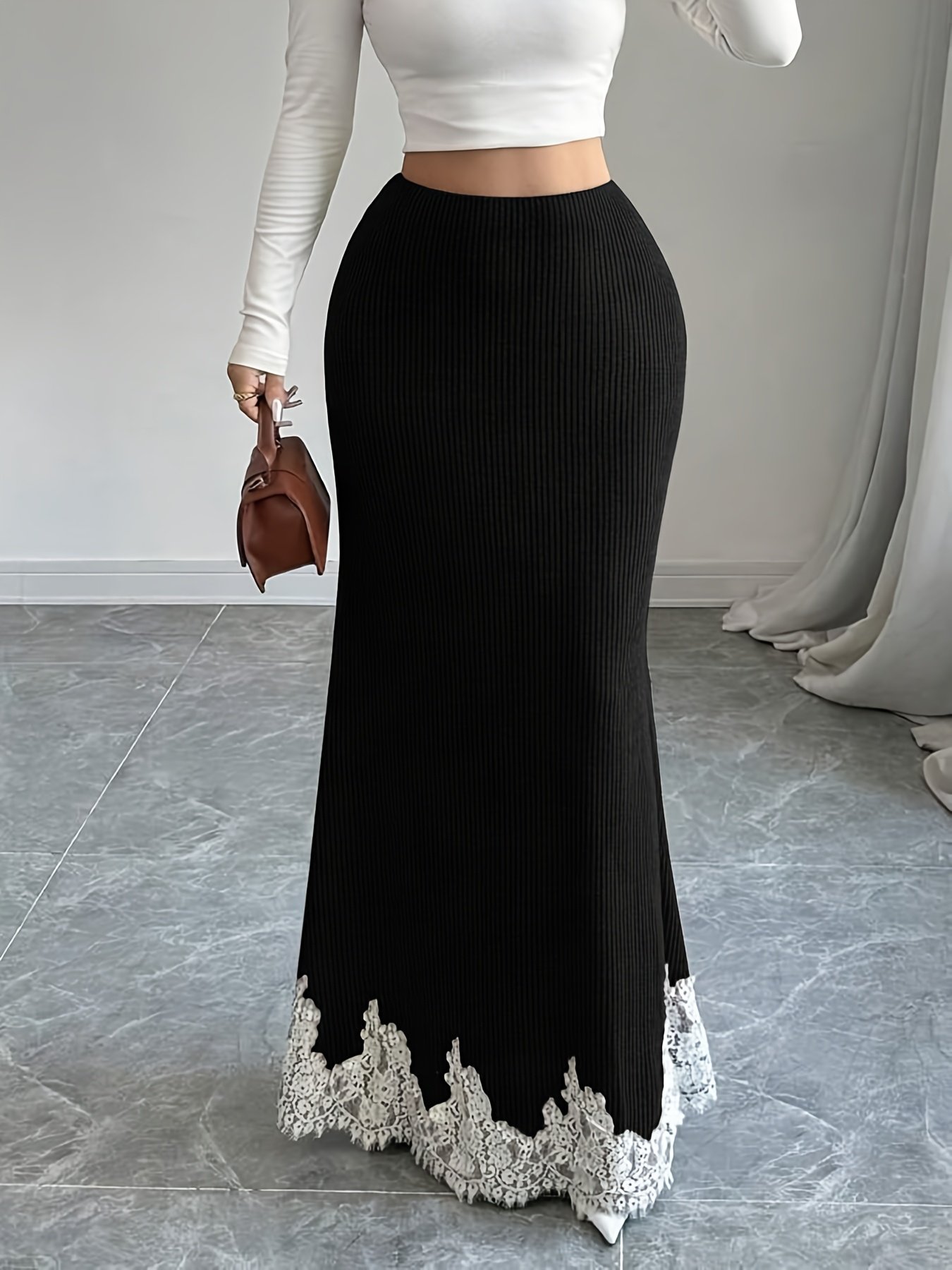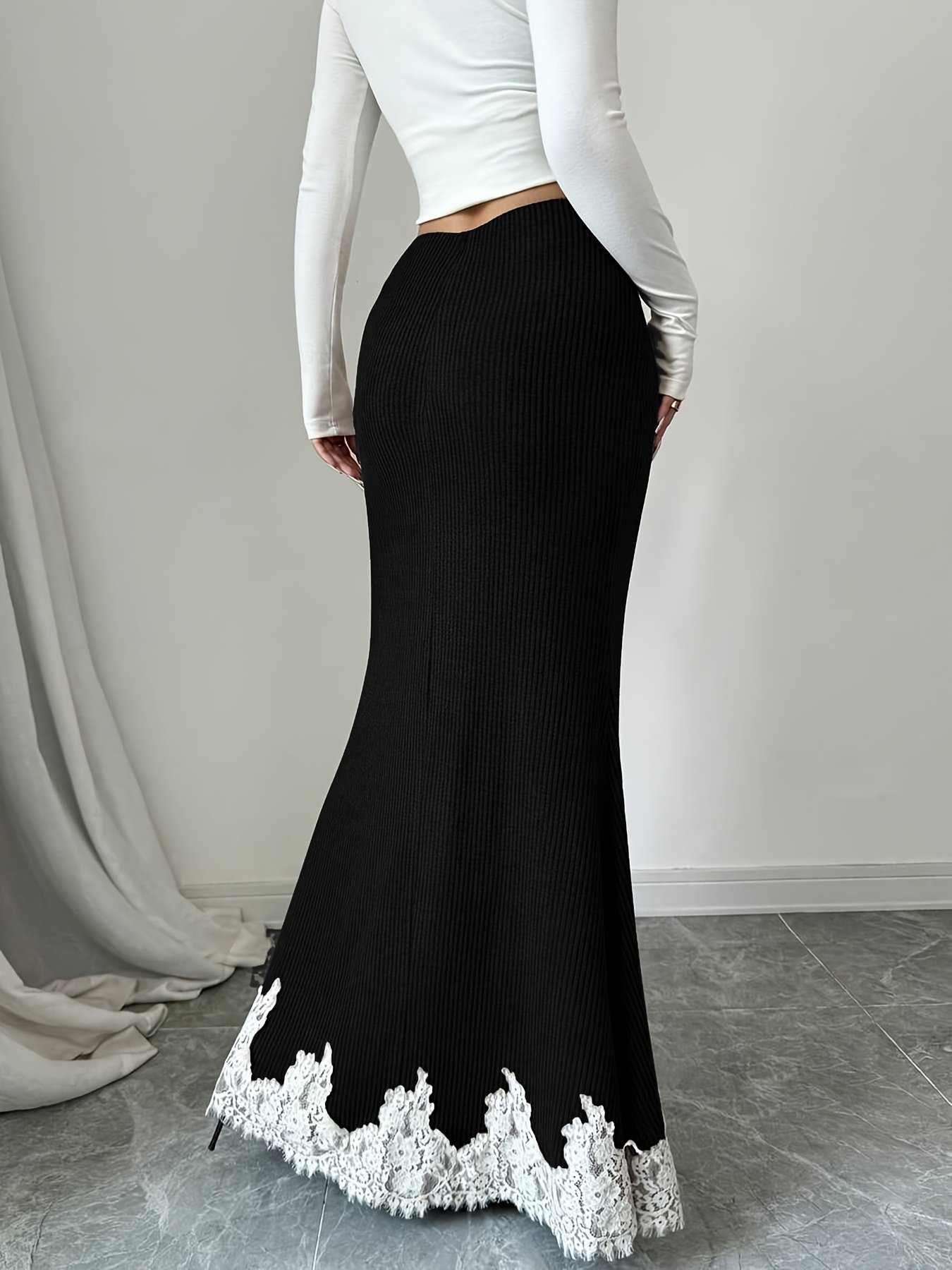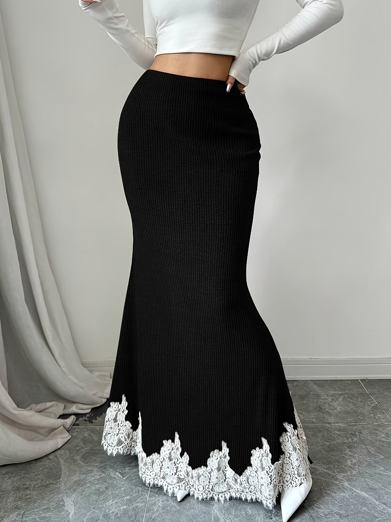 Jupe trapèze élégante pour femmes avec bordure en dentelle