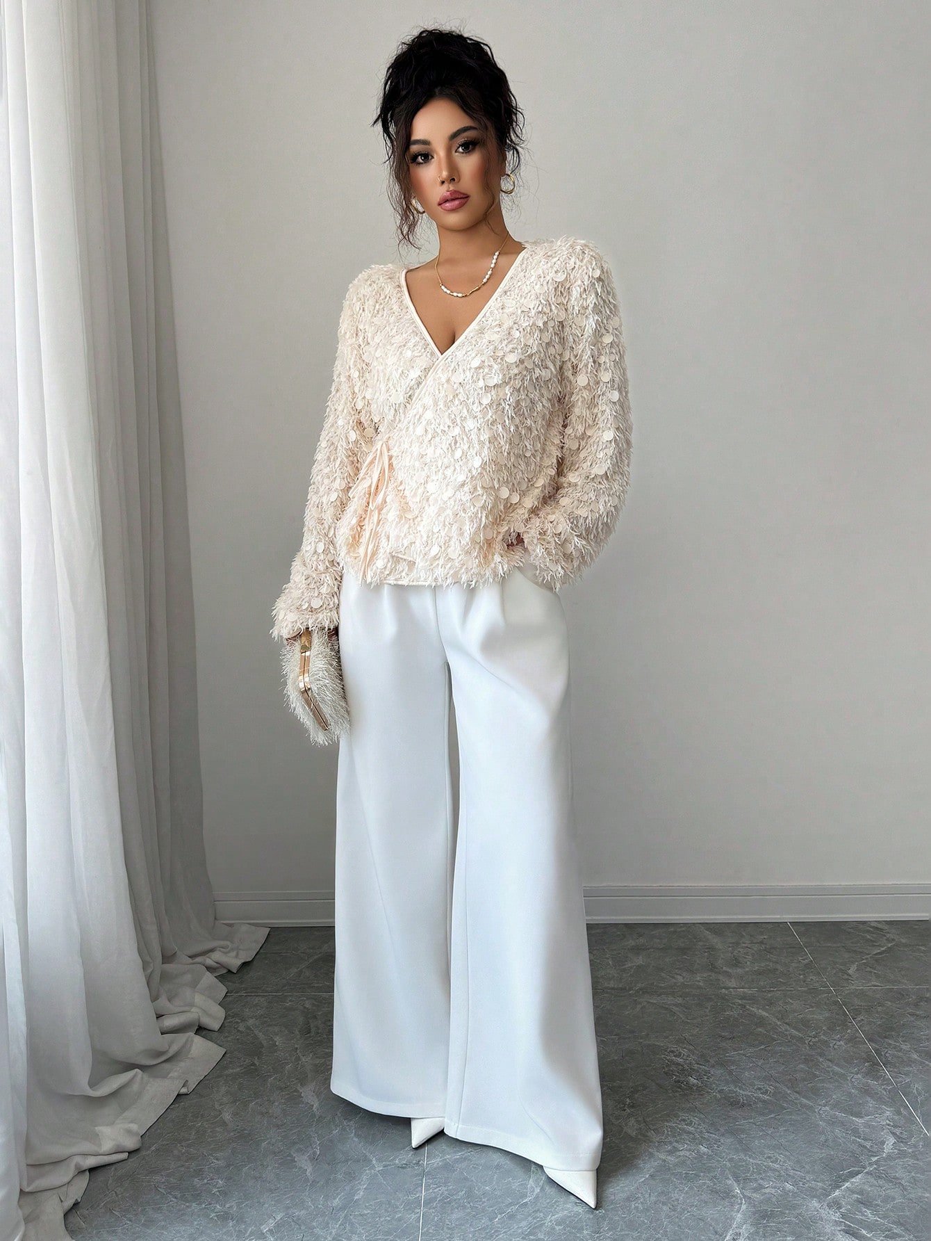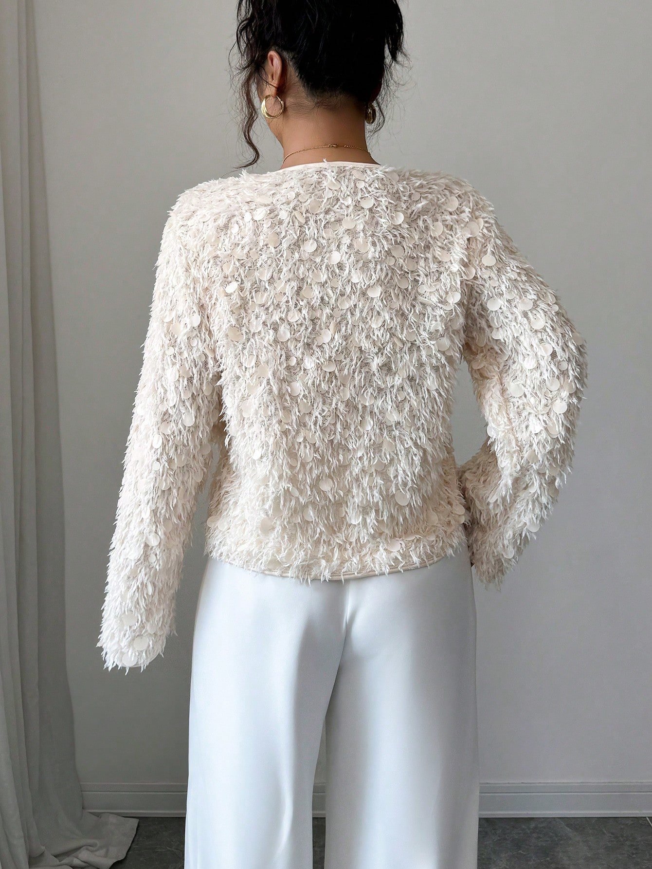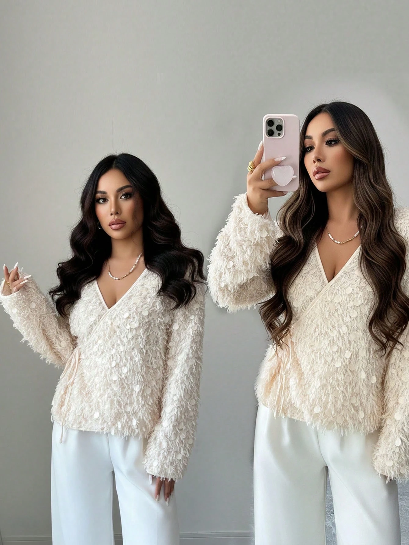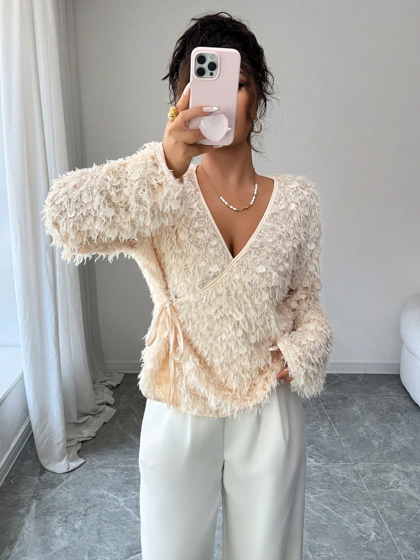 Kimono Style Sequin Wrap Manches Longues Blouse Sequin Ample