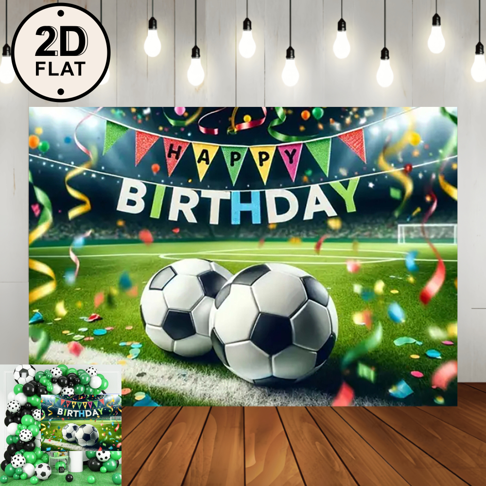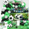 + Livraison de 12 à 17 jourscomprenant 1 Bannière « Joyeux Anniversaire » 152,4 x 101,6 cm et Ballons de Fête à Motif Football Vert Noir Blanc, Bannière Plate 2D