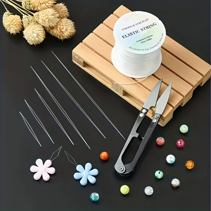 Kit de Fabrication de Perles avec Fil Élastique TC – DIY Complet avec Aiguille, Enfileur, Perles Codées par Couleur et Guide pour Bracelets, Colliers, Porte-clés – Compatible avec Perles de Rosaille et Fournitures d’Artisanat