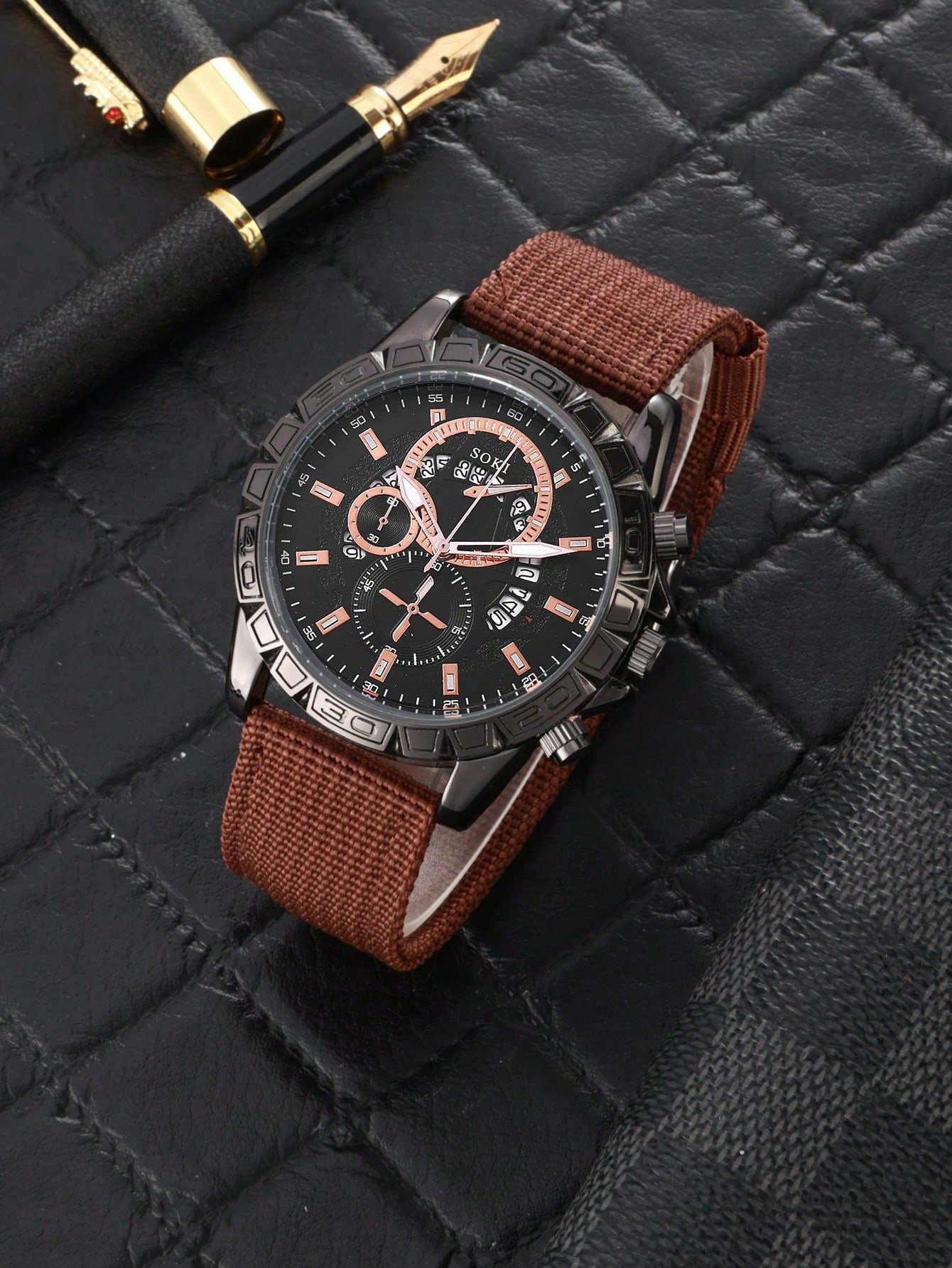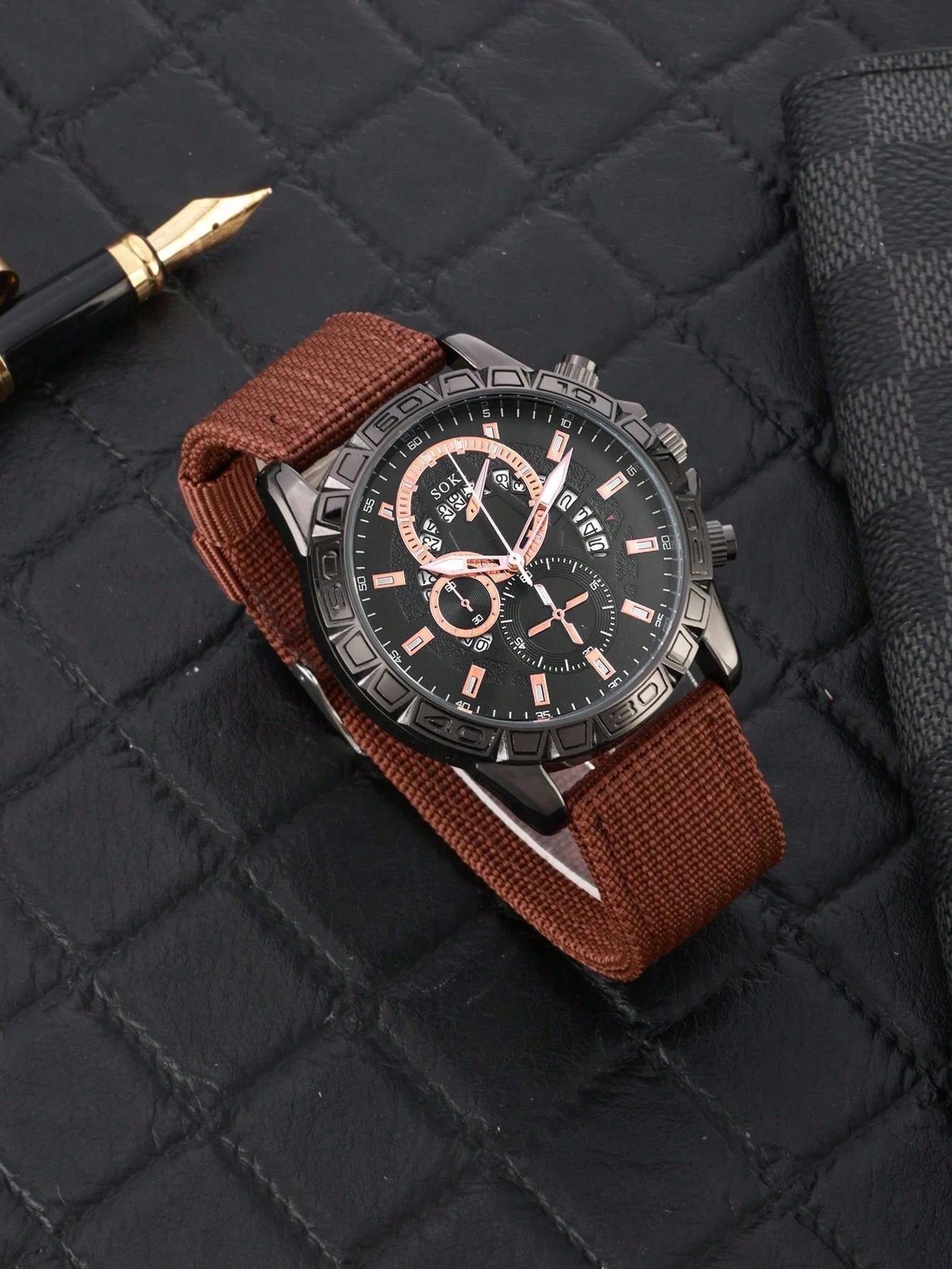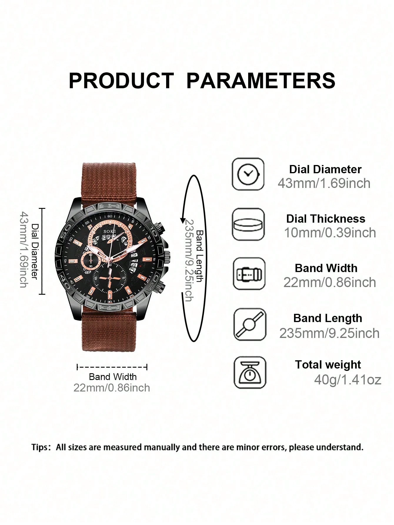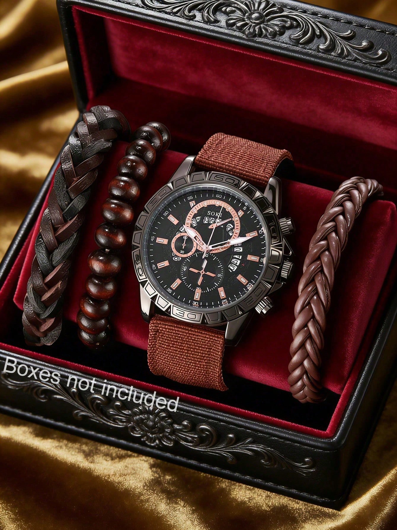 Ensemble de montres pour hommes, comprenant un calendrier, une montre de mode sport casual au style industriel avec cadran rond à quartz et bracelet véritable, un ensemble de bracelets style punk, un bracelet tressé en PU. Convient pour le