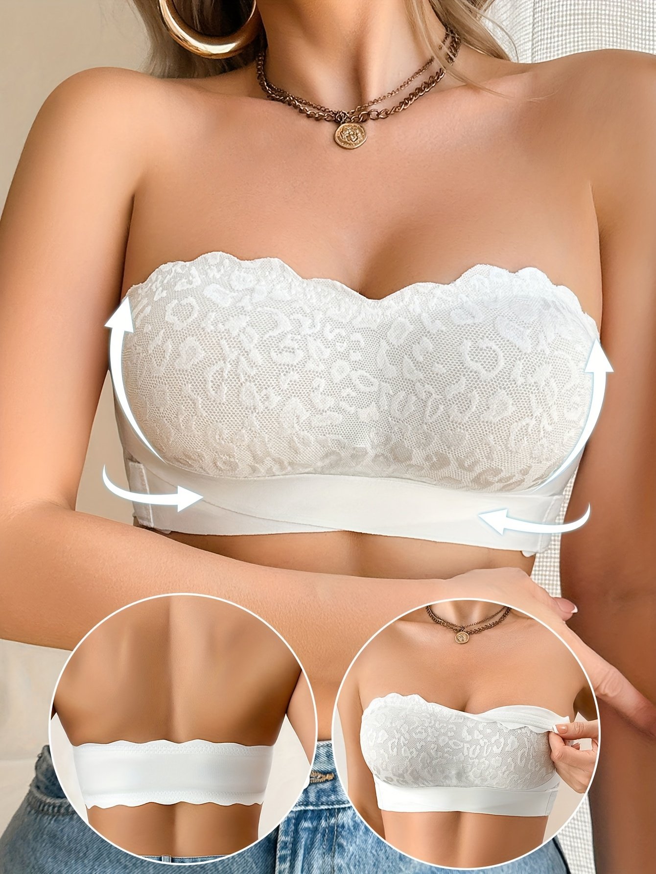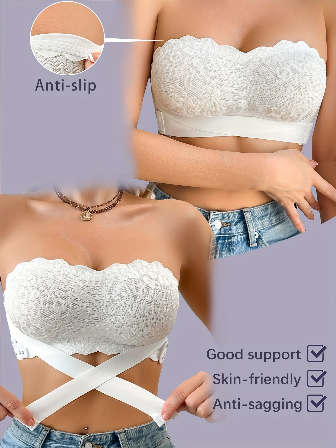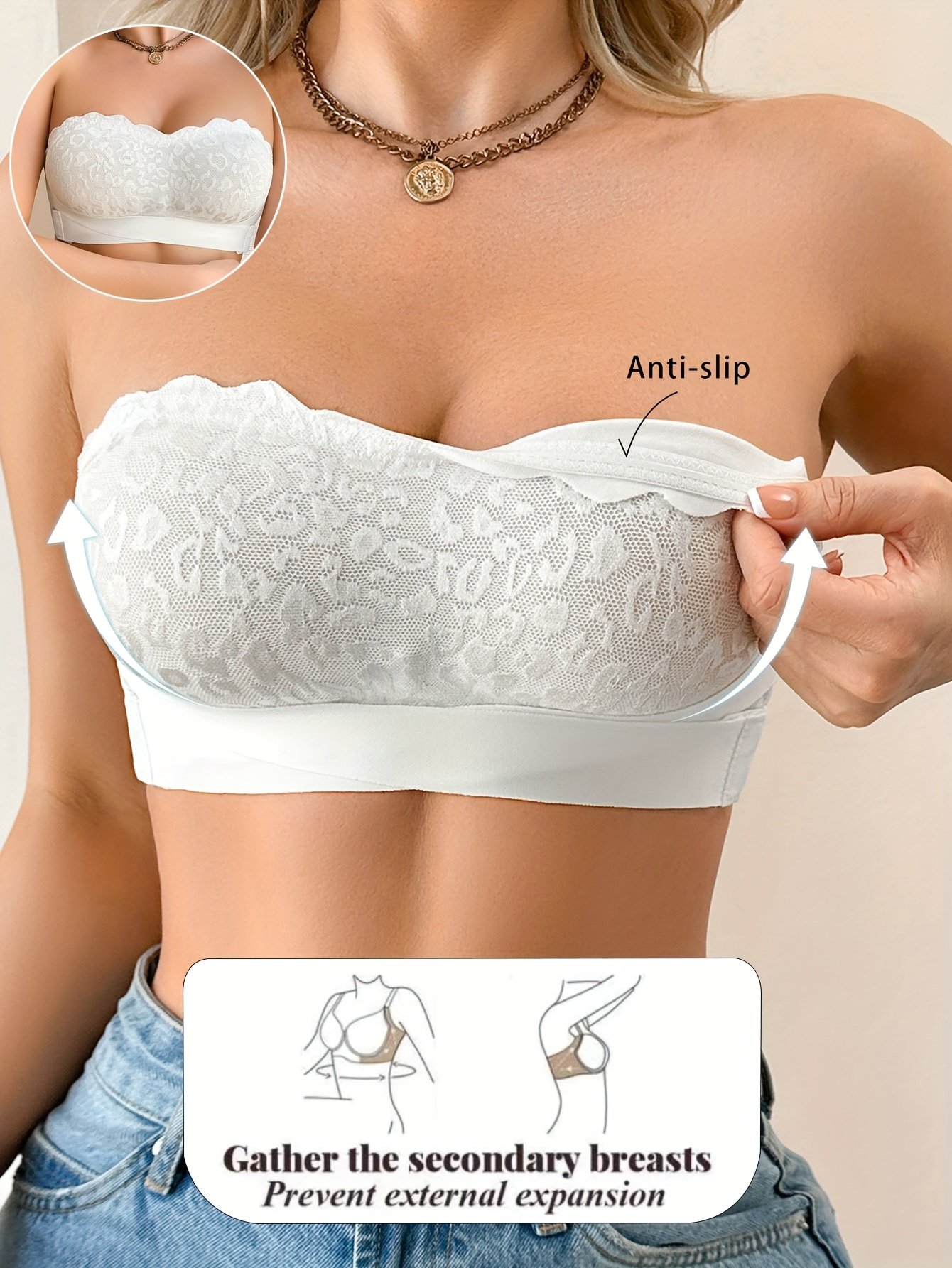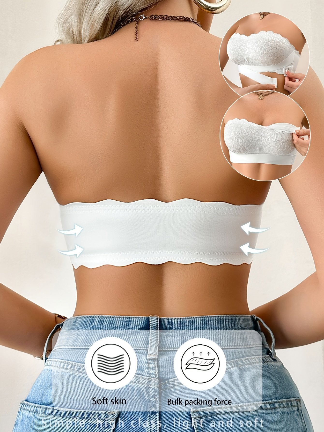 Soutien-Gorge Femme à Dentelle – Petites Fleurs Florales Fermeture Avant Sans Bretelles/Encolure Bateau Compatible Hauts, Sans Armatures et Sans Rembourrage, Confortable pour Tenue Décontractée, Lavable en Machine, Lingerie Élégante