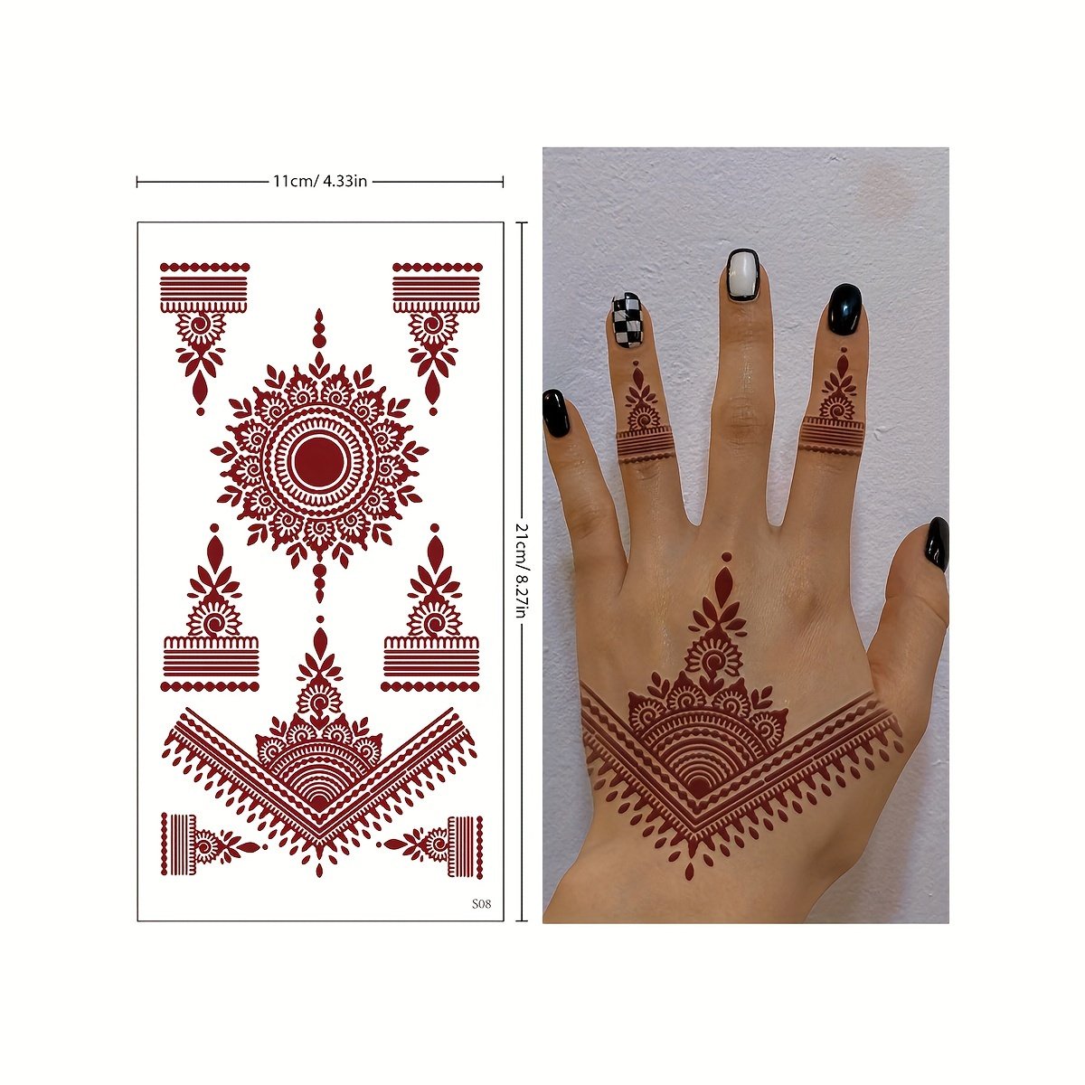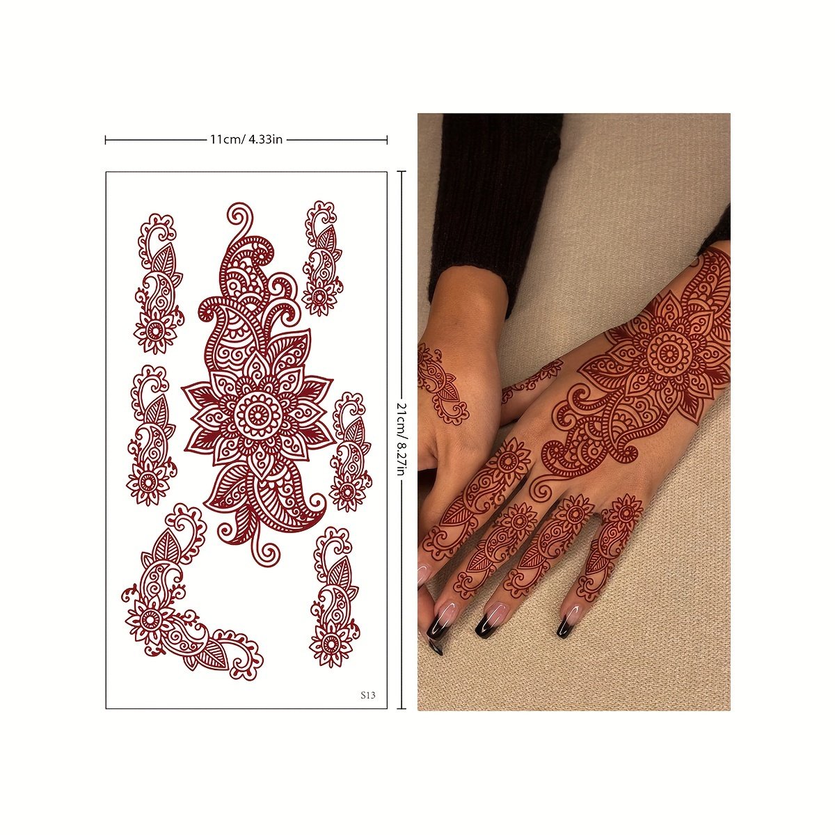 Lot de 10 tatouages temporaires motifs rétro rouges pour mains et corps, autocollants décoratifs éphémères