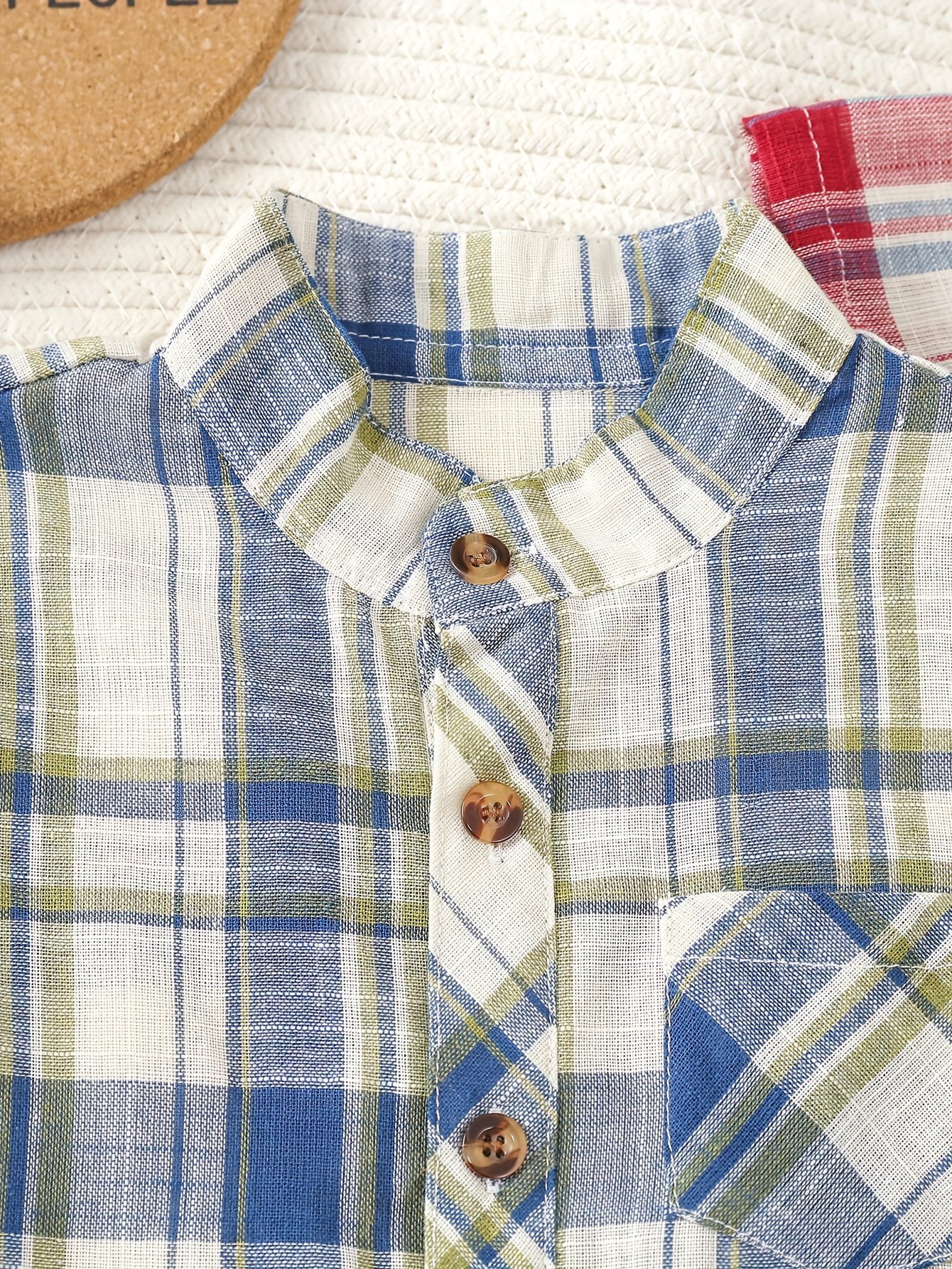 + Livraison de 12 à 17 jourscol montant, tissu tissé non extensible, coupe standard avec poches, détail de la patte de boutonnage