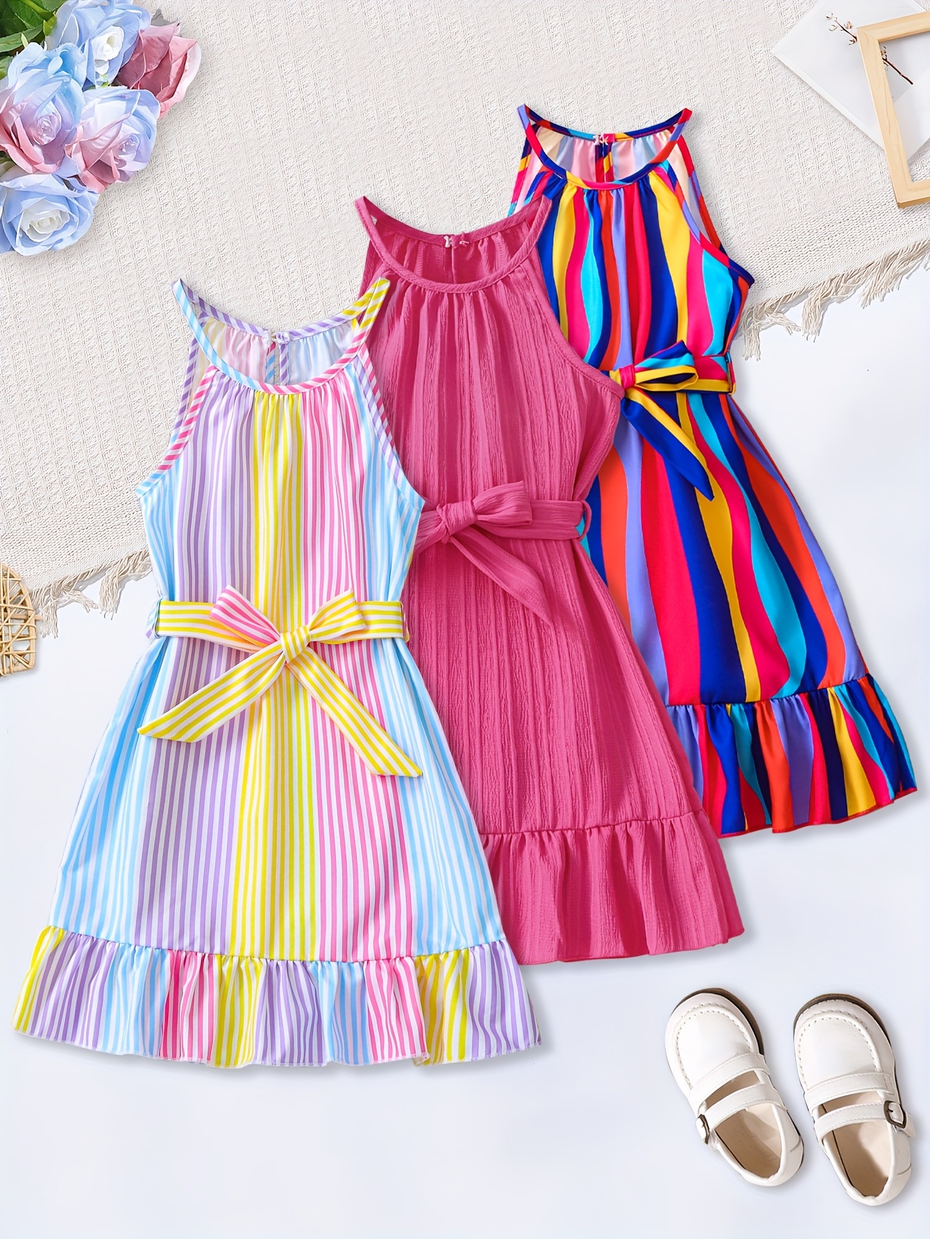 Lot de 3 robes décolleté à bretelles pour filles