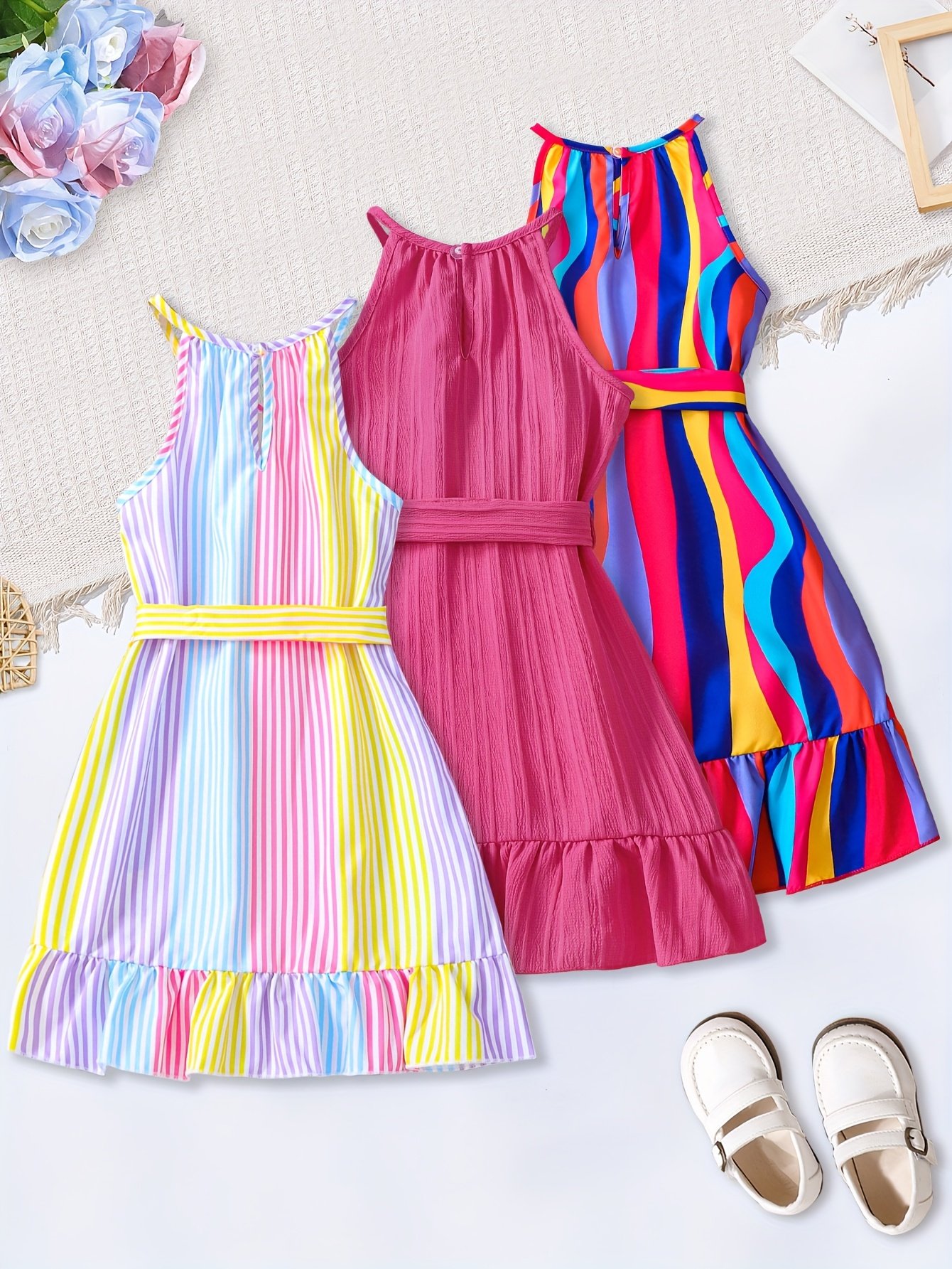 Lot de 3 robes décolleté à bretelles pour filles