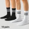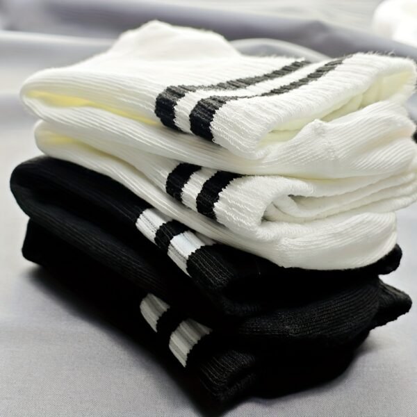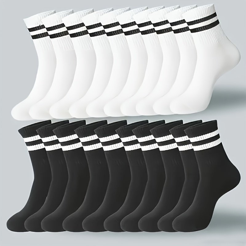 Lot de 10 paires de chaussette noir et blanc rayés, adapté aux hommes et femmes