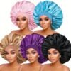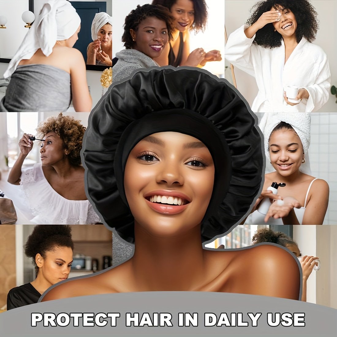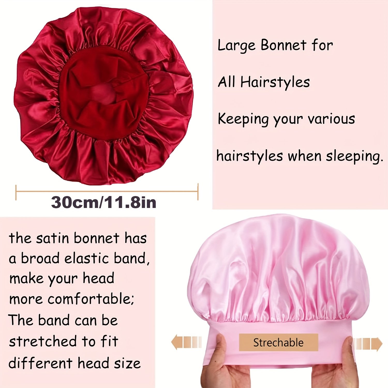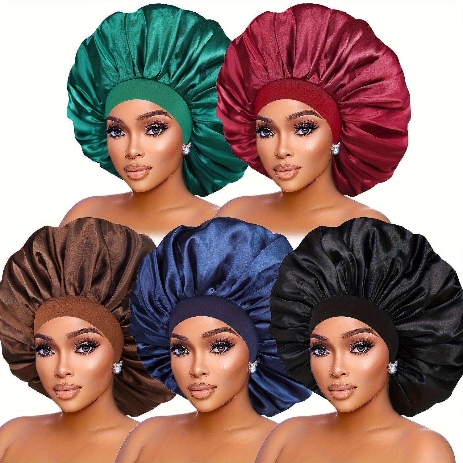 Lot de 5 bonnets en satin pour femmes, bord élastique large