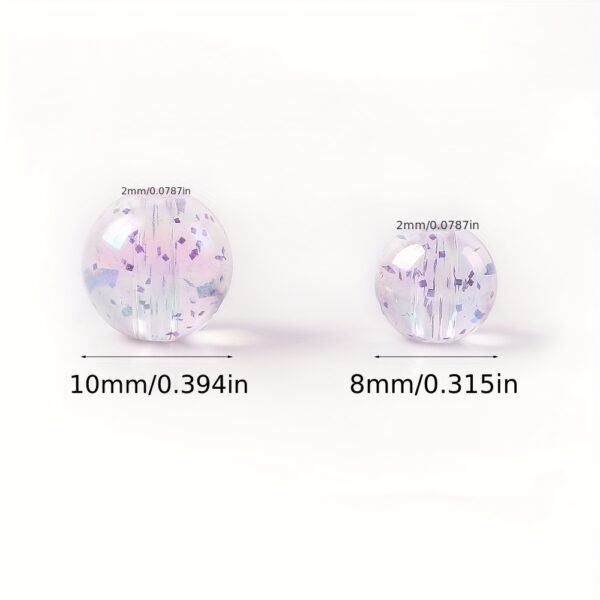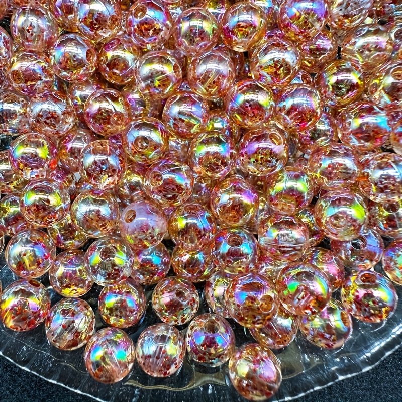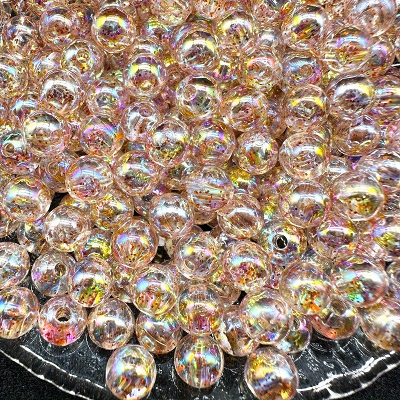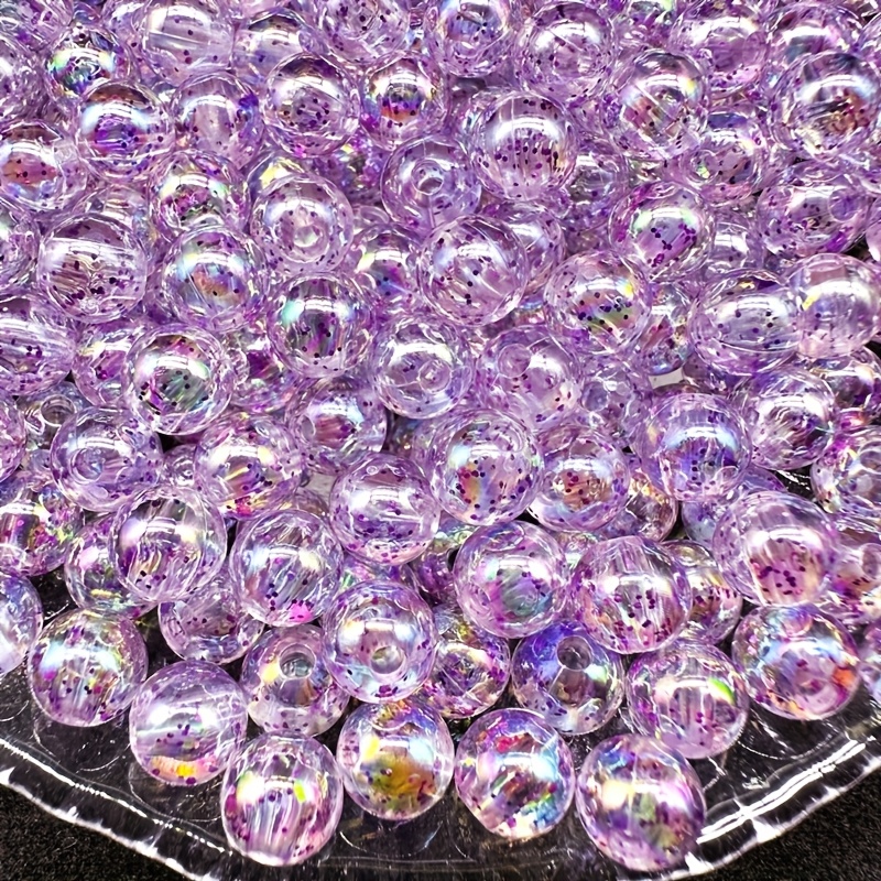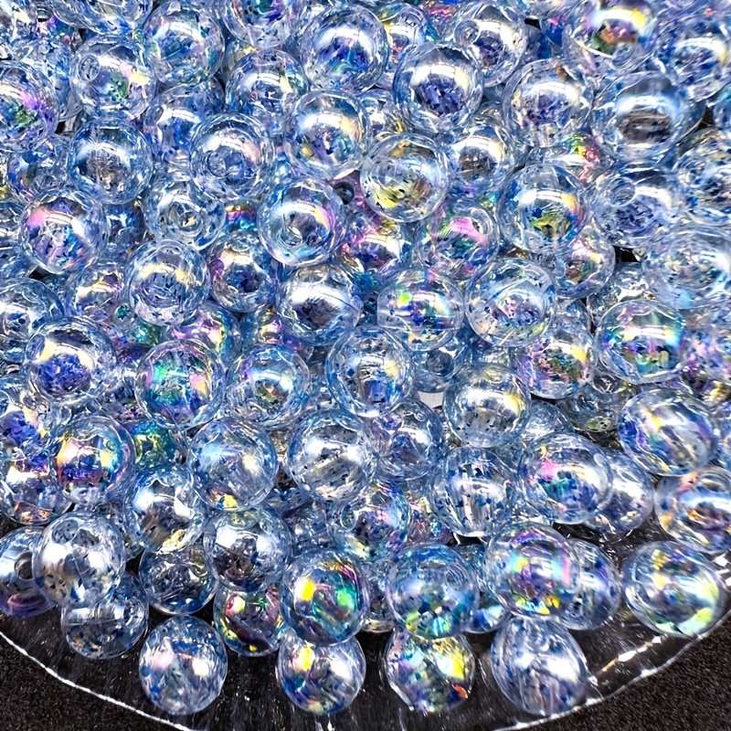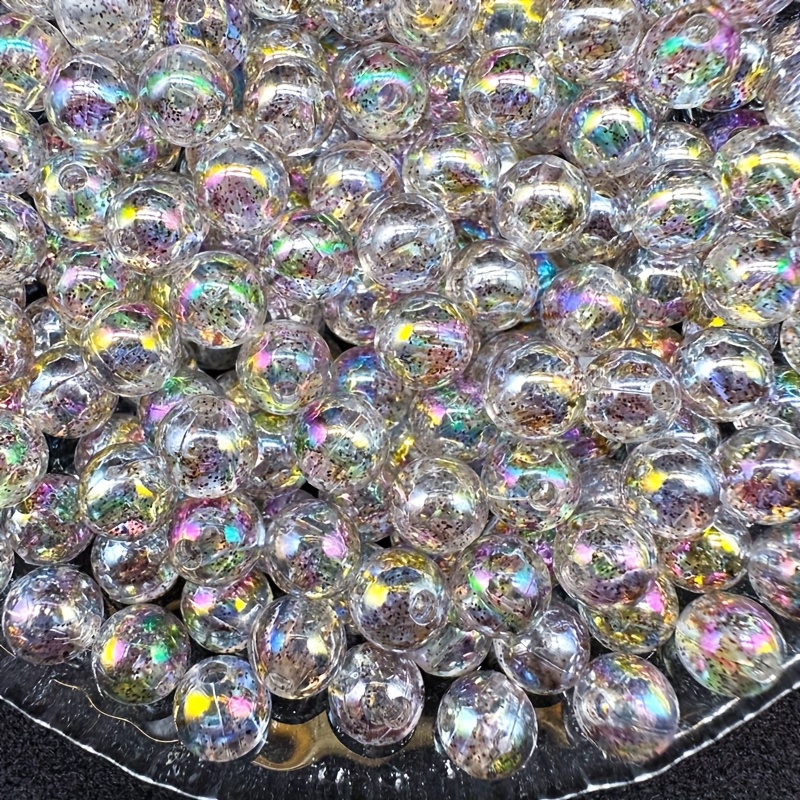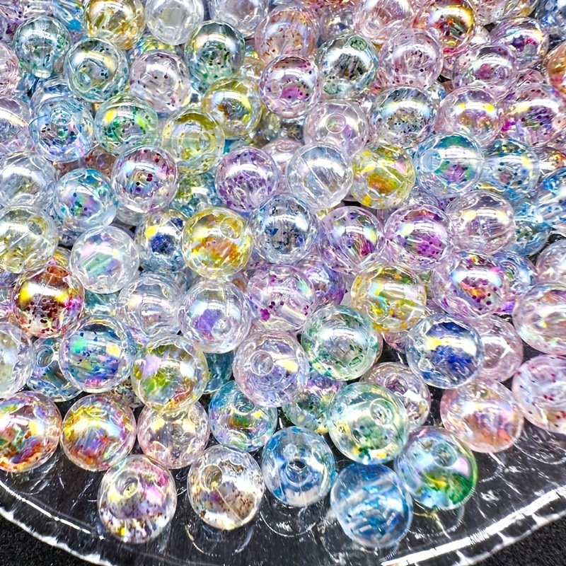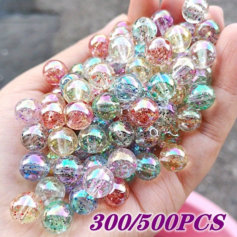 Lot de 500/300 perles acryliques irisées AB remplies de poudre – Couleurs scintillantes (,,,,,) – Perles rondes transparentes de 8 mm pour la fabrication de bijoux DIY, chaînes de téléphone, bracelets, colliers – Convient pour les accessoires de mode pour femmes et les perles d’espacement