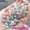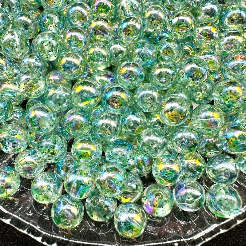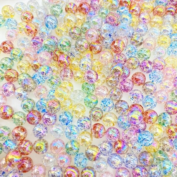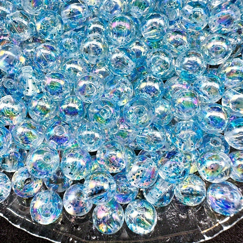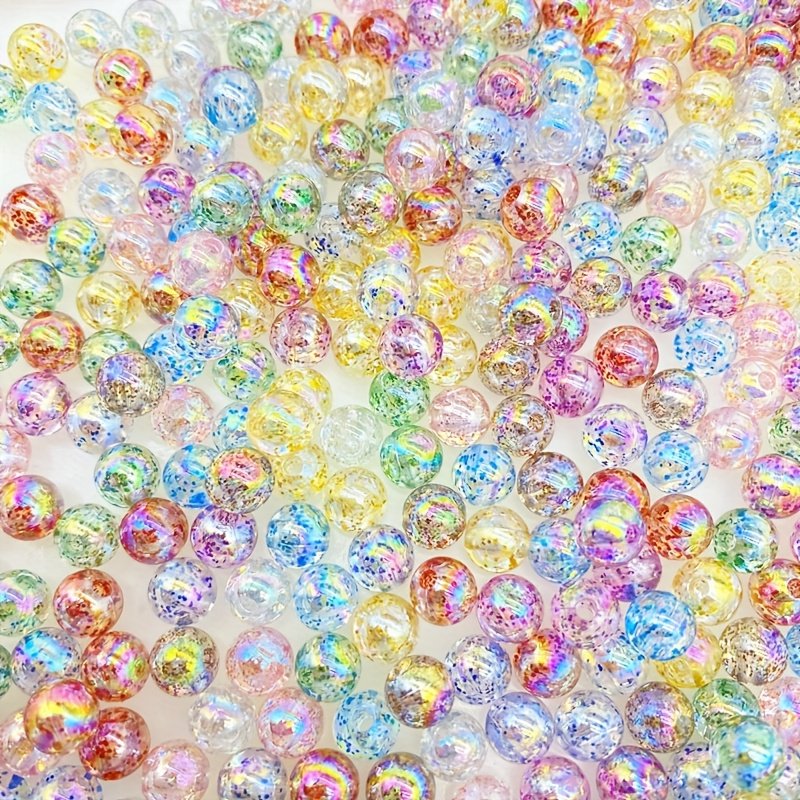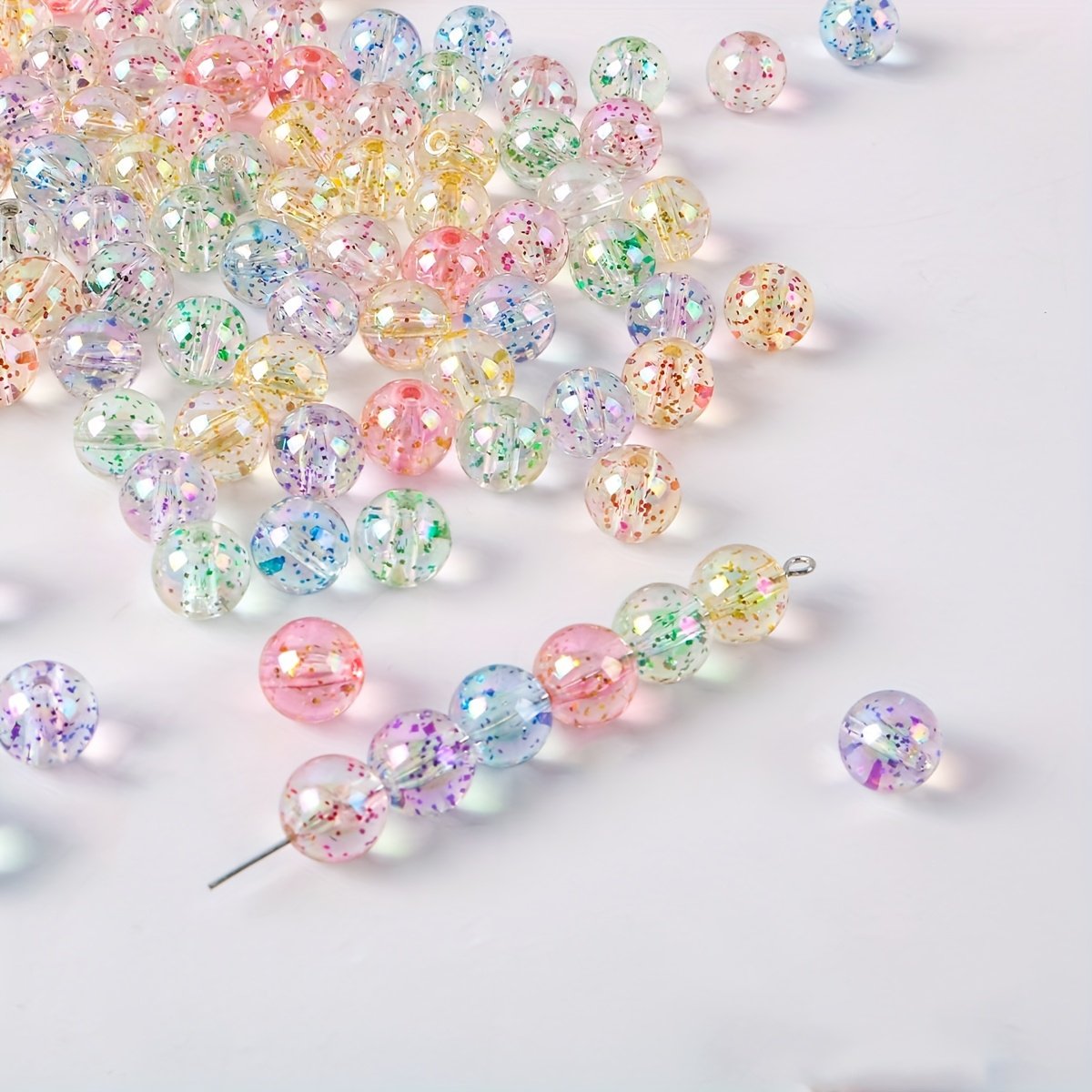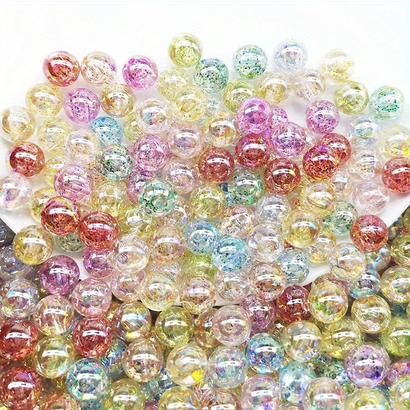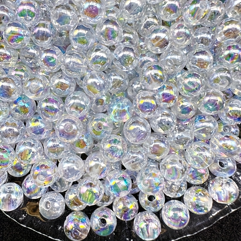 Lot de 500/300 perles acryliques irisées AB remplies de poudre – Couleurs scintillantes (,,,,,) – Perles rondes transparentes de 8 mm pour la fabrication de bijoux DIY, chaînes de téléphone, bracelets, colliers – Convient pour les accessoires de mode pour femmes et les perles d’espacement