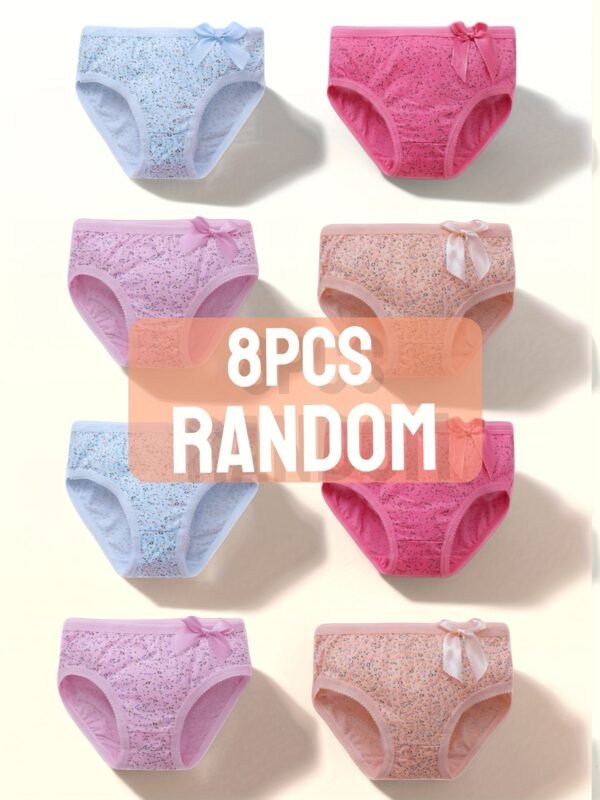Lot de 8 Culottes Triangle Mignonnes pour Filles. Conçues en Polyester et Spandex, Douces et Respectueuses de la Peau. Ornées de Motifs Floraux et de Nœuds Délicats, Ces Culottes Ajoutent un Charme Doux à Votre Petite