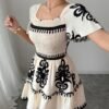 Mini robe élégante à col carré, avec des imprimés à la mode, des plis