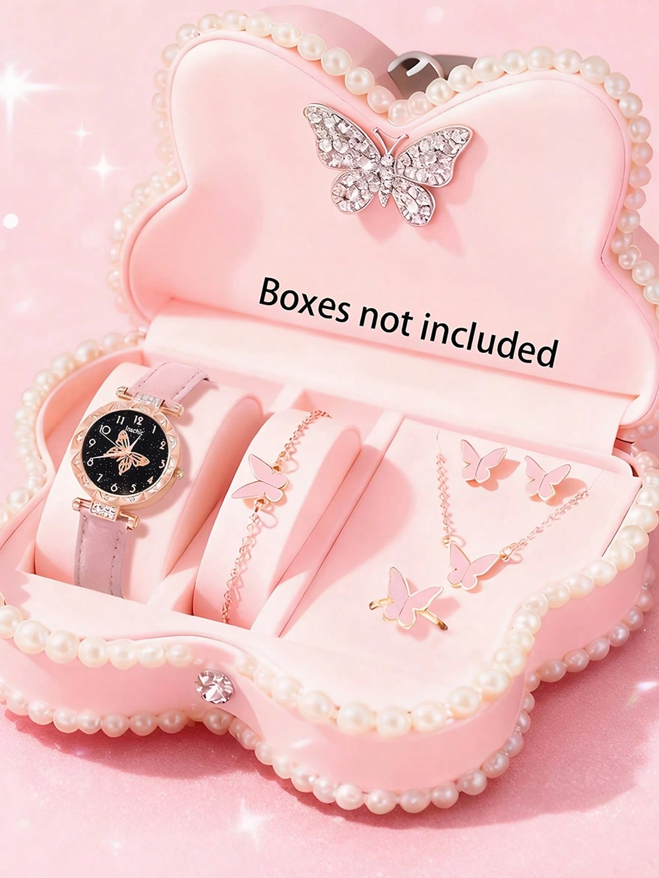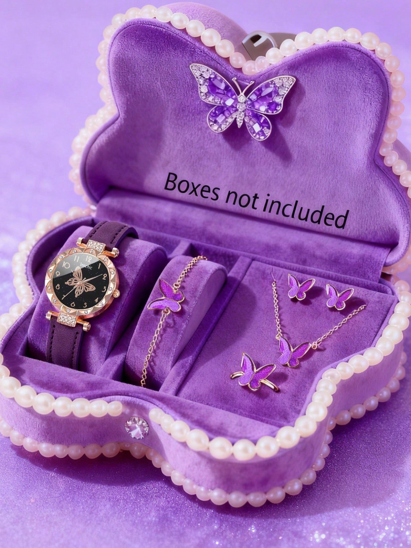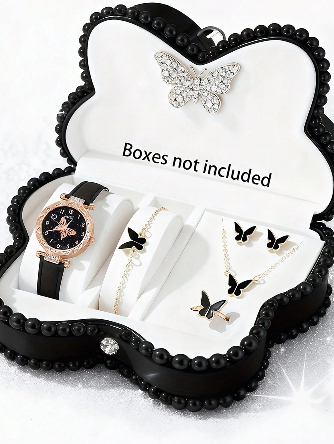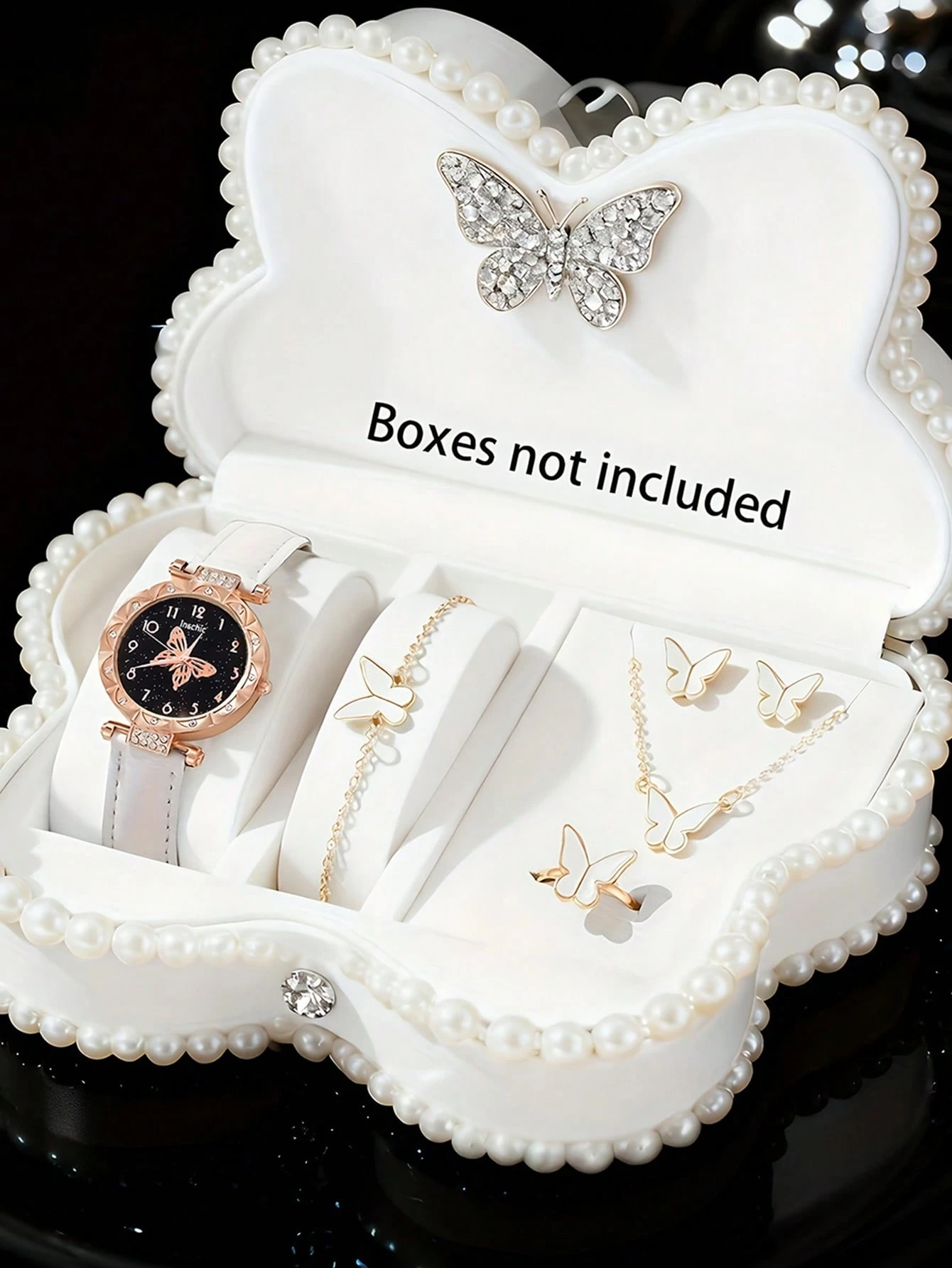 Montre à quartz élégante et à la mode pour fille 6 pièces, avec cadran à motif papillon. Parfaite pour les jeunes filles, elle s'accorde avec un collier, un bracelet, une bague et des boucles d'oreilles assortis. Un cadeau idéal pour un anniversair