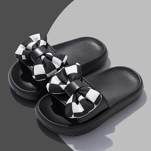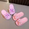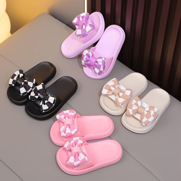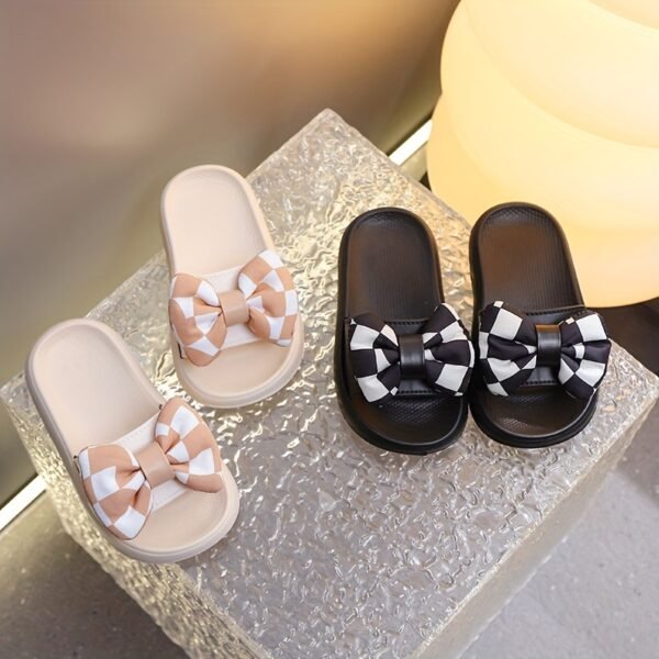 Nouvelle collection printemps-été 2025 : Pantoufles à motif carreaux et papillons, chaussons d’été doux et antidérapants pour filles, sandales de bain et de plage pour vacances en extérieur