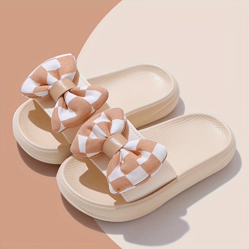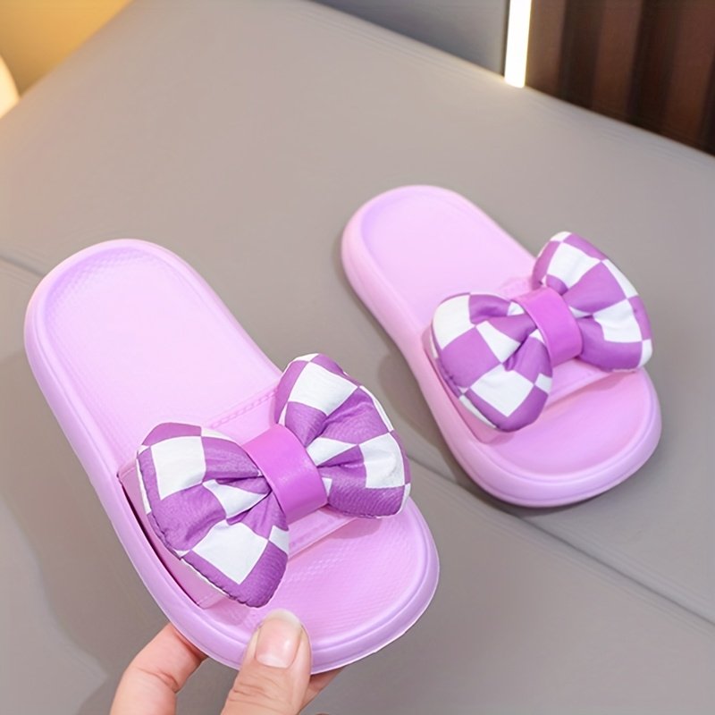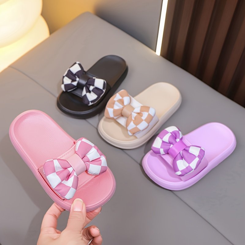Nouvelle collection printemps-été 2025 : Pantoufles à motif carreaux et papillons, chaussons d’été doux et antidérapants pour filles, sandales de bain et de plage pour vacances en extérieur