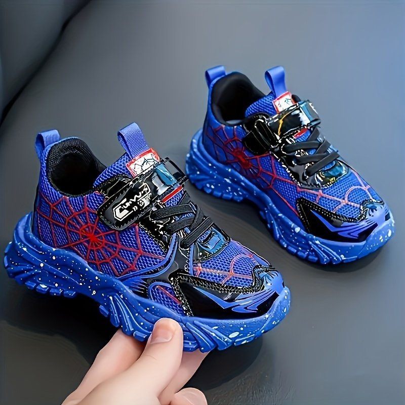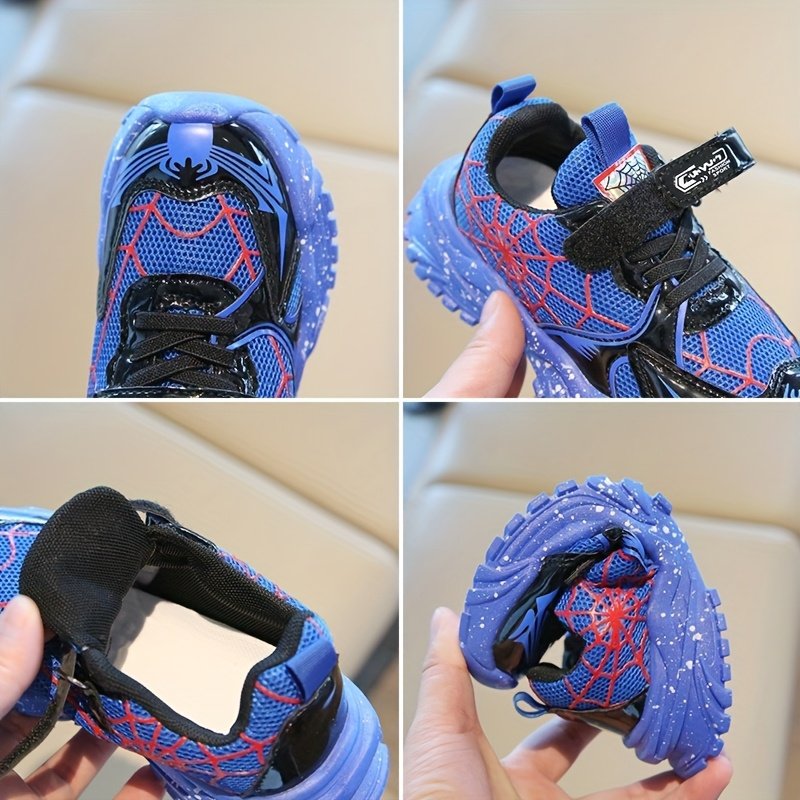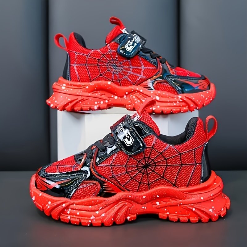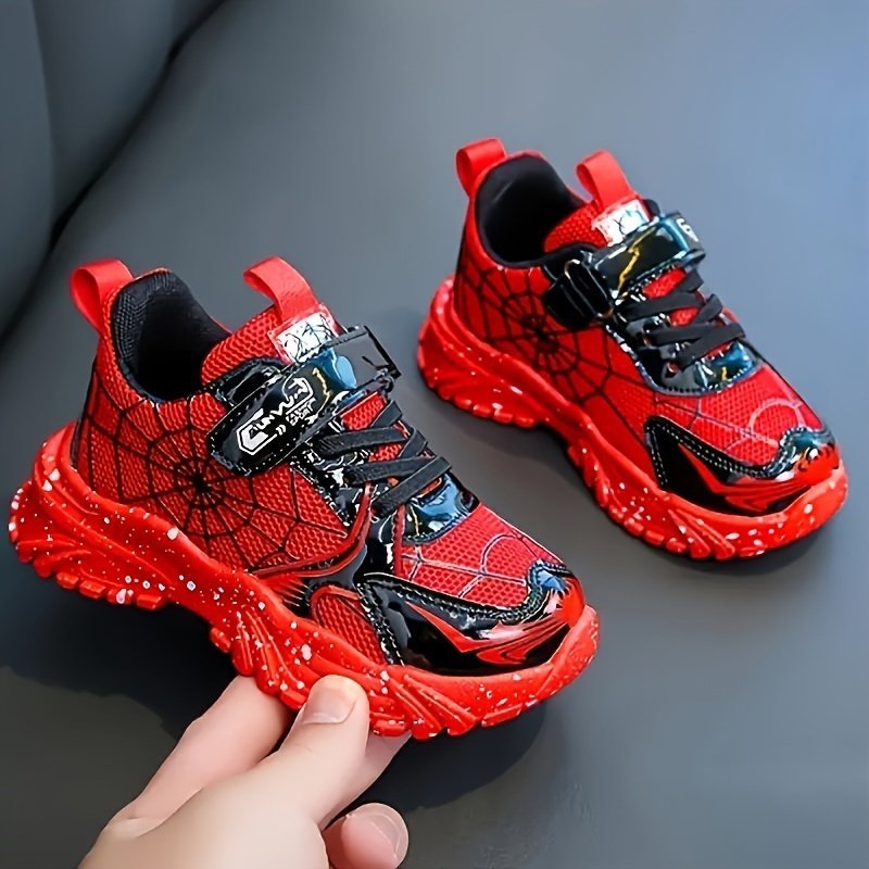 Nouvelles baskets élégantes et polyvalentes pour garçons, printemps et automne, avec un design Spider cool, parfaites pour la course scolaire. Ces chaussures toutes saisons ont une semelle souple et épaisse pour un usage quotidien décontracté et sont resp