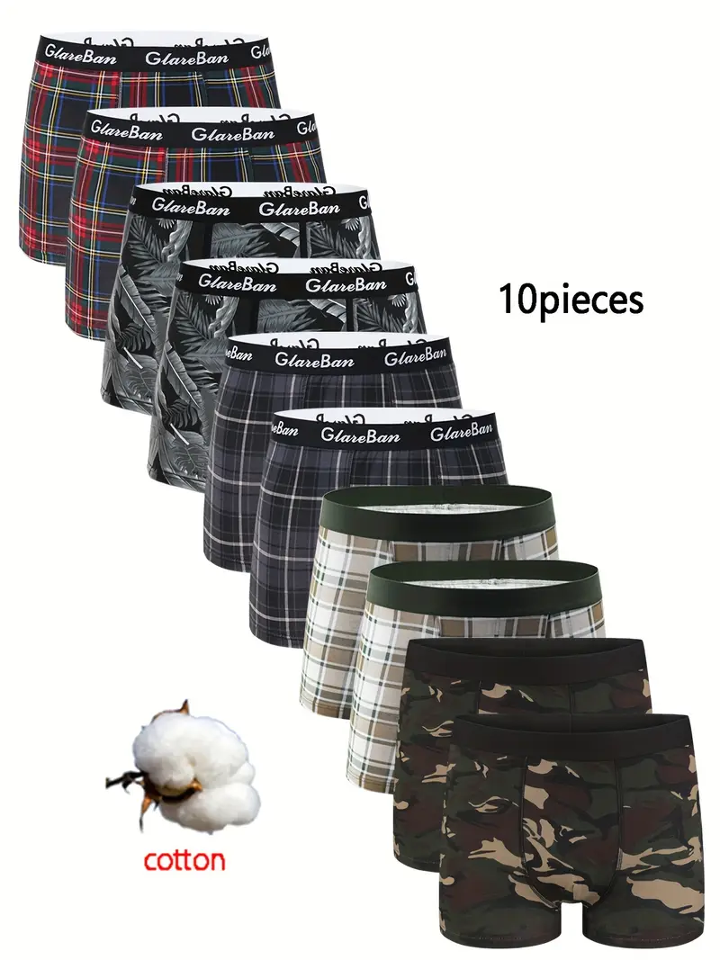 Pack de 10 Boxers en Coton Imprimé pour Hommes, Sous-vêtements Doux, Caleçons Homme, Boxers Sport, Culottes Confortables,Sous-vêtements décontractés,Sous-vêtements Élégants,Culottes Tendance,Coton de haute qualité,Multipack Sous-vêtements,Boxers pour Hommes,Port Quotidien