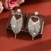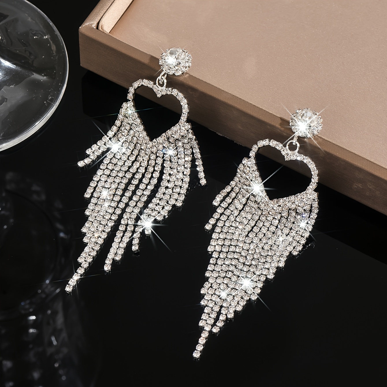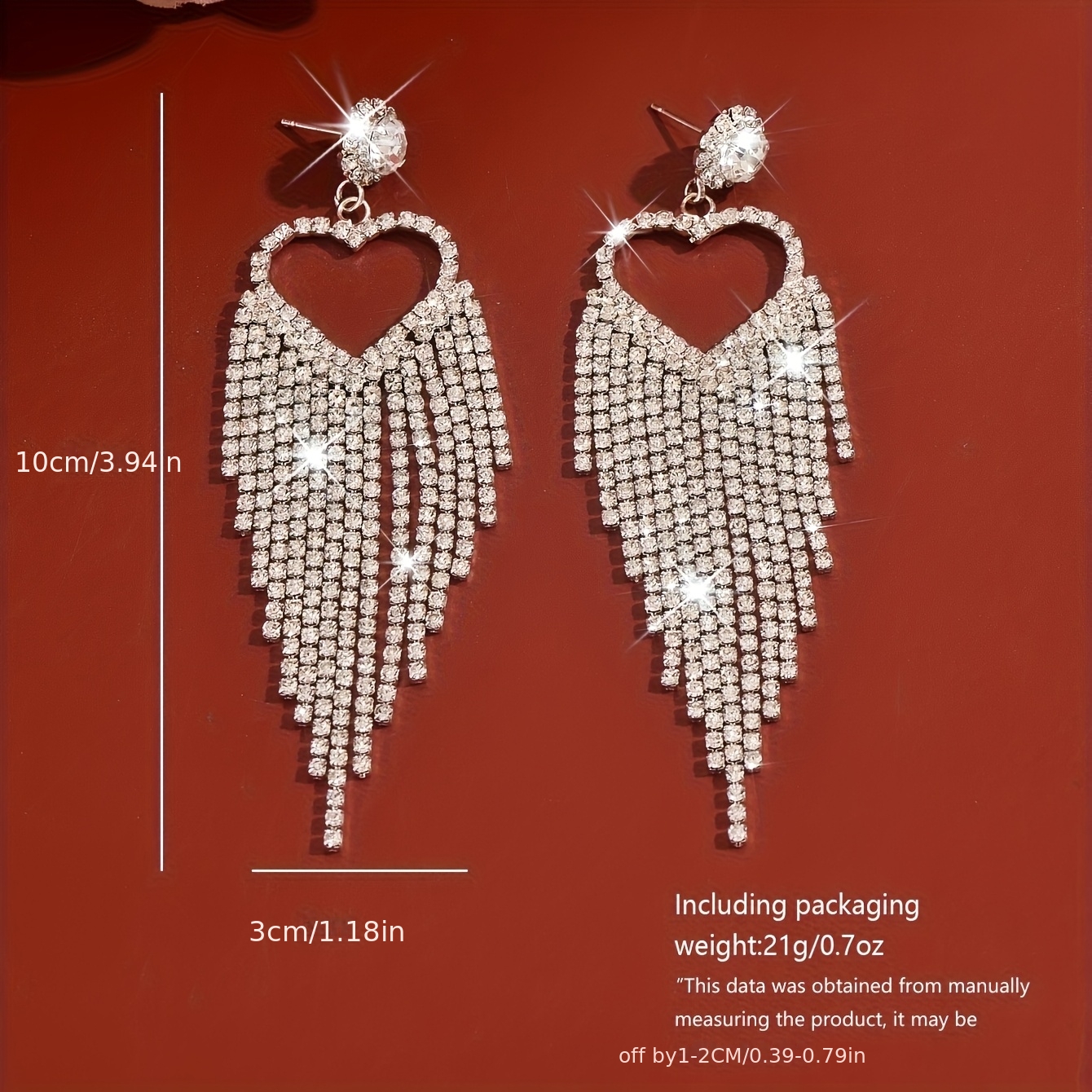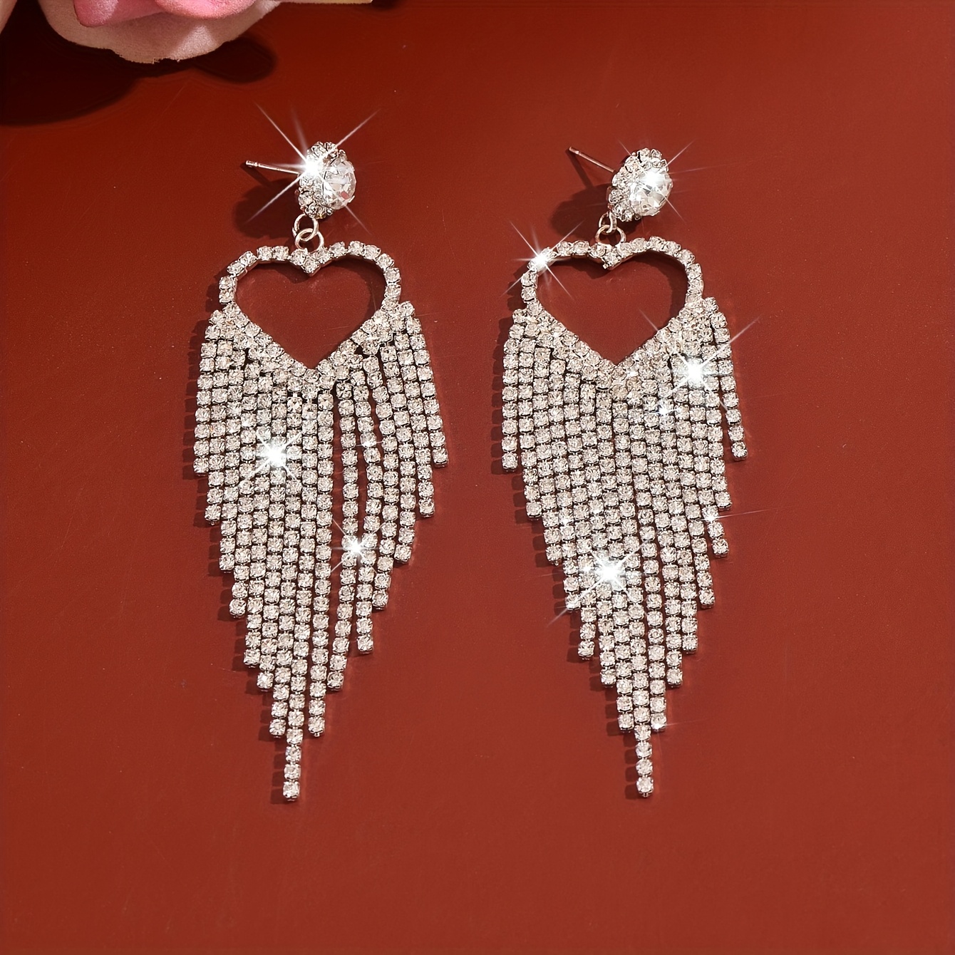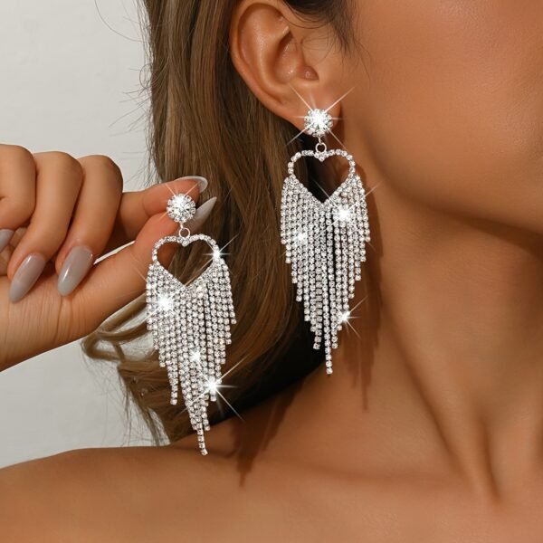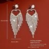 Paire de boucles d’oreilles à pompon et strass en forme de cœur tendance