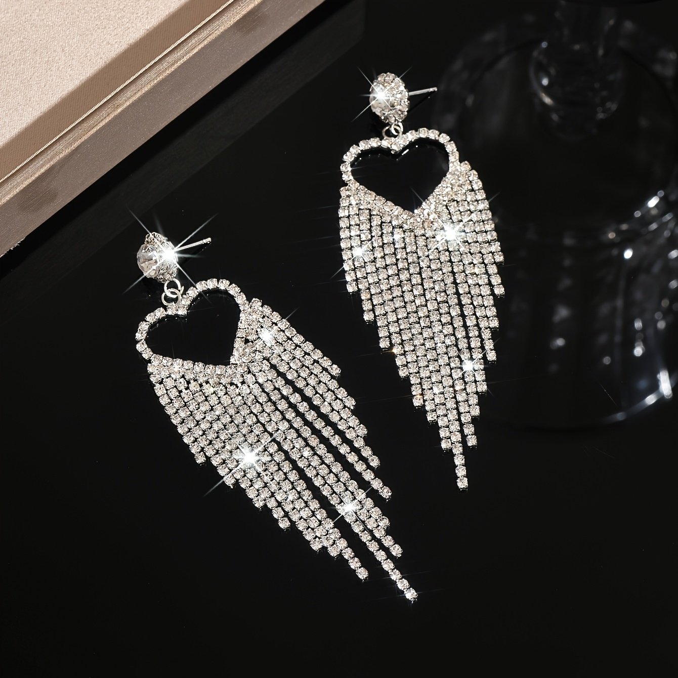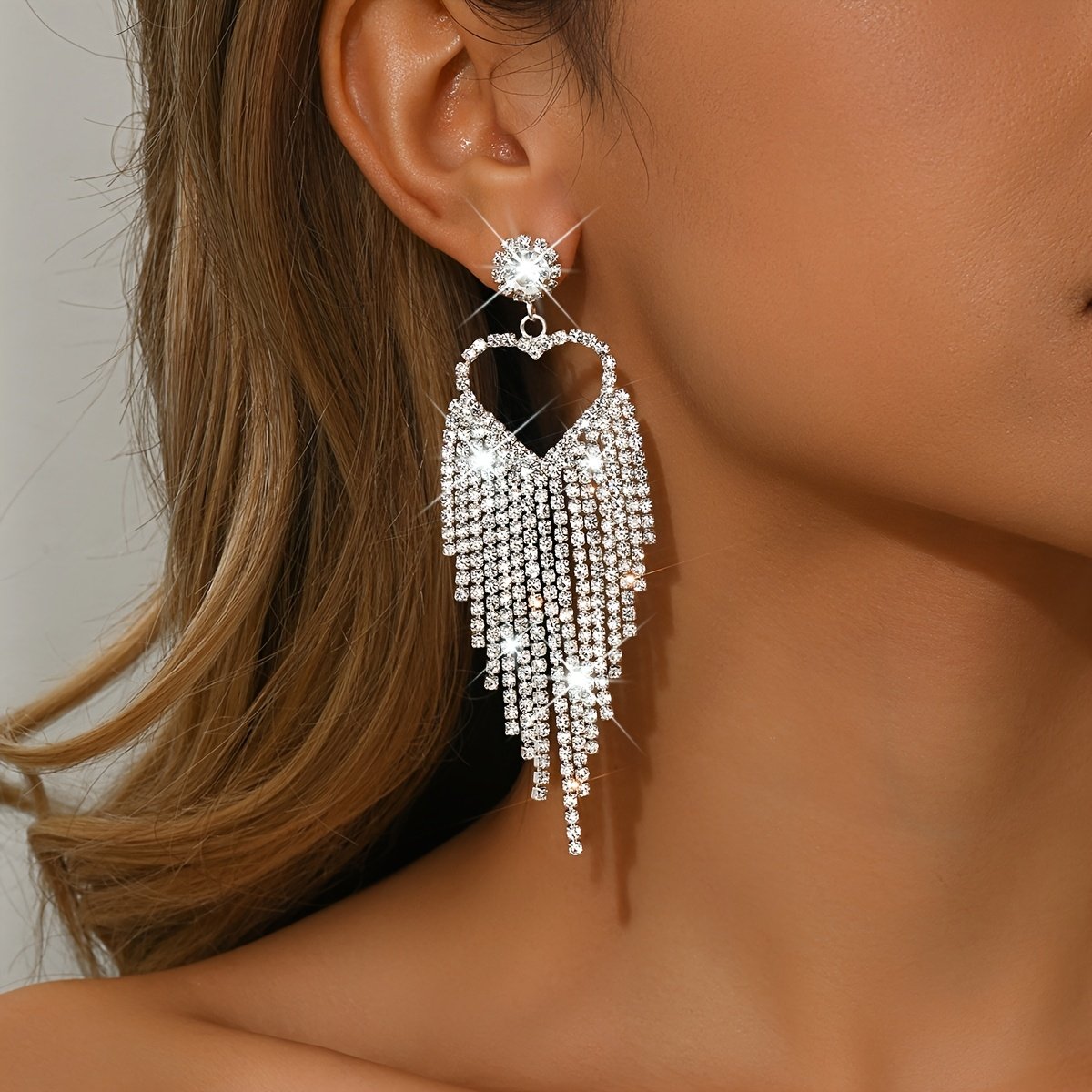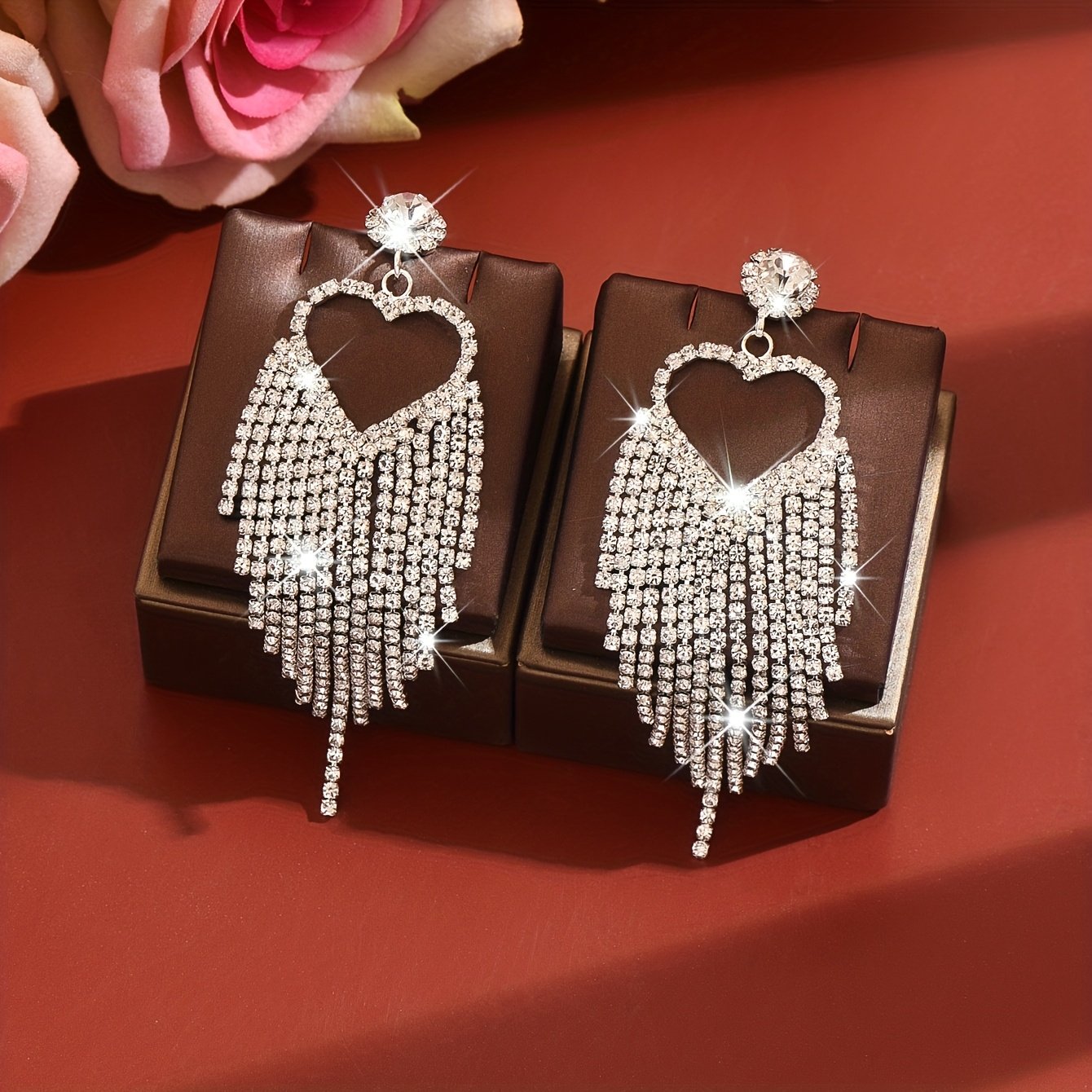 Paire de boucles d’oreilles à pompon et strass en forme de cœur tendance