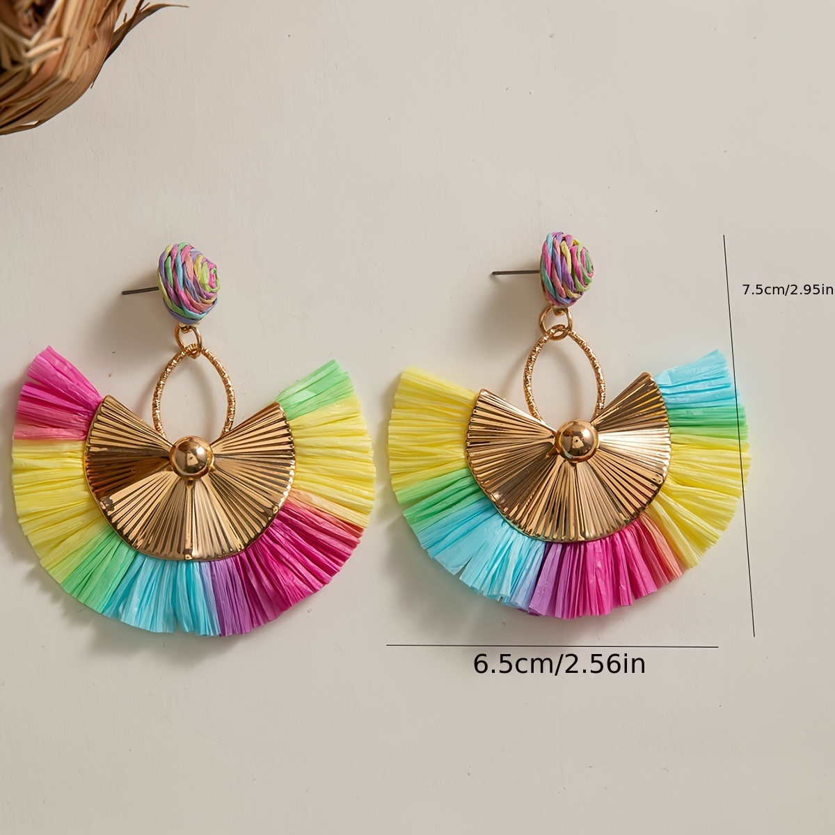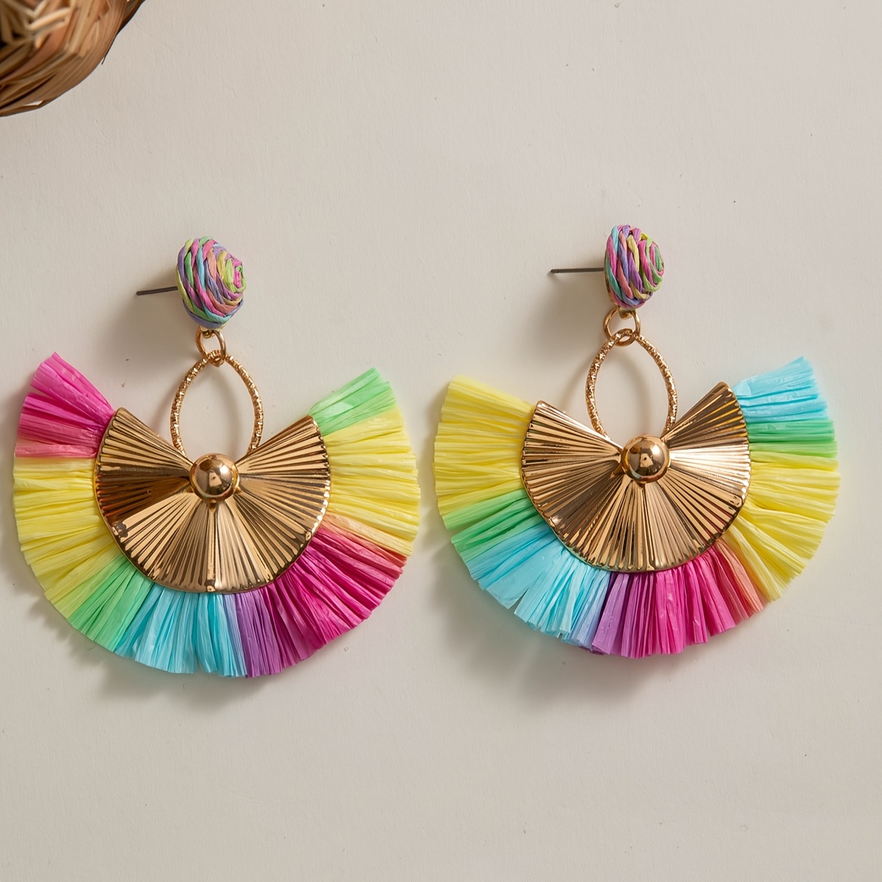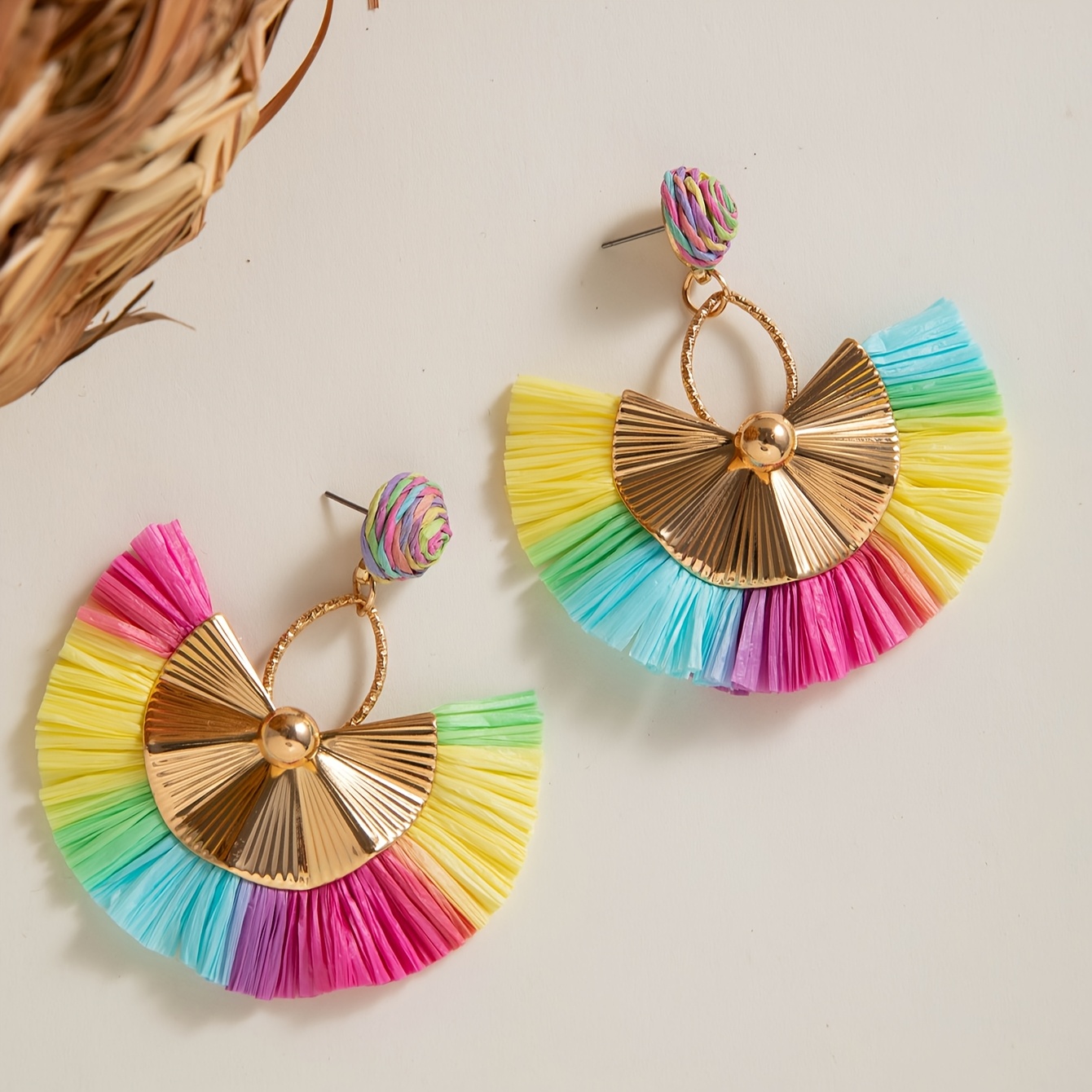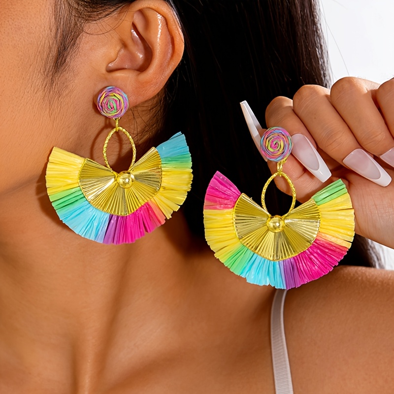 Paire de Boucles d’Oreilles Bohème – Franges Multicolores Arc-en-Ciel