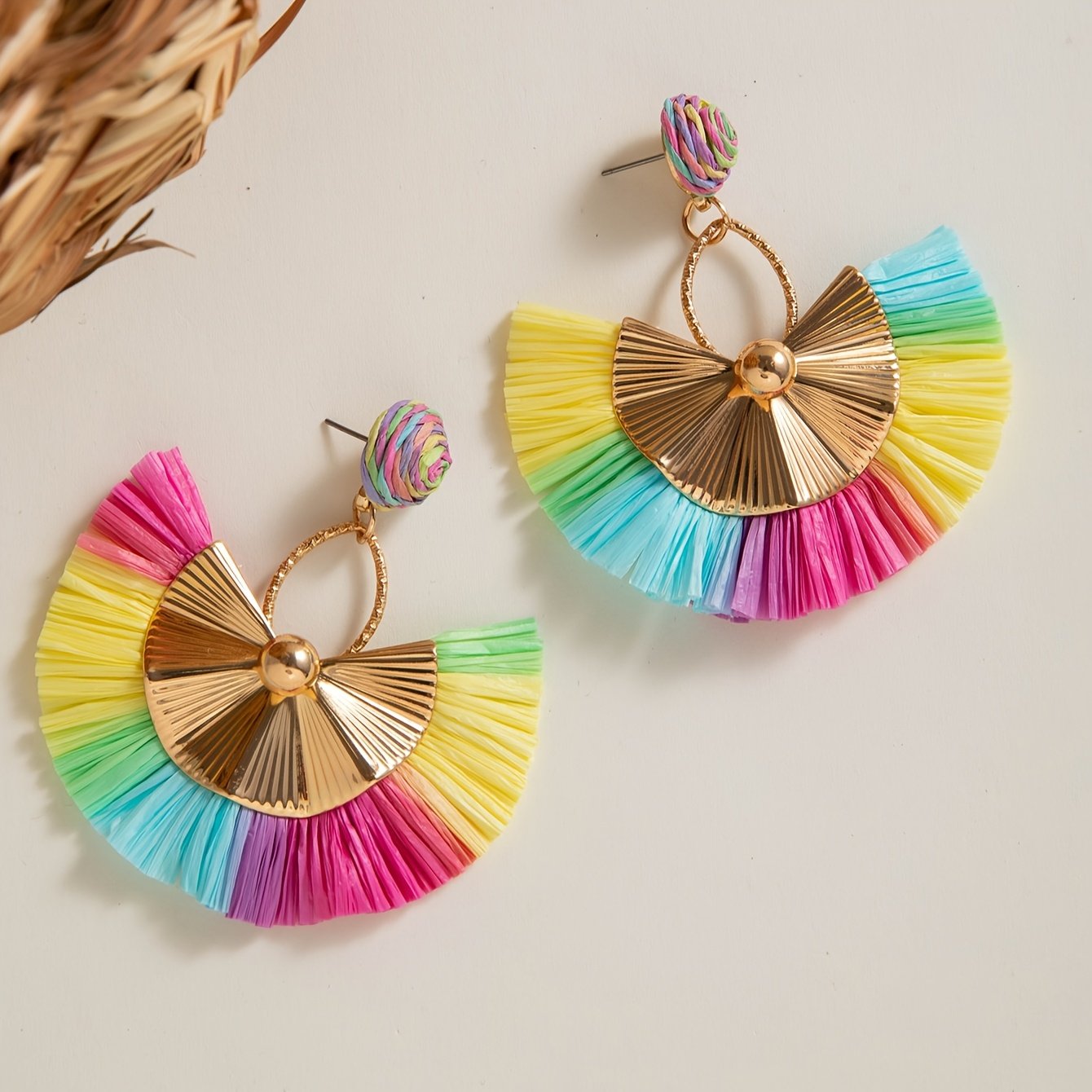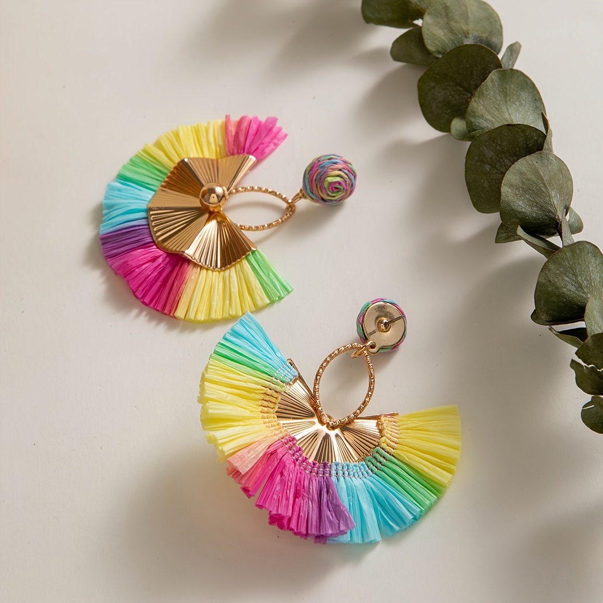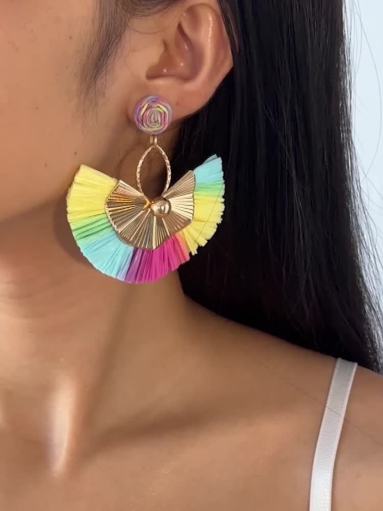 Paire de Boucles d’Oreilles Bohème – Franges Multicolores Arc-en-Ciel