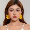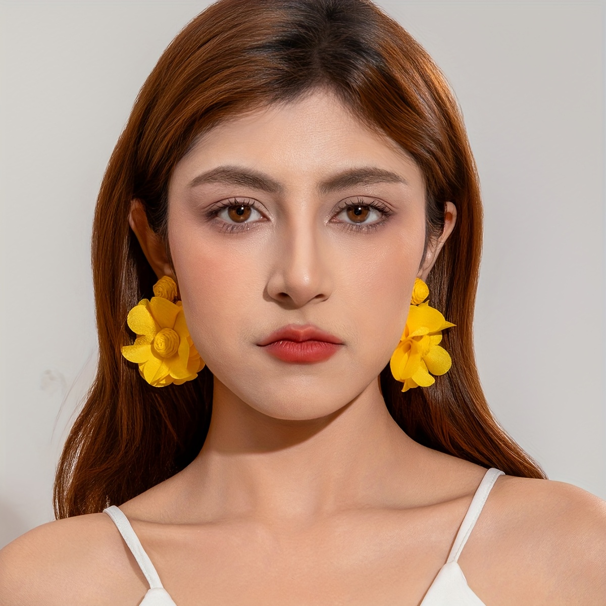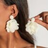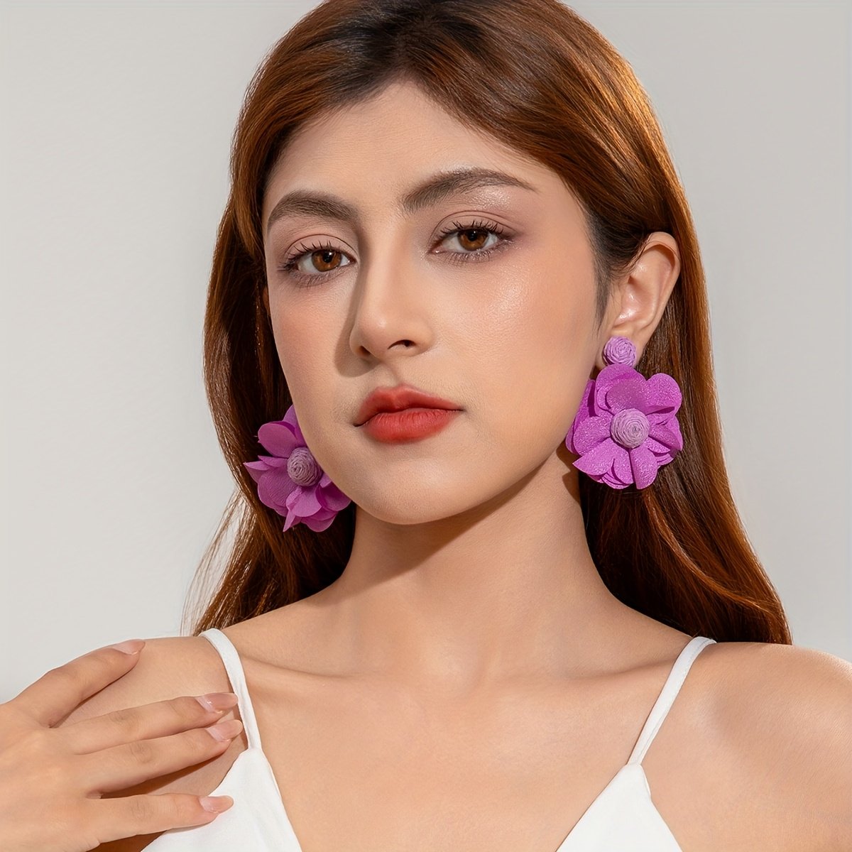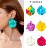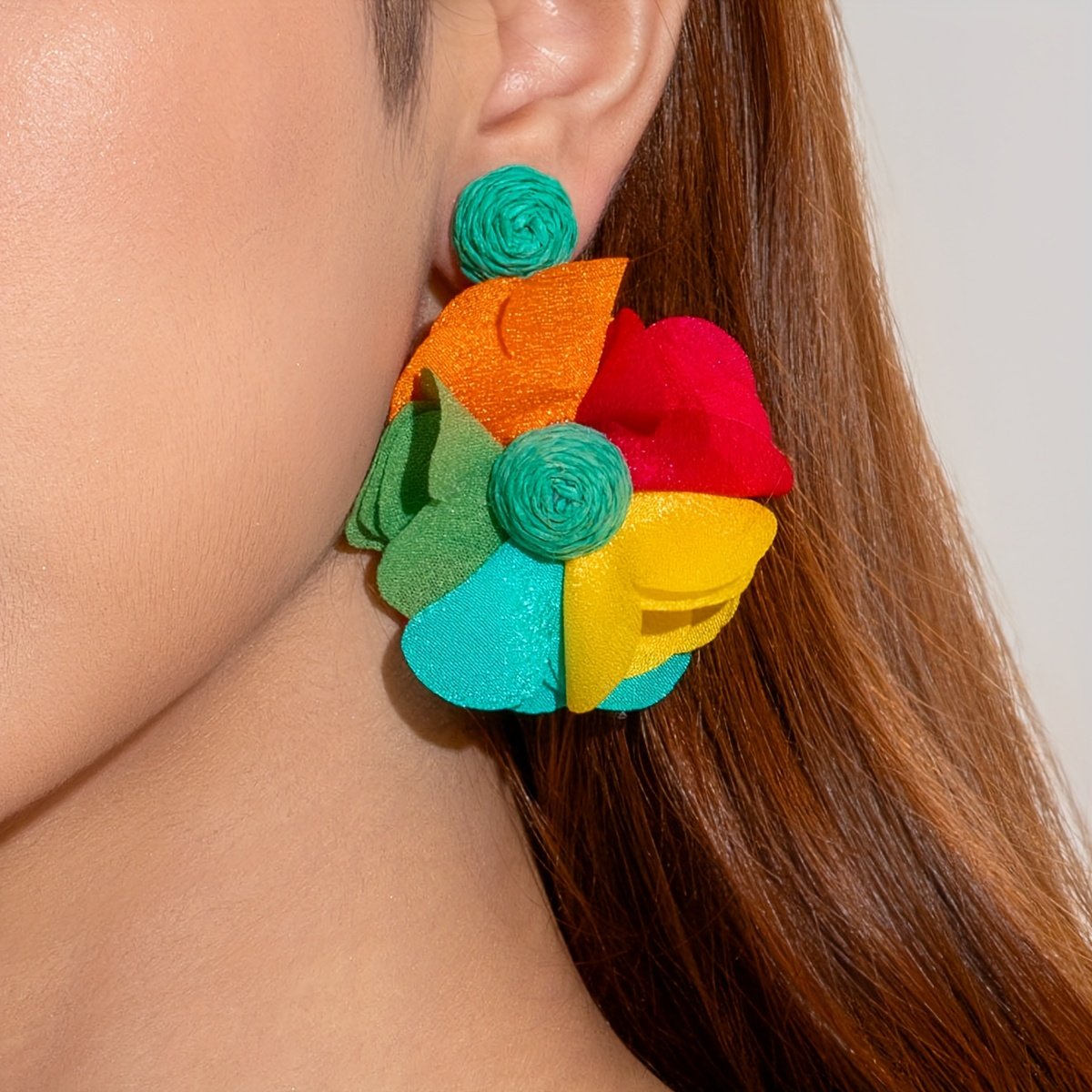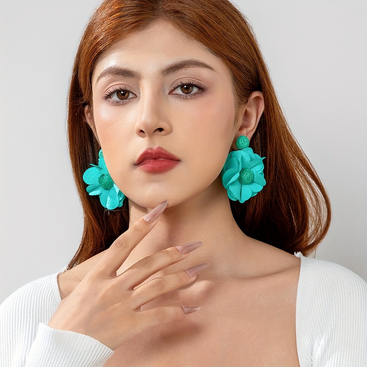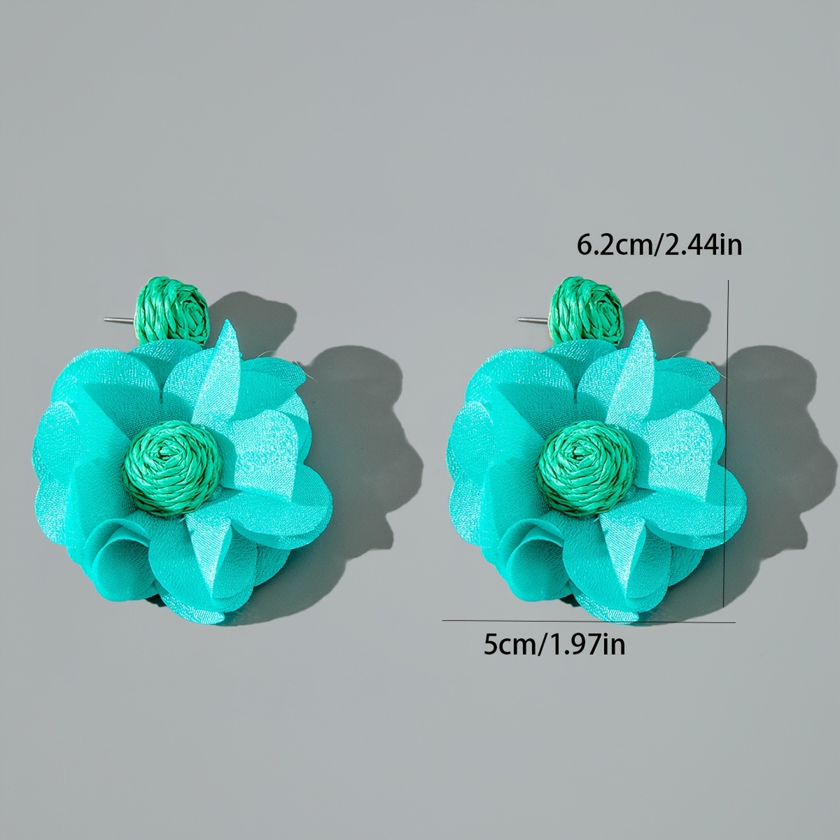Paire de Boucles d’Oreilles Femmes Fleurs Plissées Turquoise