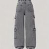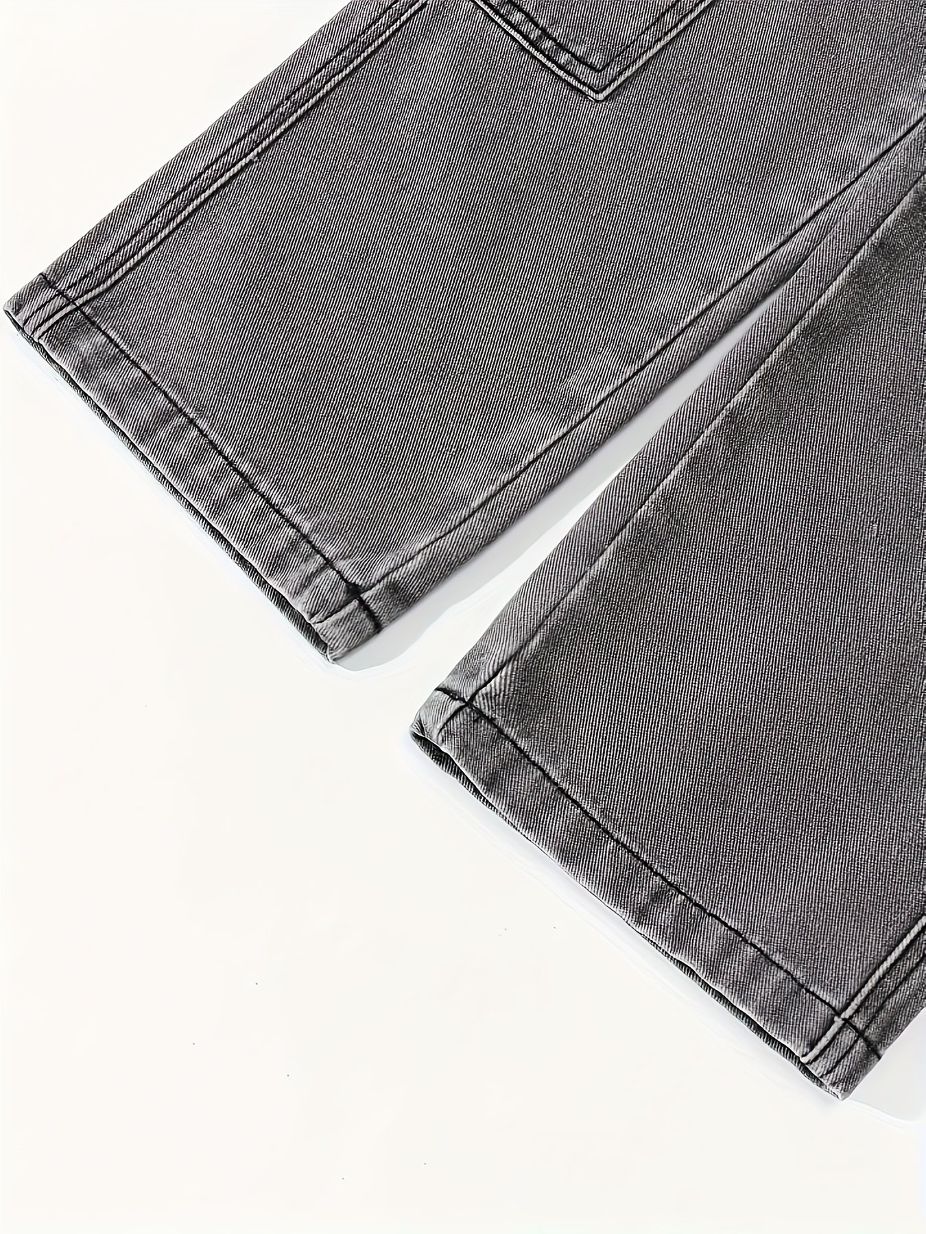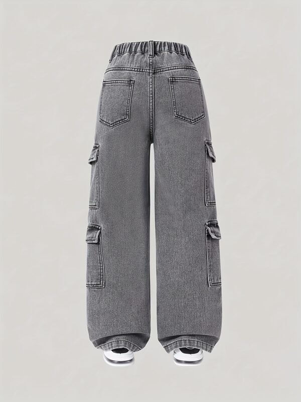 Pantalon à Jambes Larges avec Ceinture, Jeans Doux Lavé