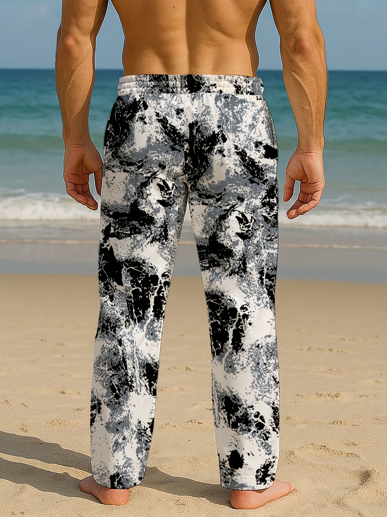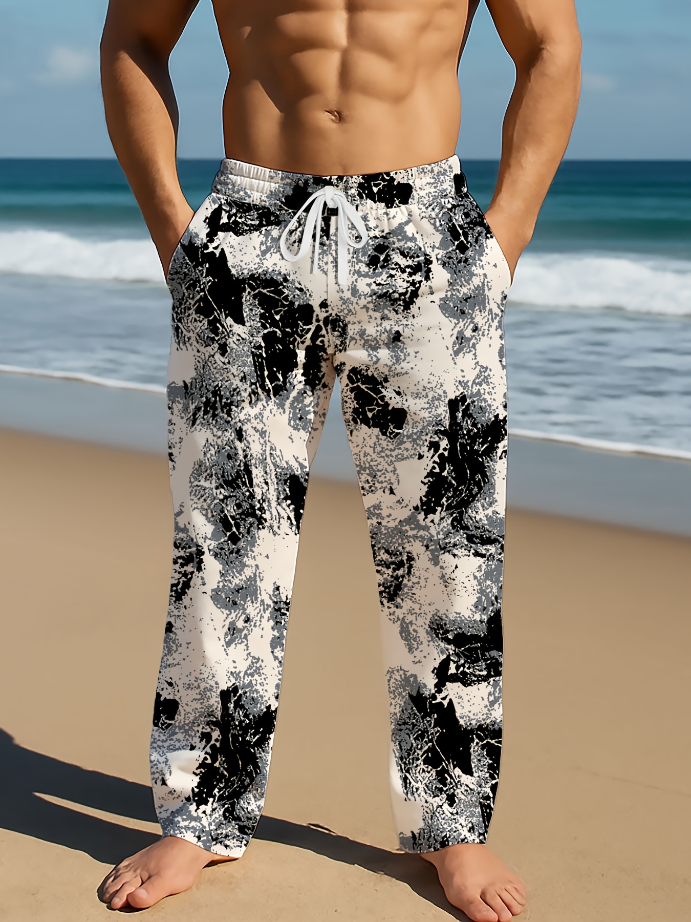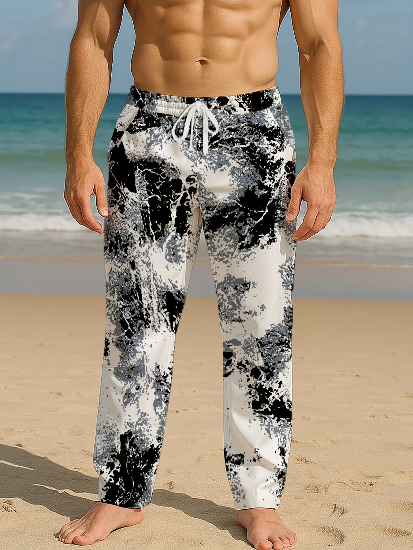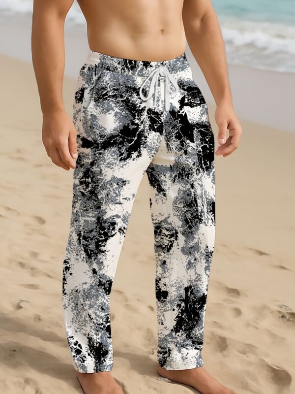 Pantalon décontracté pour homme à motif abstrait noir et blanc