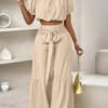 Pantalon large taille haute noir et élégant pour femme avec détail à volants