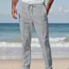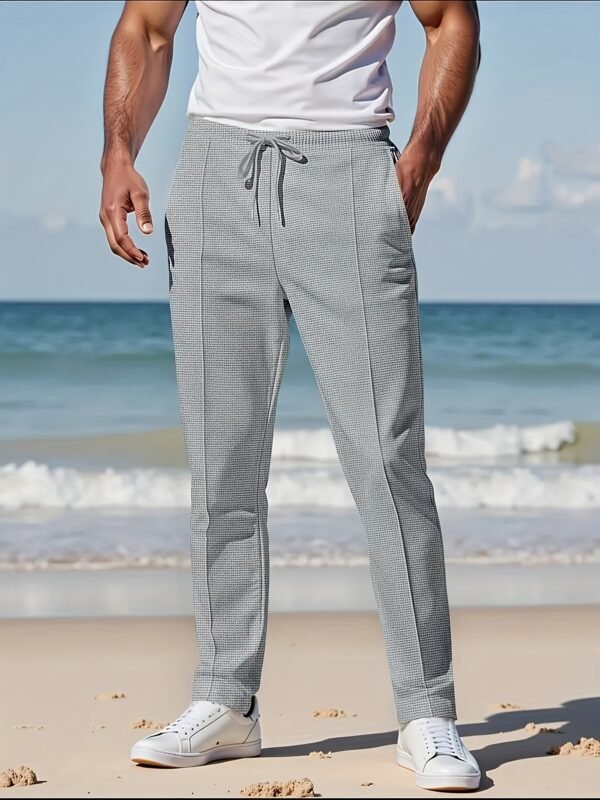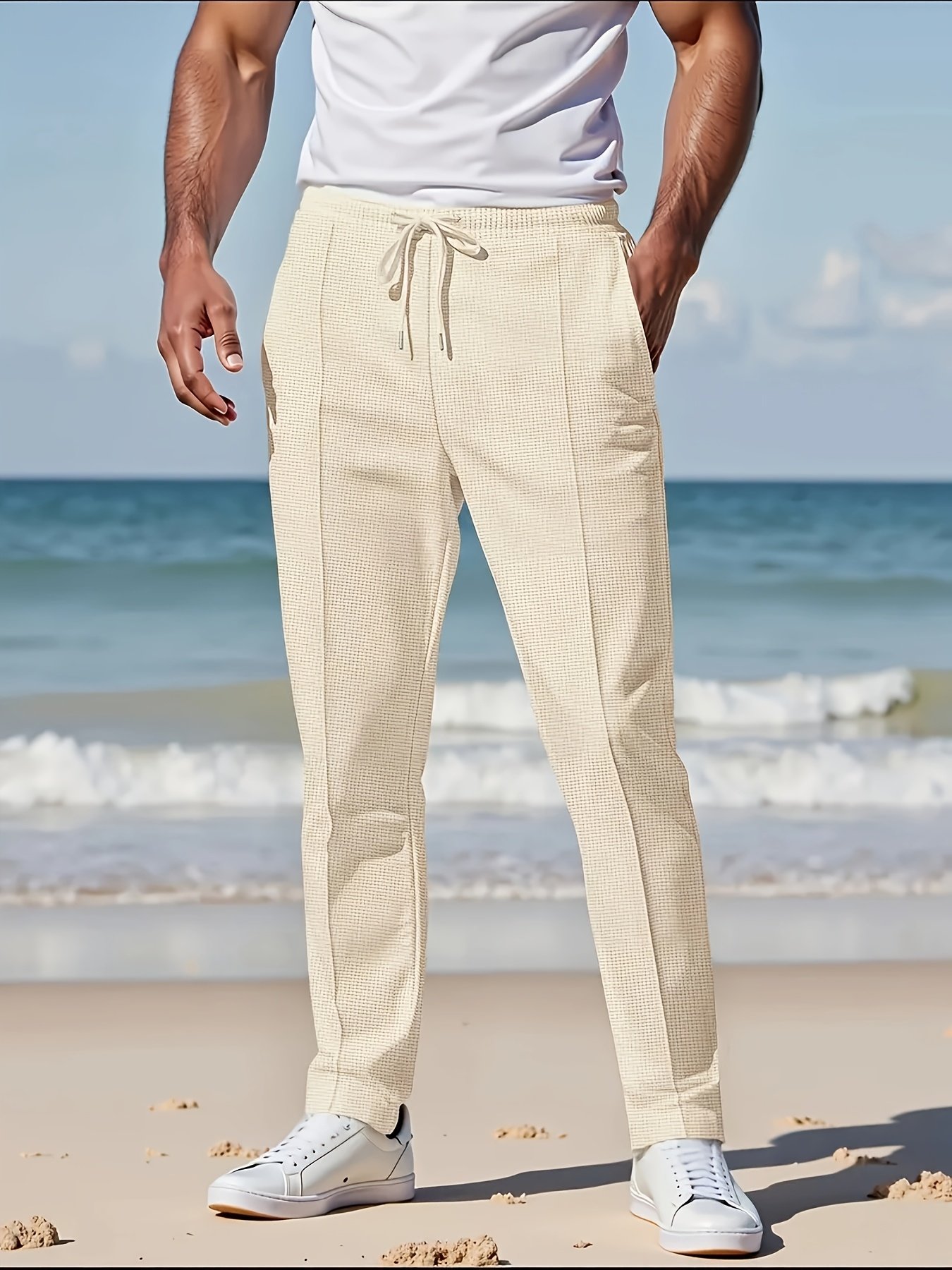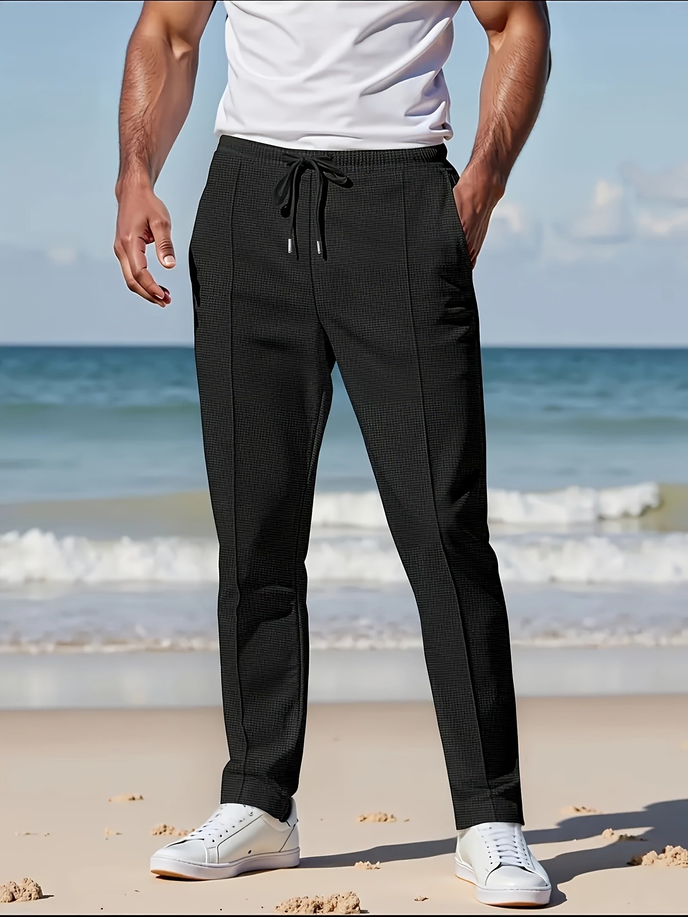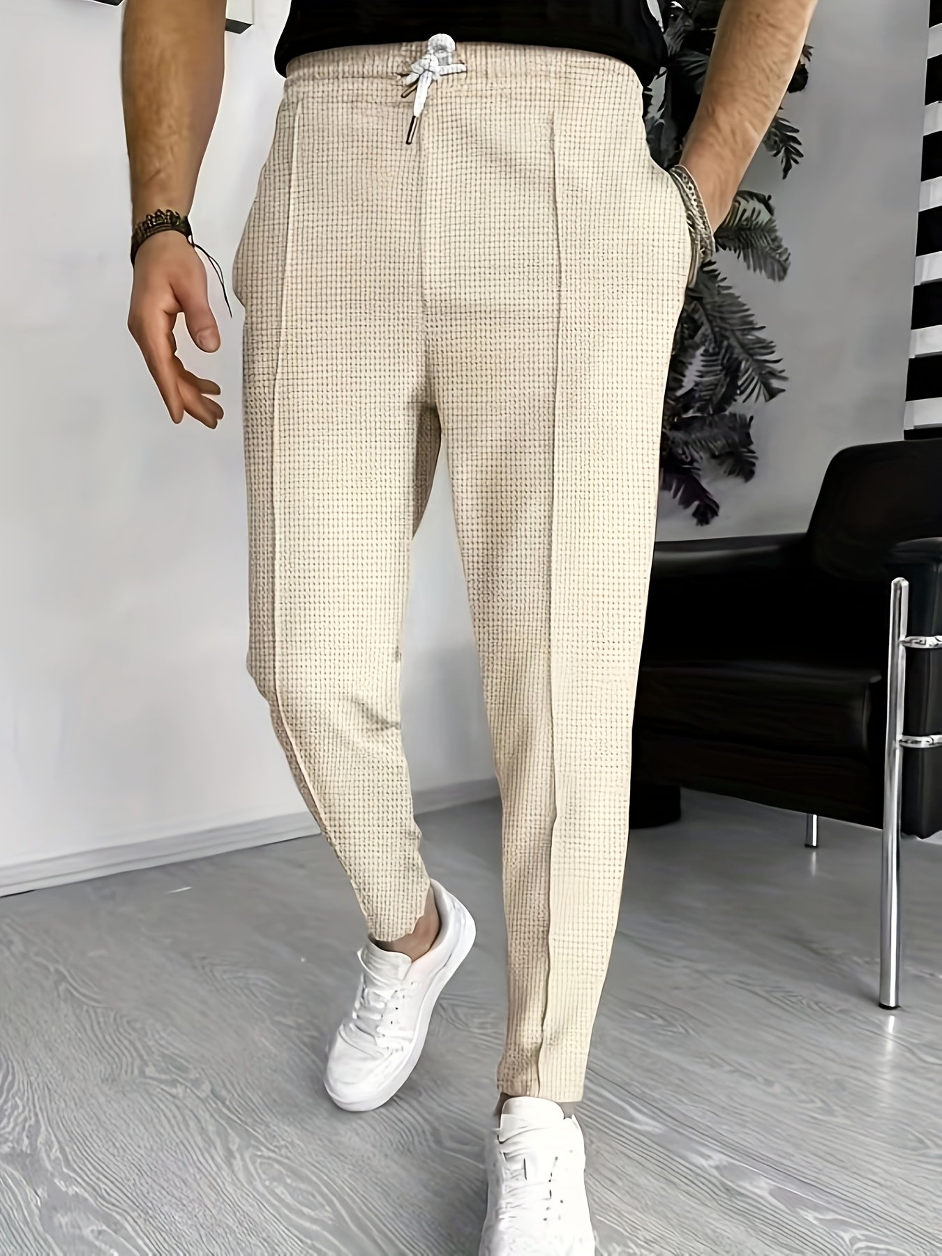 Pantalon long waffle pour homme avec cordon de serrage, athlétique, décontracté