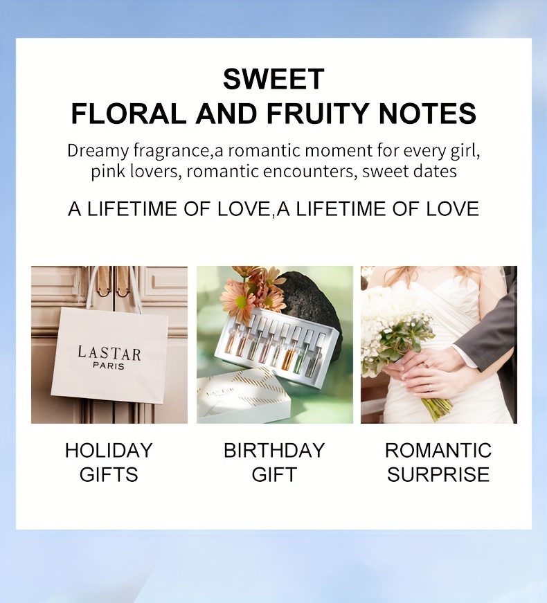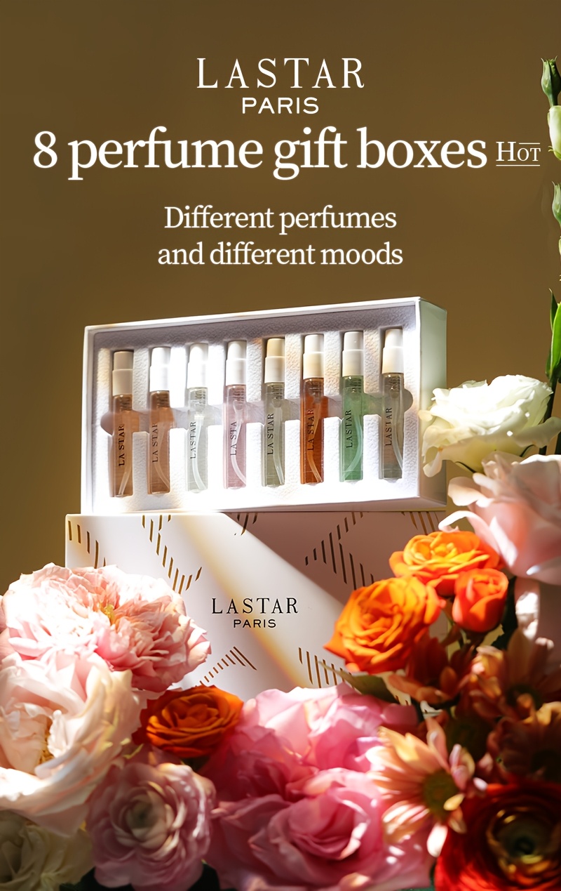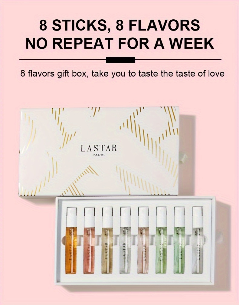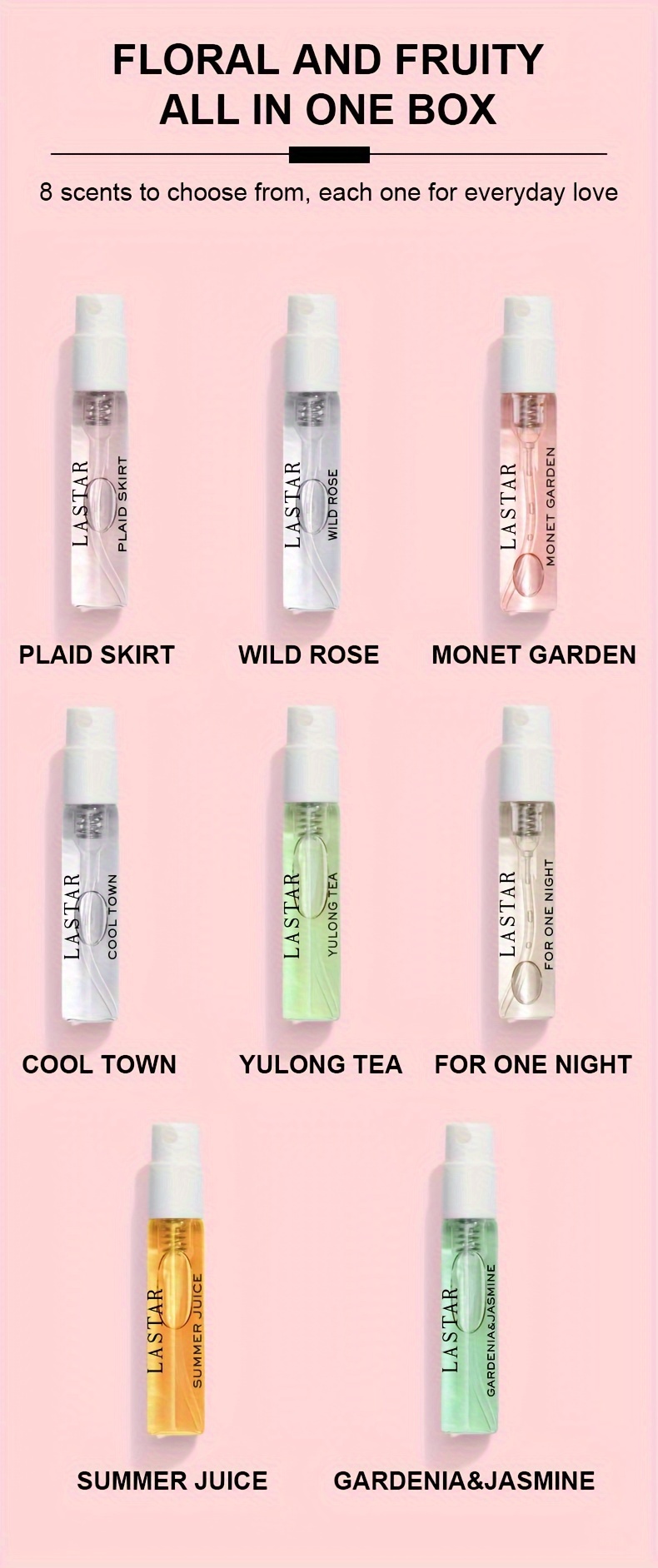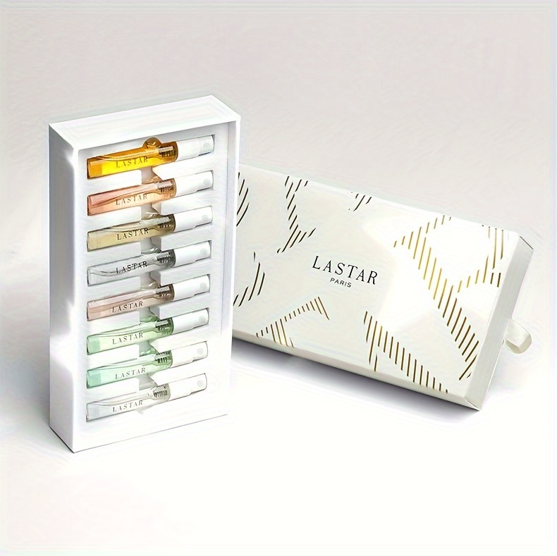 Parfum LASTAR Eau de Set pour Hommes, Fragrance de Gardénia, Jasmin, Rose et Thé Vert, Notes de Fleur d’Agrumes et de Fruits, Floral Frais, Aquatique et Boisé, Ensemble de 8pcs X 3ml