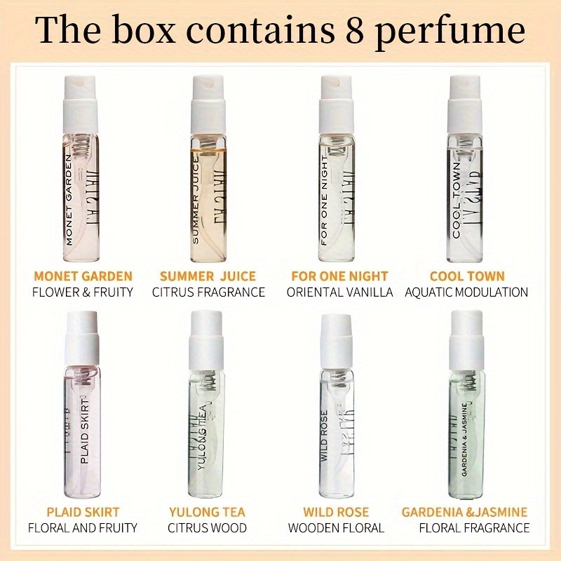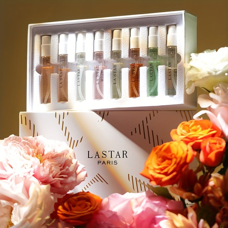 Parfum LASTAR Eau de Set pour Hommes, Fragrance de Gardénia, Jasmin, Rose et Thé Vert, Notes de Fleur d’Agrumes et de Fruits, Floral Frais, Aquatique et Boisé, Ensemble de 8pcs X 3ml