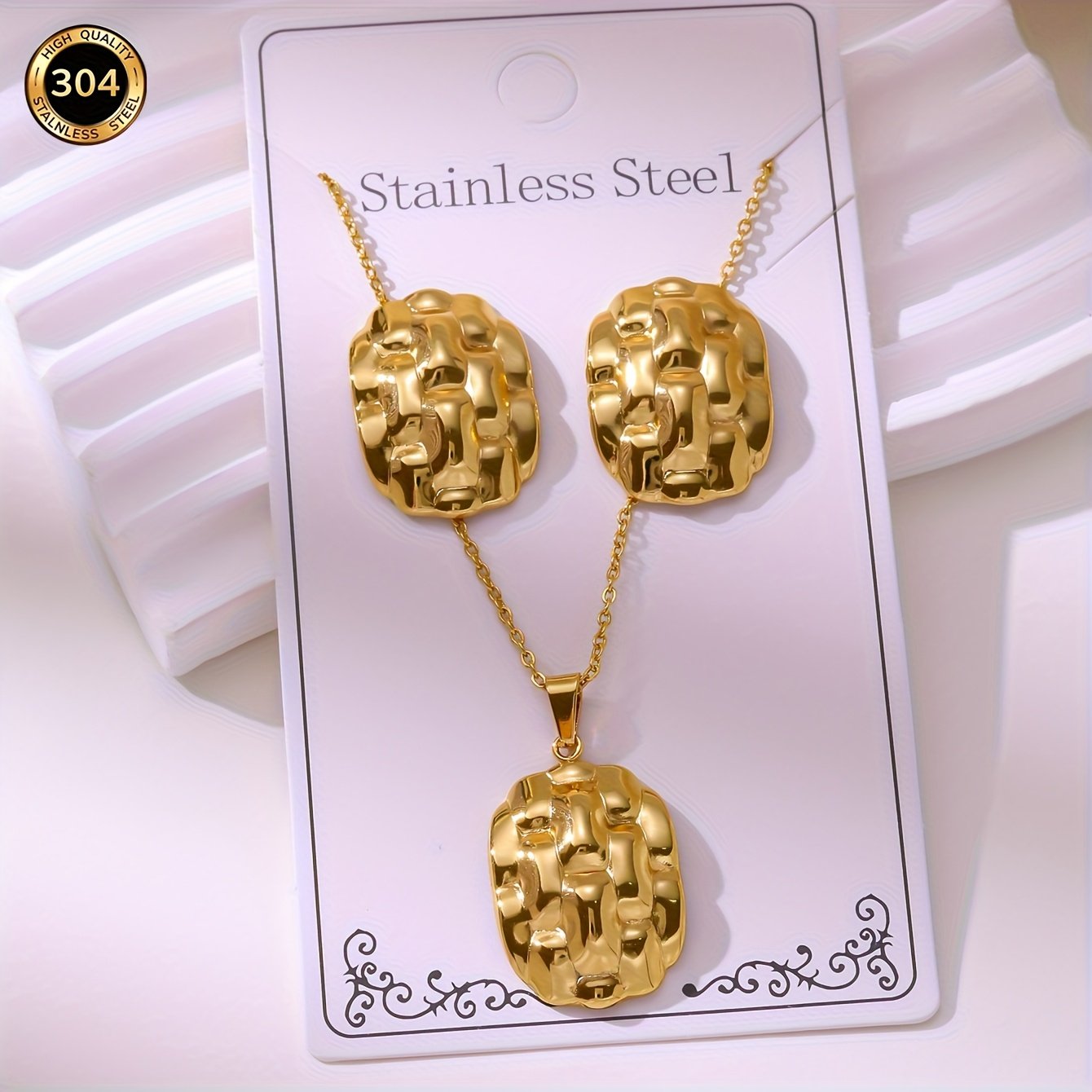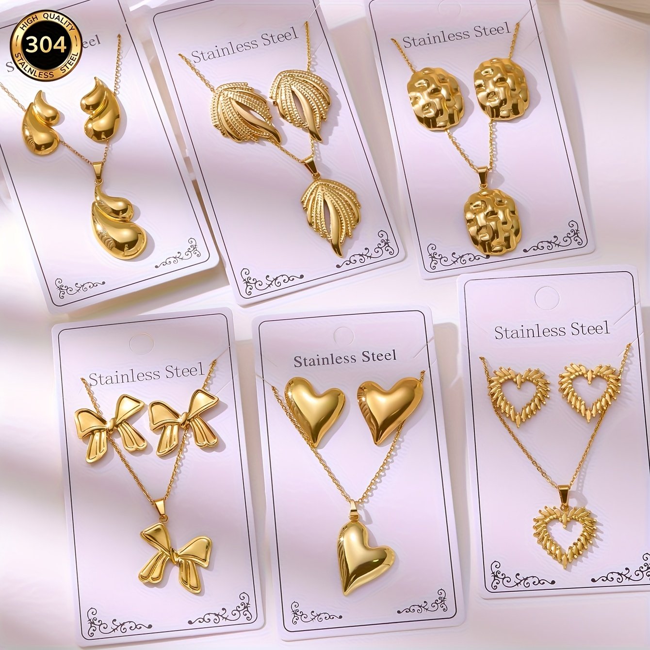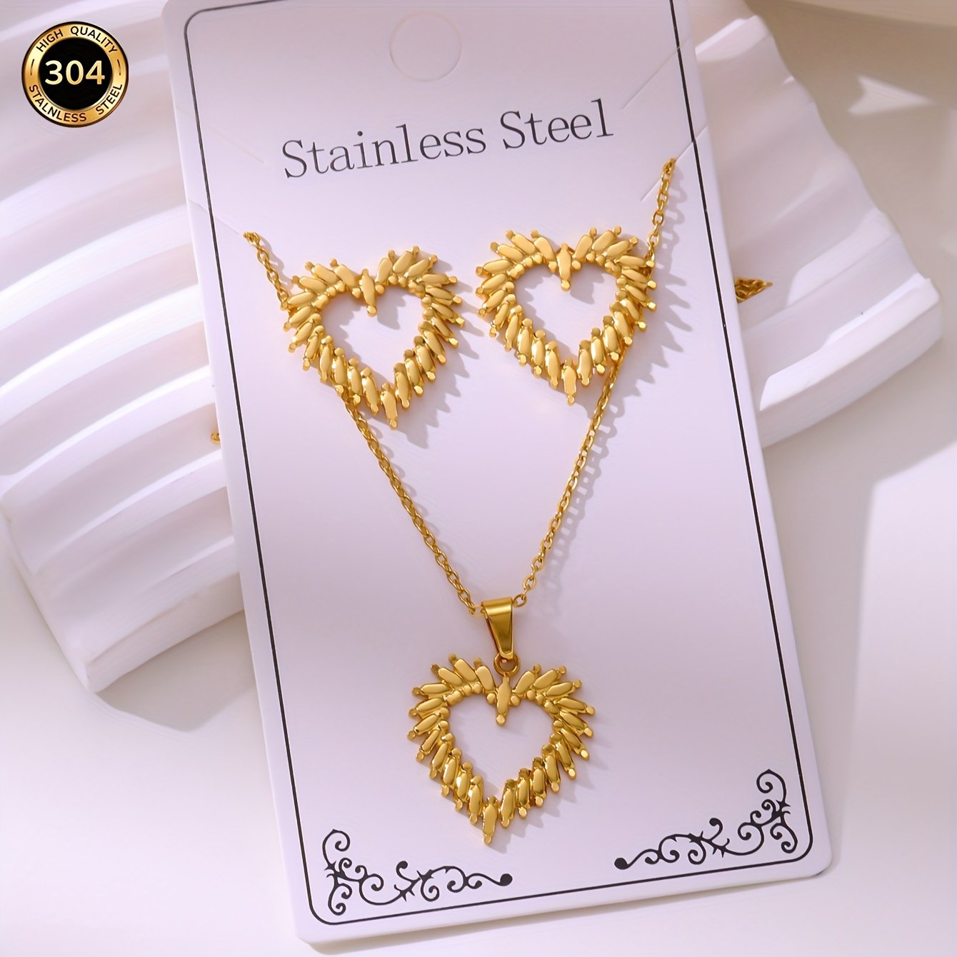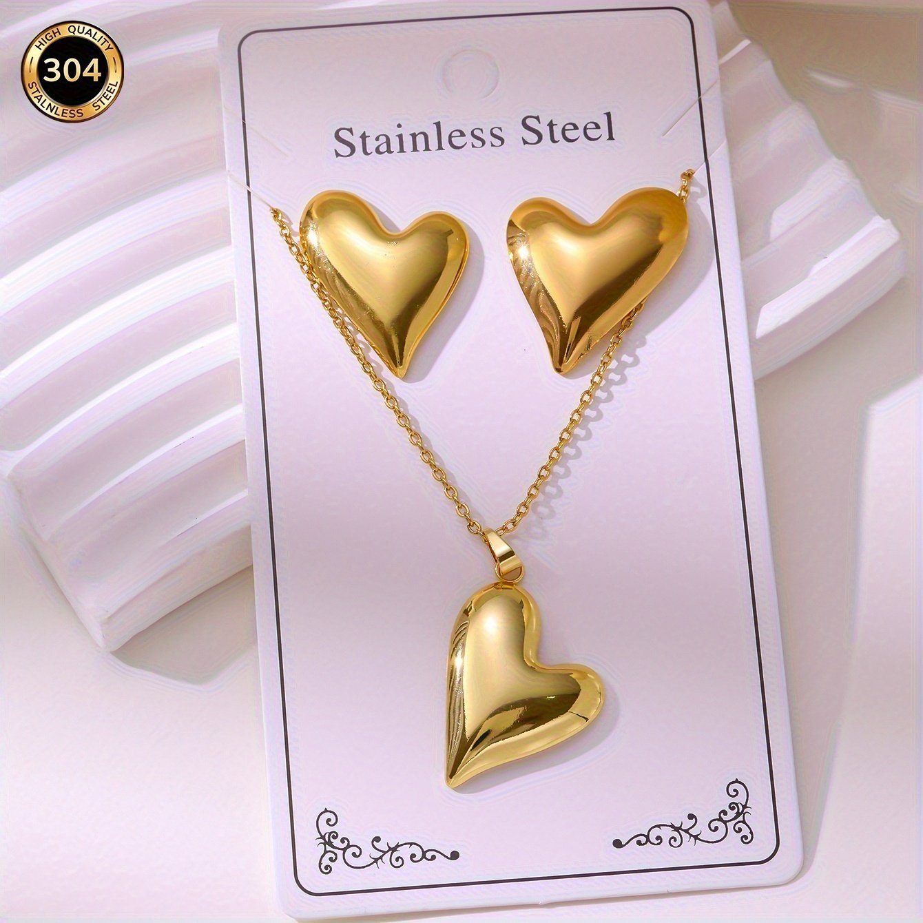 Parure 3 pièces/1 ensemble de clous d'oreilles et collier à cœur géométrique d'inspiration vintage, bijoux de niche de luxe léger polyvalents et haut de gamme, adaptés à un port quotidien et comme cadeau de fêtes, orientation aléatoire, placement du pende