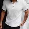 Polo Homme Nouveau à Motifs Jacquard et Tissu Doux, Design Bicolore
