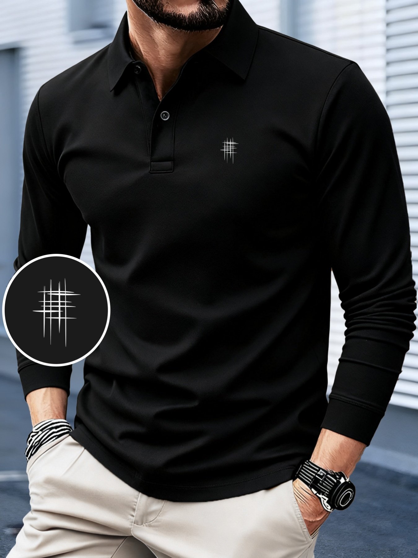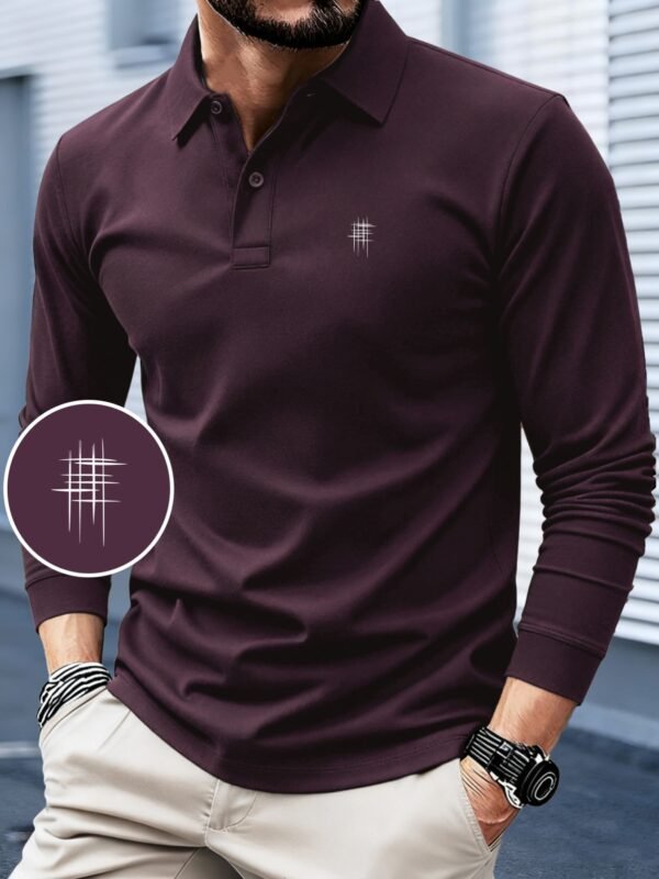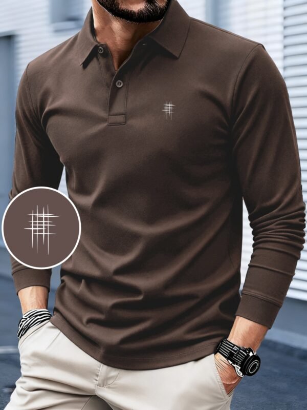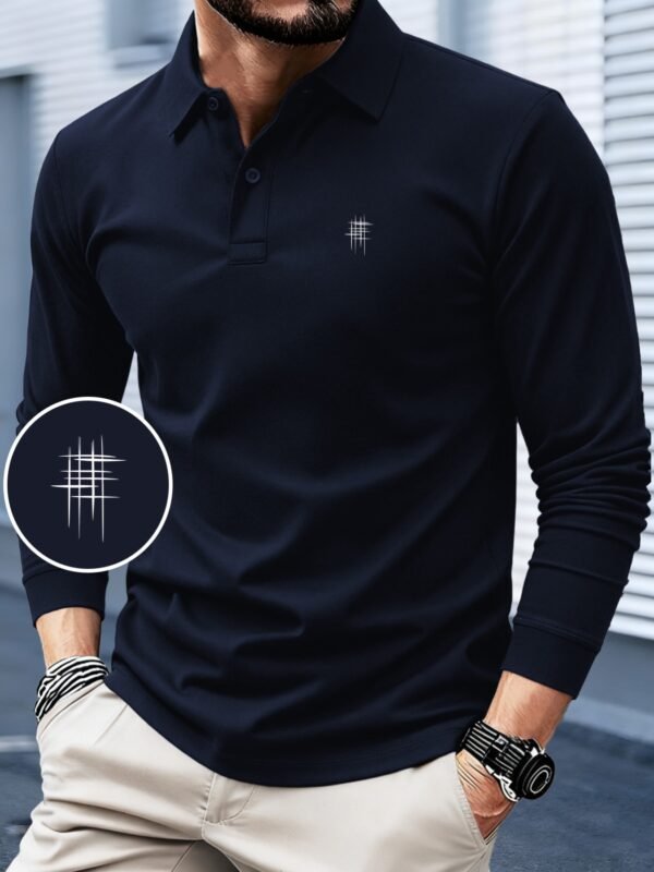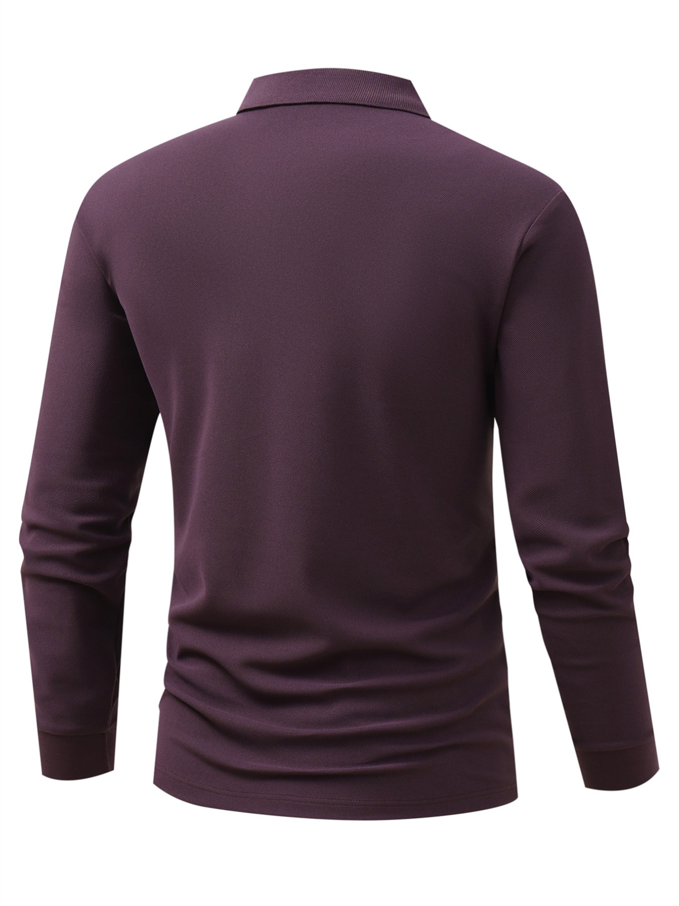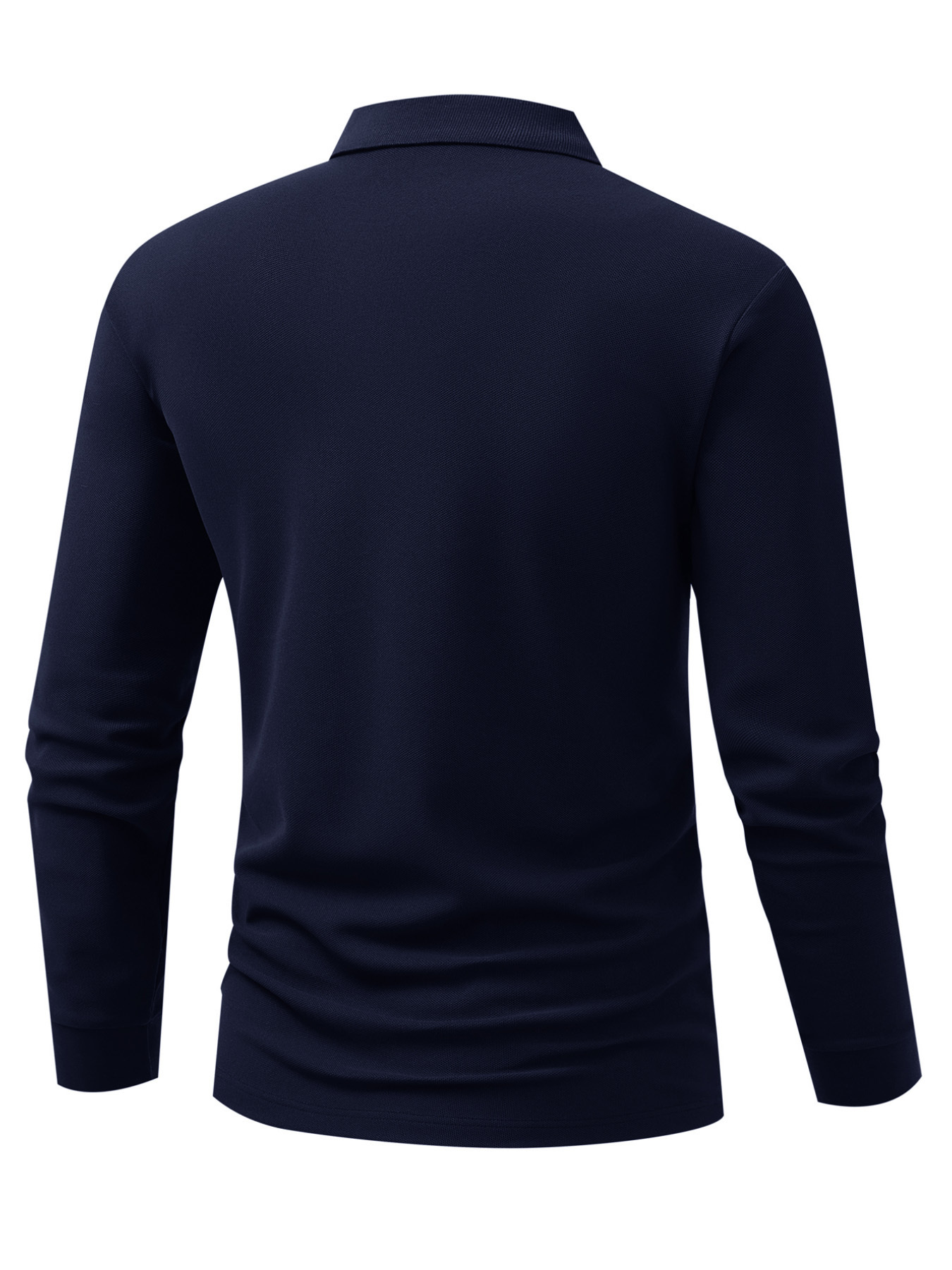 Polo manche longue Design à Contraste de Couleurs, Texture haut de gamme