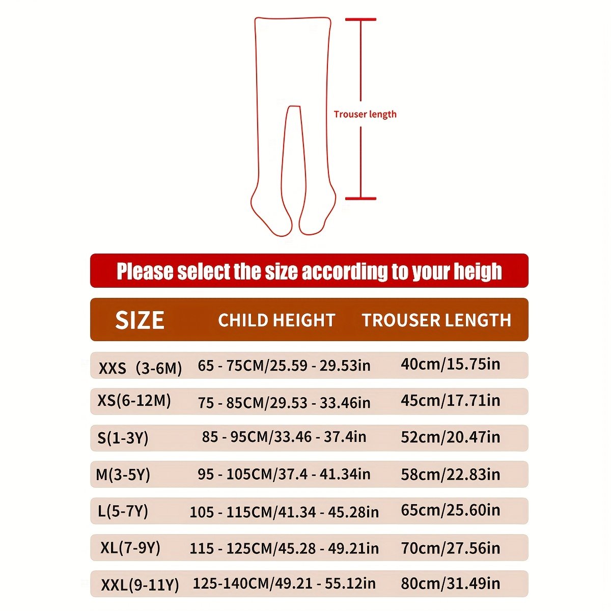| Dimension | XXS (3-6 mois), XS(6-12M), S(1-3A), M(3-5A), L(5-7A), XL(7-9Y), XXL(9-11A) |