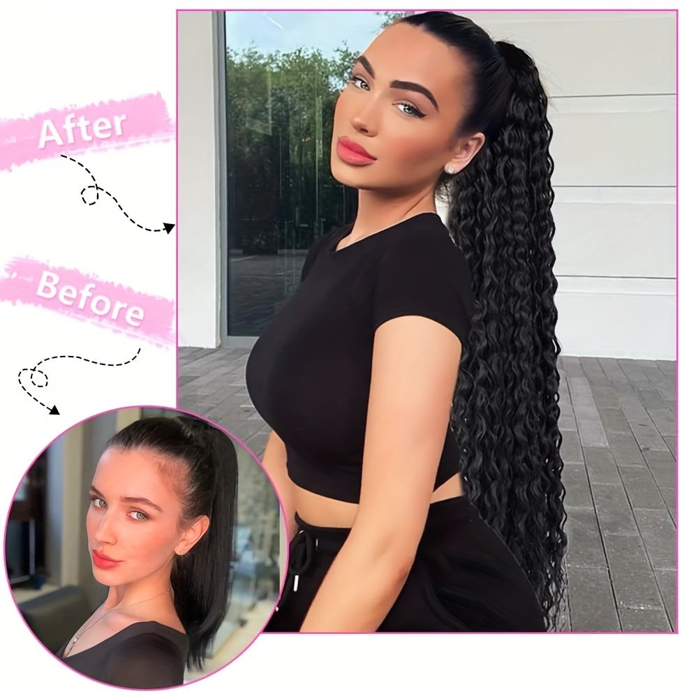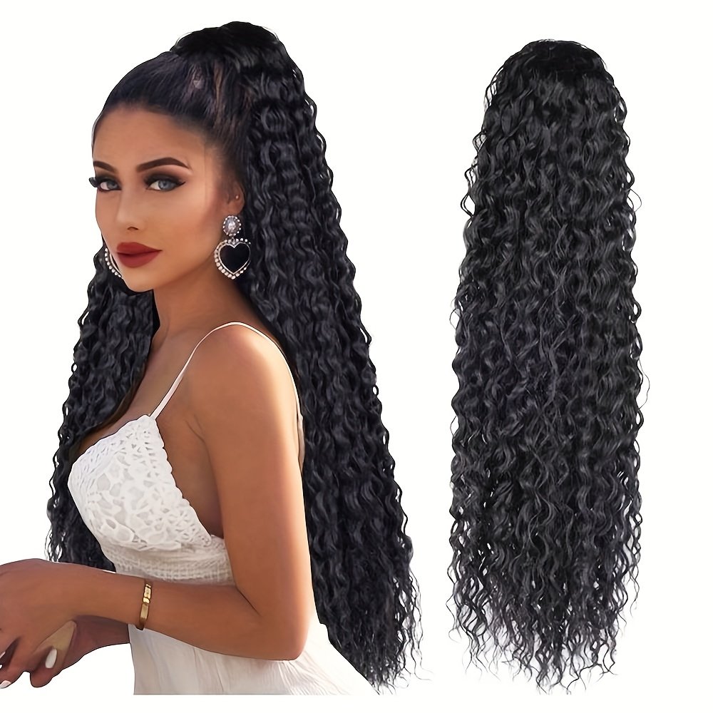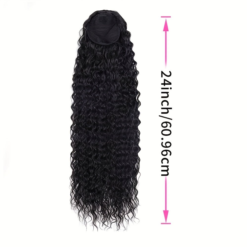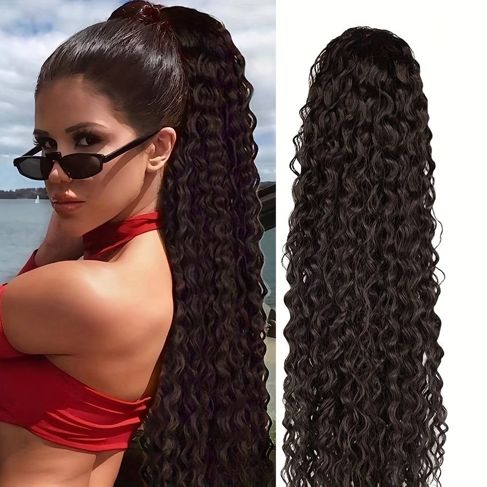 Queue de cheval élégante à cordon de 60 cm avec ondulations d’eau | Extensions de cheveux bouclés noirs pour femmes, fibre haute température, idéale pour les rendez-vous, les fêtes, le Black Friday, Noël et les cadeaux du Nouvel An.