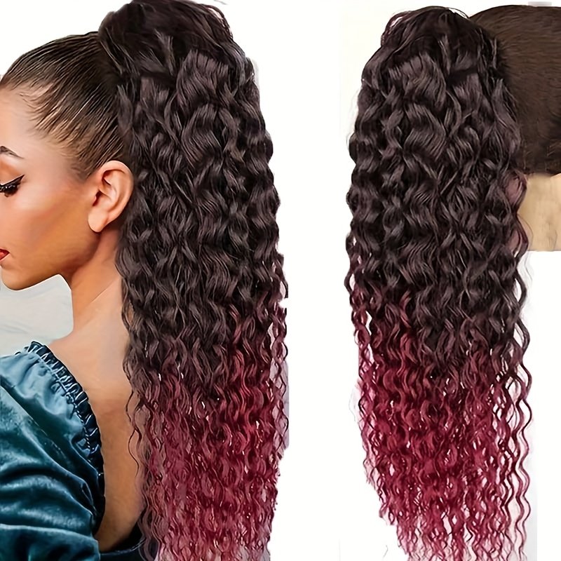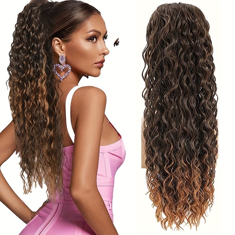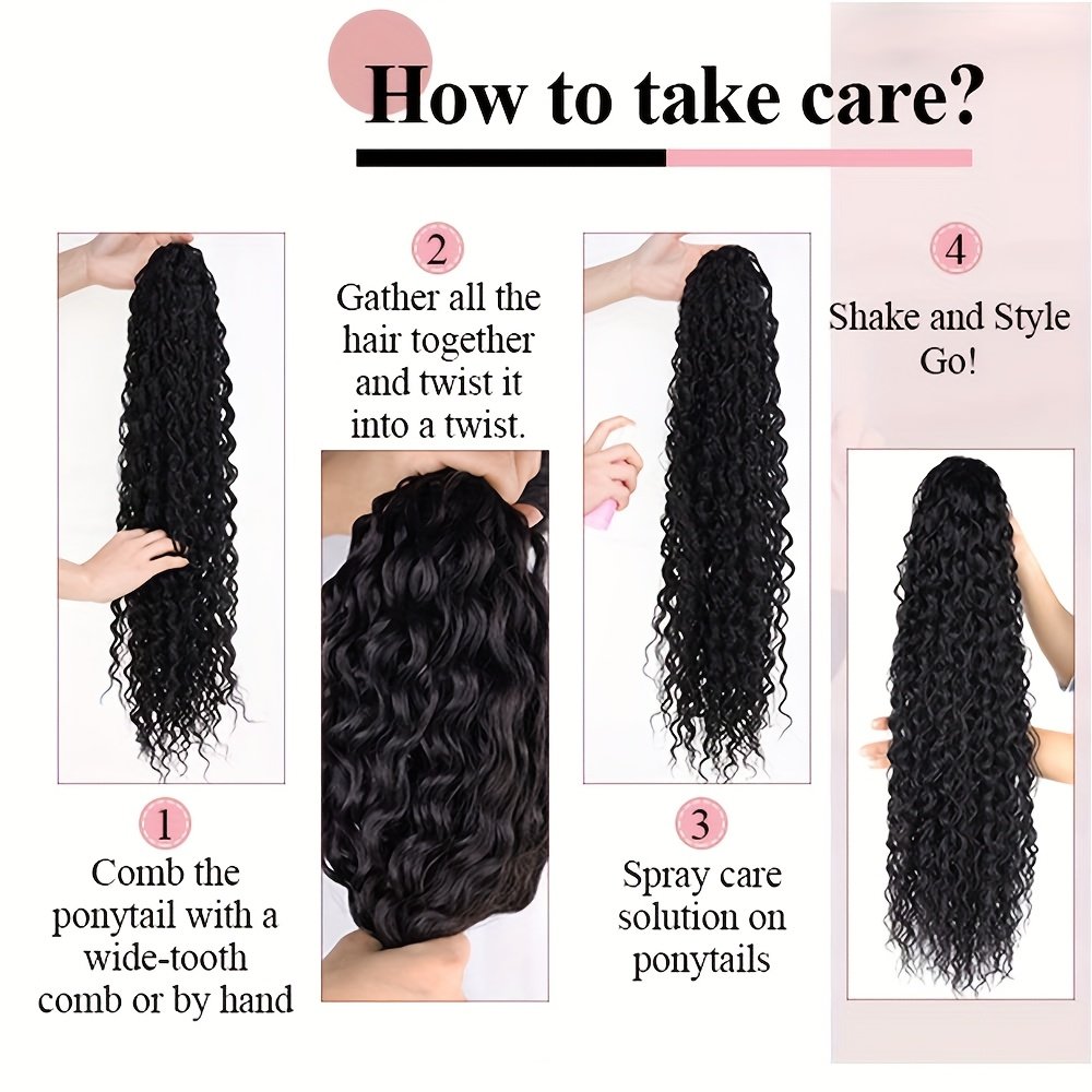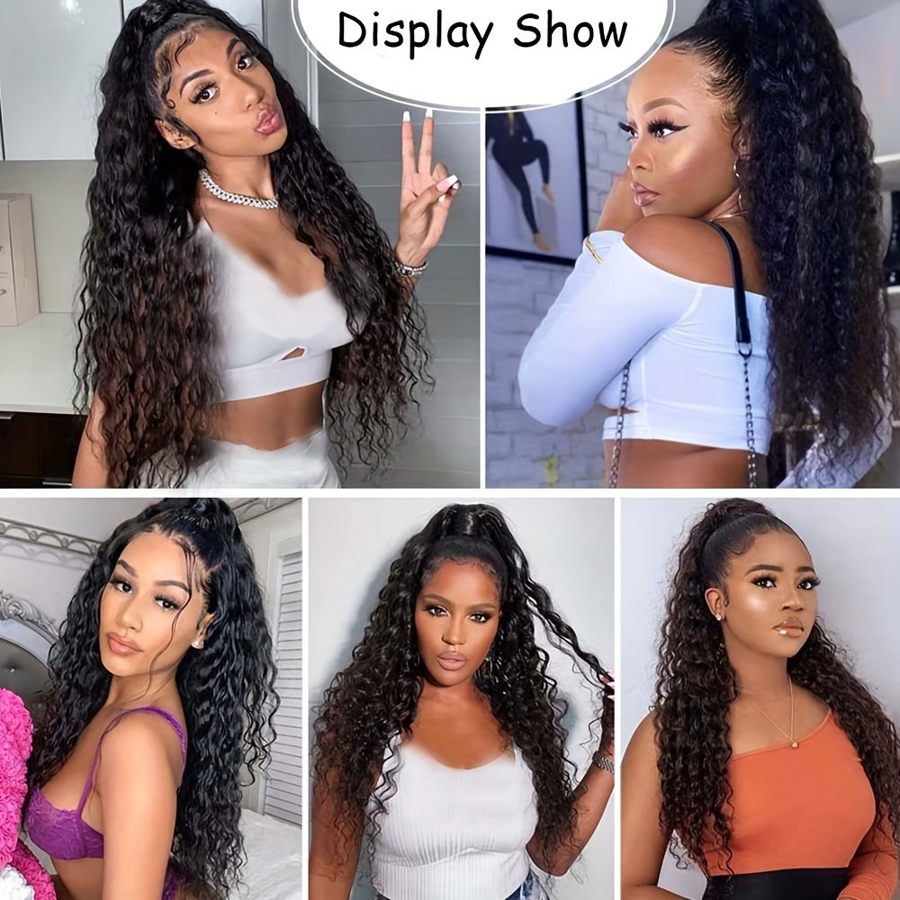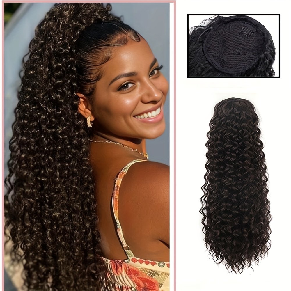 Queue de cheval élégante à cordon de 60 cm avec ondulations d’eau | Extensions de cheveux bouclés noirs pour femmes, fibre haute température, idéale pour les rendez-vous, les fêtes, le Black Friday, Noël et les cadeaux du Nouvel An.